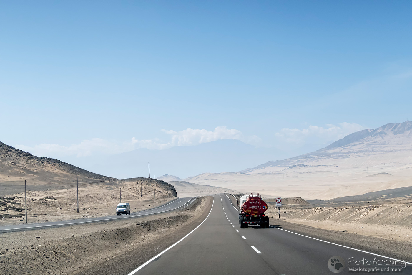 Kaum hatten wir die Städte hinter uns, wurde auch der Verkehr erträglich und wir fuhren auf der „Panamericana“, der Haupttransitstrecke von Ecuador nach Chile, in Richtung Norden. Wir passierten die erste Mautstelle „Peaje“ in Richtung Norden. Die Regelung ist einfach, der Verkehr in Richtung Lima muss nichts bezahlen und alle anderen wurden zur Kasse gebeten. So sollte man immer etwas Kleingeld dabei haben. Die erste Maut kostete 7,10 Sol also knapp 2 Euro. Wichtig ist es, das Ticket aufzuheben, denn darauf stehen Notfallnummern, über die man kostenlose Hilfe bekommt, sollte man einen Unfall oder einen Panne haben.