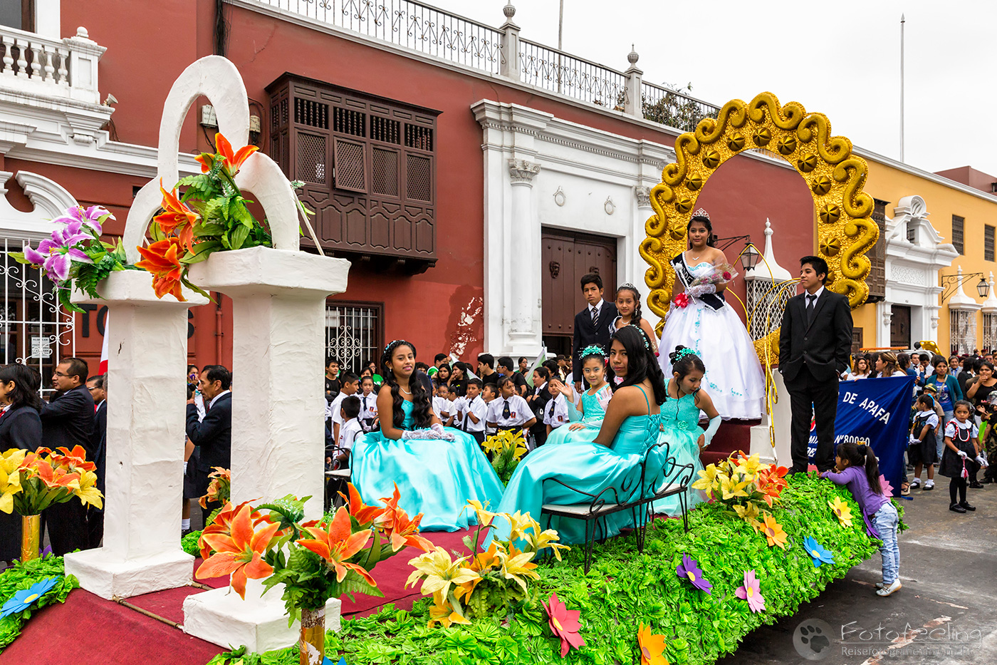 Als wir einen Blick vor die Tür warfen, rissen wir erstaunt die Augen auf, denn draußen versammelten sich viele Menschen. Gruppen davon hatten gleiche oder ähnliche Kleidung an. Die Menschen formierten sich. Später sahen wir, dass die Personen nach Berufsgruppen, Schulen und Vereinen aufgeteilt waren. Blaskapellen spielten. Auf einem fast schon Karnevalsanhänger, der von einem VW Käfer gezogen wurde, standen die Schönsten der Schönen, wie nach einer Misswahl, in wunderschönen bunten Kleidern mit Schärpen. Es war eine Show, aber auch ein riesen Trubel. Trotzdem schauten wir uns fast den ganzen Umzug an, der mich ein wenig an die Maiumzüge in der ehemaligen DDR erinnerte.