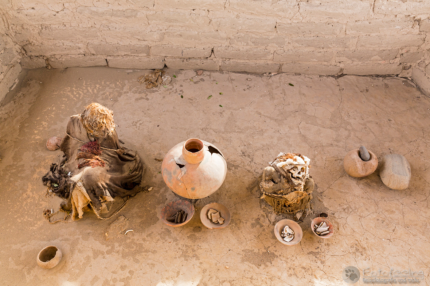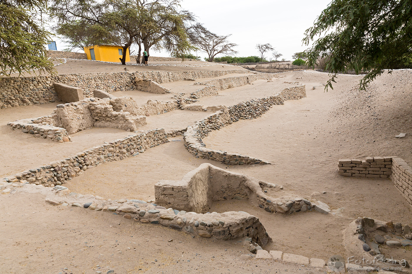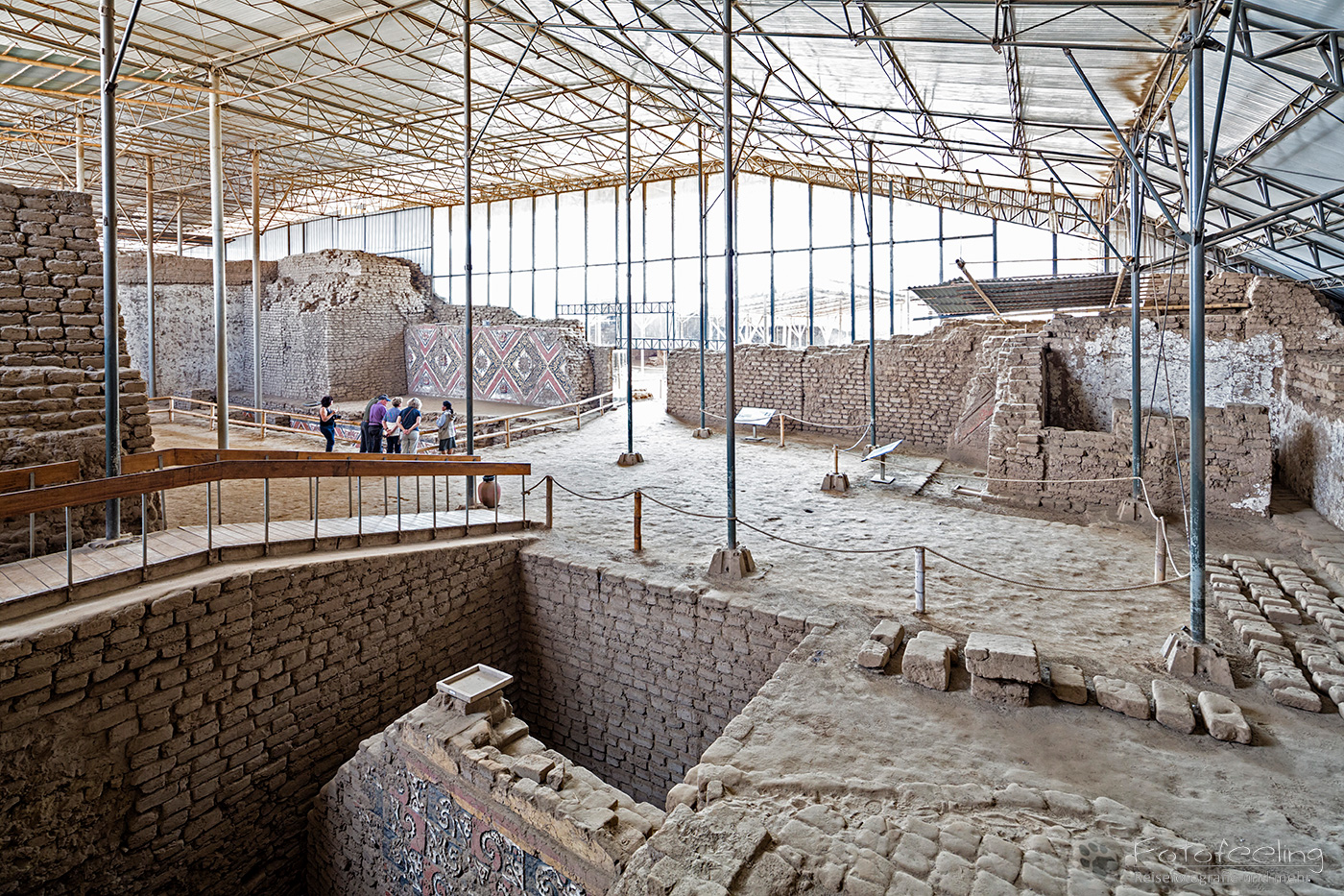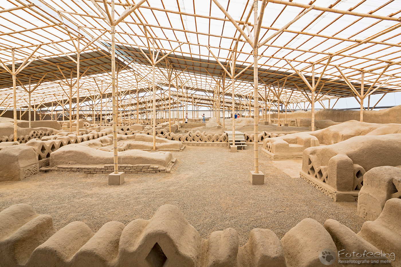 Heute sind nur noch riesige Flächen von Lehmbauten in mehr oder weniger schlechtem Zustand und einige Festsäle vorhanden, denn leider hat El Niño, der in den letzten Jahren immer stärker auftrat, sehr viel zerstört. Es wurde immer wärmer und viel mehr Regen fiel, hinzu kamen heftige Stürme, die die Lehmziegel nahezu schmelzen ließen und die Küstengebiete immer weiter in Wüsten verwandelten.