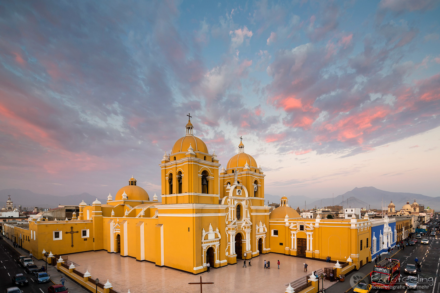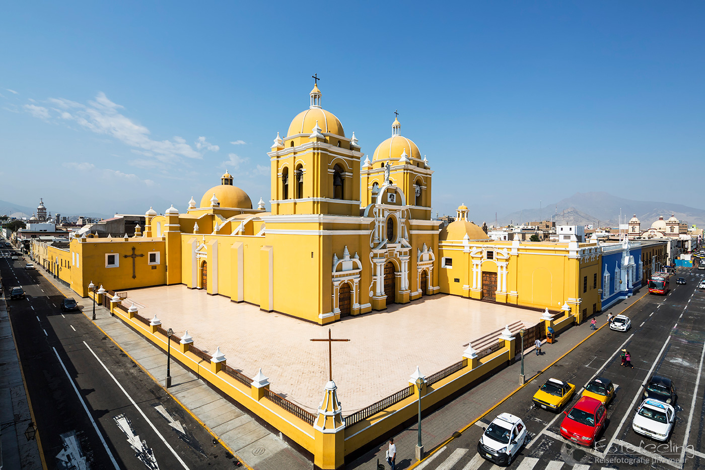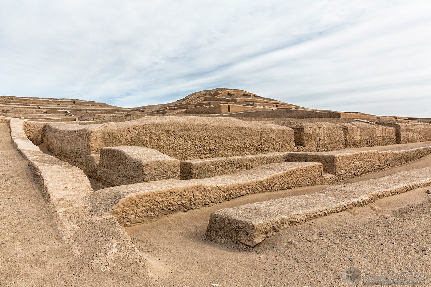 ist ungefähr 30 m hoch. Noch größer und beeindruckender ist die „Huaca Larga“. Mit einem Grundriss von 700 mal 280 Meter zählt sie zu den größten Pyramiden der Welt. Man vermutet, dass die Huacas (Tempelberge) ursprünglich von den Mochicas für religiöse Rituale erbaut wurden.