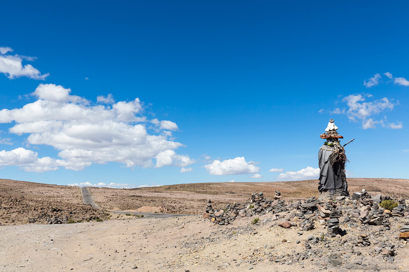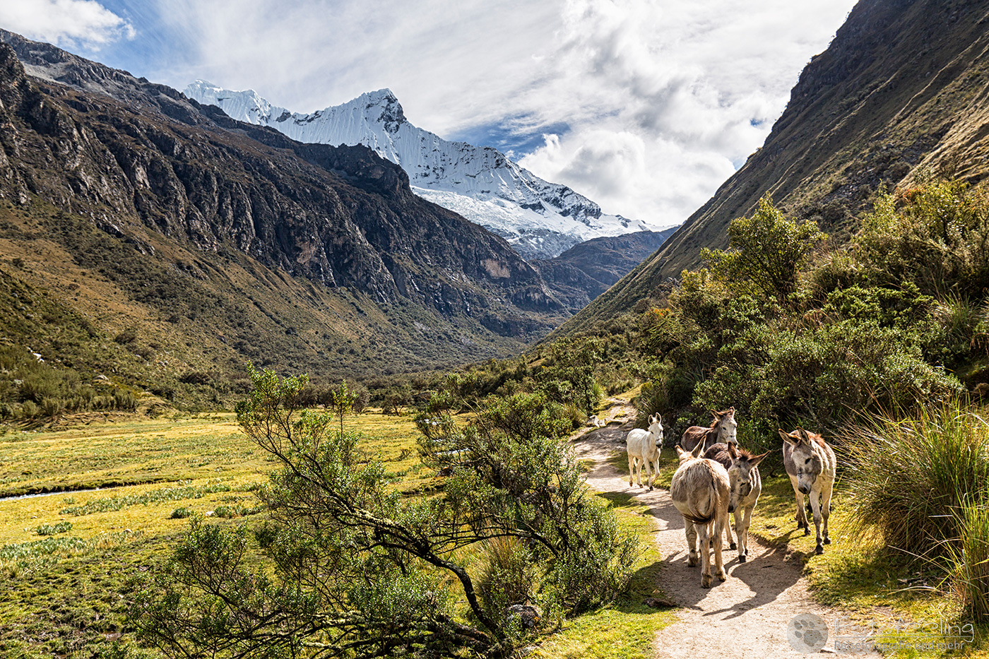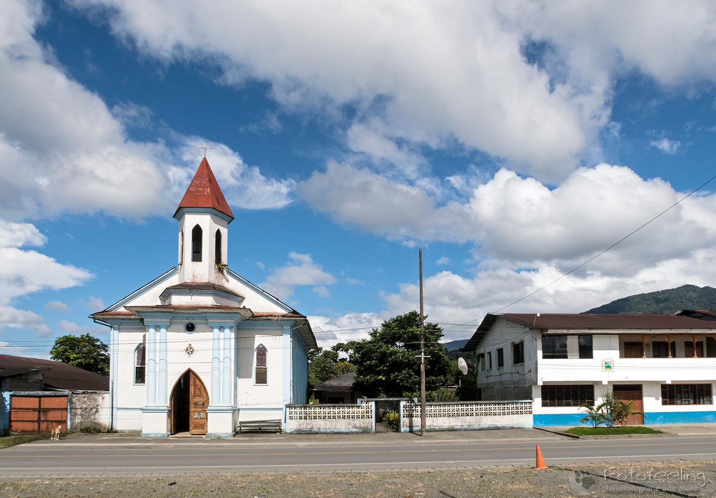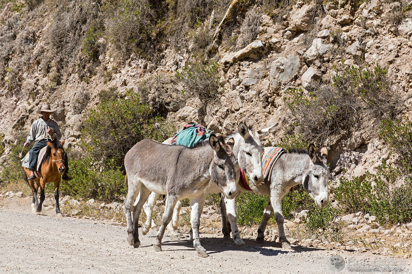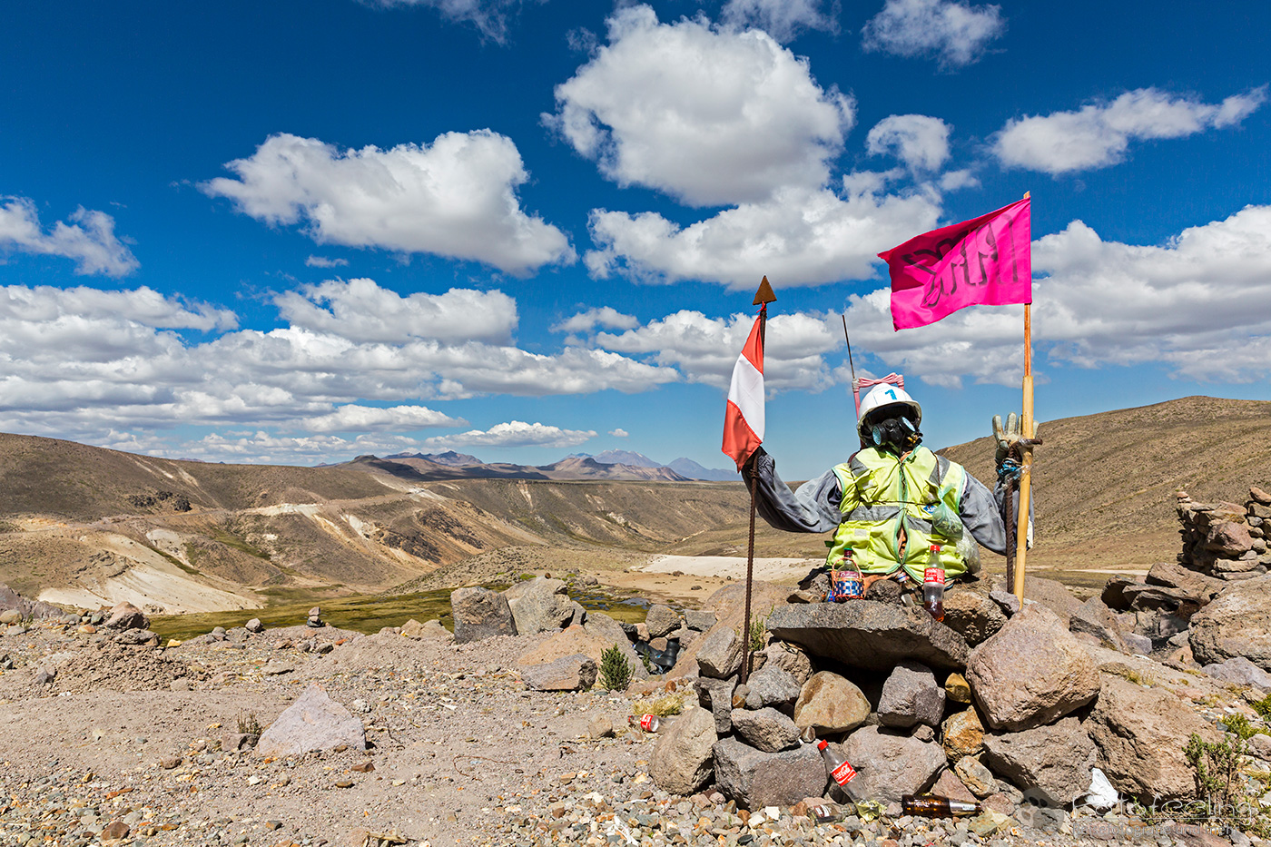 Die Straße schlängelte sich bis auf 2000 m die Berge hinauf. Tiefe Täler und malerische Bergdörfer wechselten sich ab. Immer wieder gingen Esel, Schafe oder Kühe die Straße entlang. Wir fuhren über den 2137 m hohen Pass „Abra de Porcuya“, einen der niedrigsten der Anden. Auch hier wurde permanent an der Straße gearbeitet und so mussten wir immer wieder anhalten und warten. Trotz der Pare = Stopp Schilder hupen die Südamerikaner genervt. Also Geduld ist wirklich nicht ihre Stärke. An einer etwas längeren Straßensperre wurden immer wieder Lebensmittel, Getränke und Obst angeboten. Das Geschäft schien sich zu lohnen, denn Knabbereien und Getränke verschwanden in den wartenden Autos. Wir hatten alles dabei. Als es endlich weiter ging, hupte und knatterte irgendwo ein Auto – ohrenbetäubend laut. Was für eine coole Hupe. Das musste der Laster vor uns sein, dachten wir. Die Hupe war echt der Hammer, aber warum stellte der Fahrer sie nicht ab und machte dauerhaft Lärm. Das Geräusch blieb auch immer gleich laut… Irgendwann meinte ich zu Chris: „Ich glaube, wir sind das!“ Mit einem ungläubigen Schulterzucken stoppte Chris den Wagen und wir lauschten. Jetzt war es noch viel lauter, wieder hupten wir anhaltend, dann kam ein keckerndes Jukebox Geräusch, um gleich darauf wieder von dem Hupen abgelöst zu werden. Wenn wir jetzt noch gehüpft wären, hätten wir glatt in einer Komödie mitspielen können… Wie auch immer - Chris hatte irgendwie die Alarmanlage aktiviert und brauchte ein wenig, bis er das Auto wieder im Griff hatte.