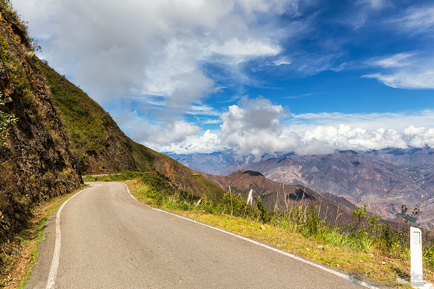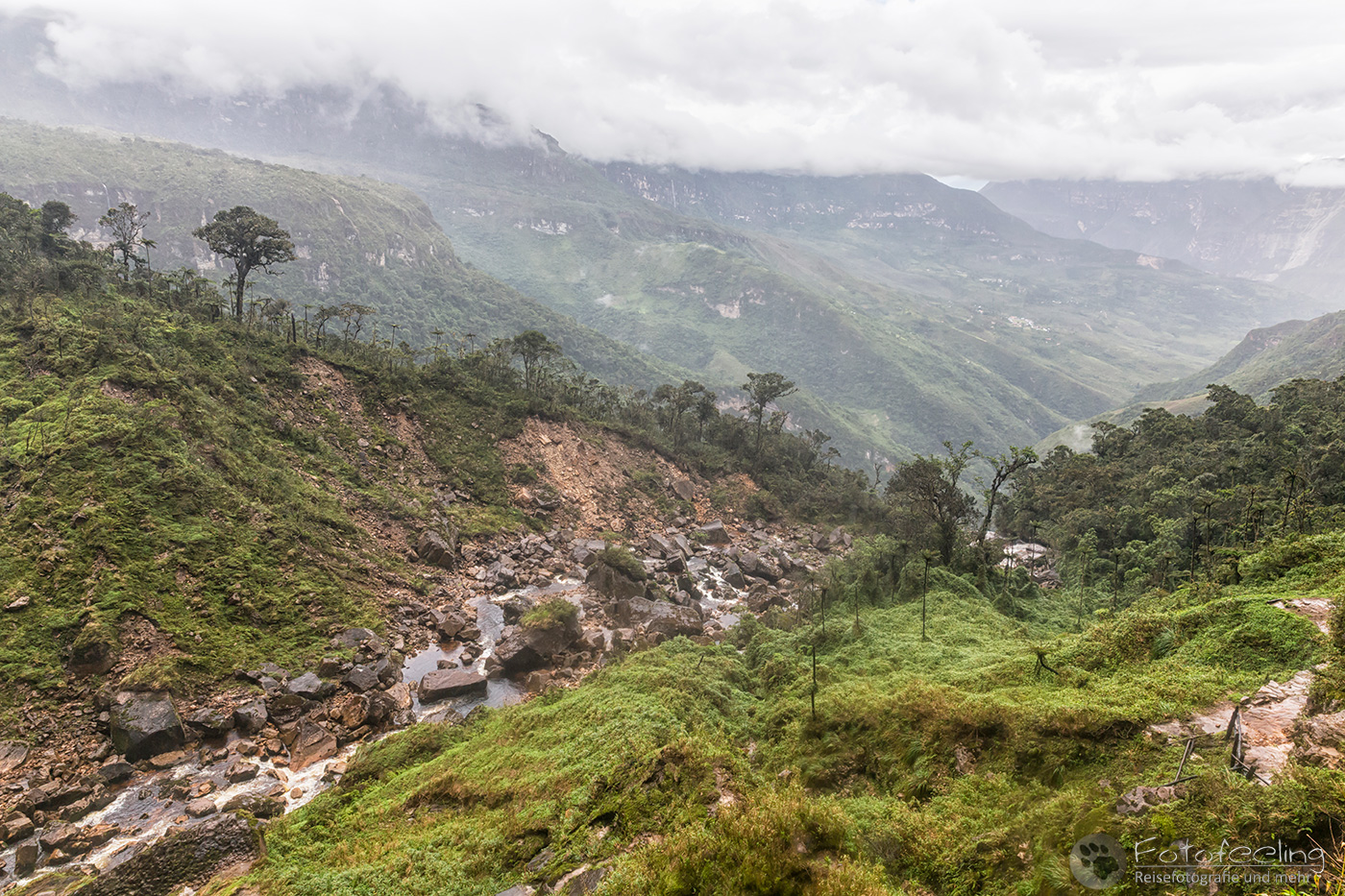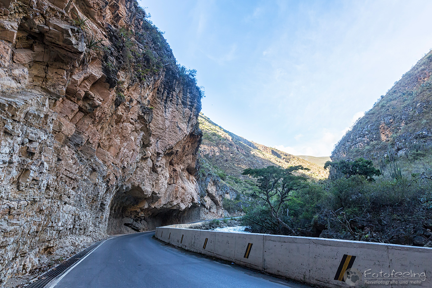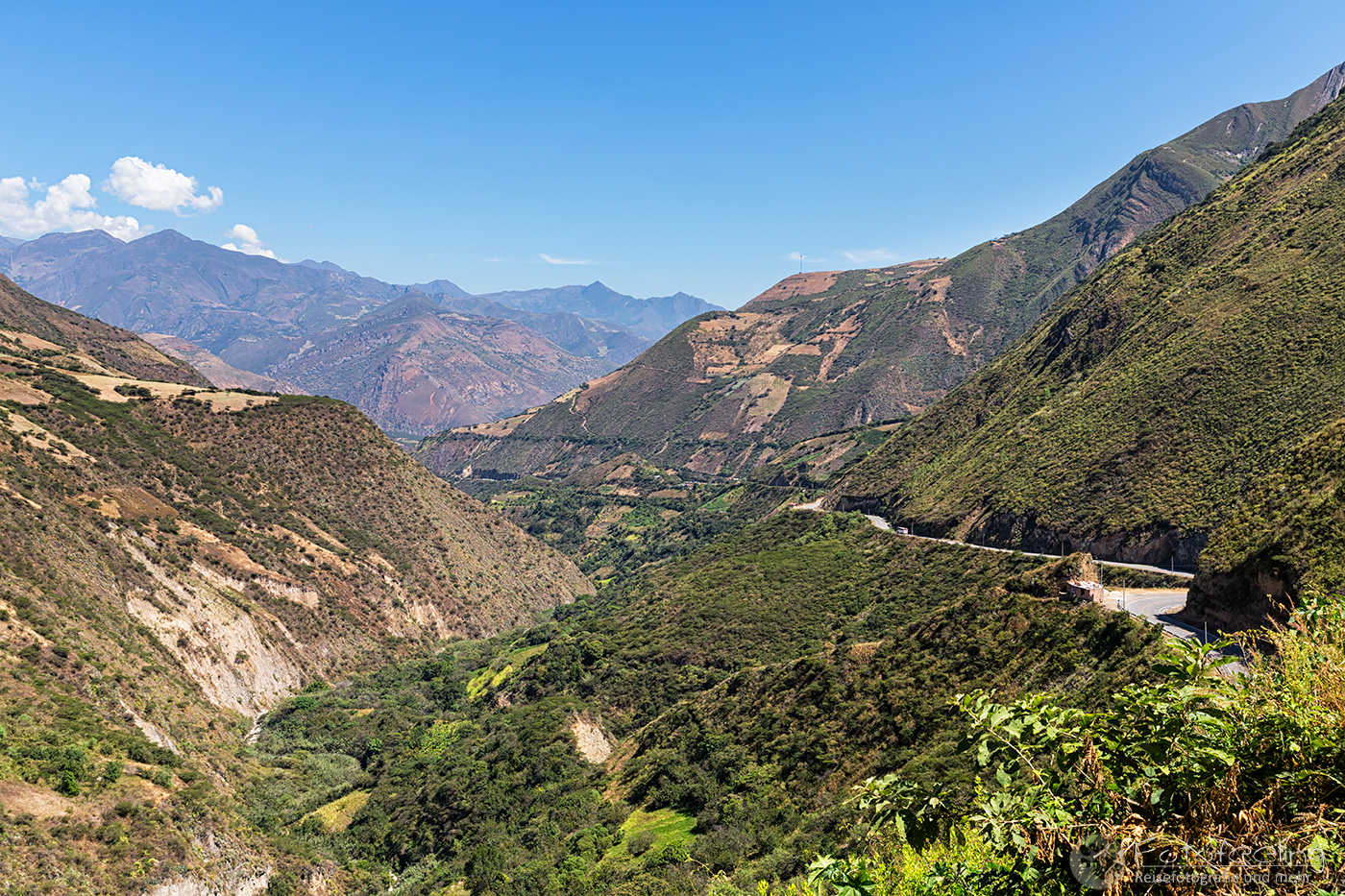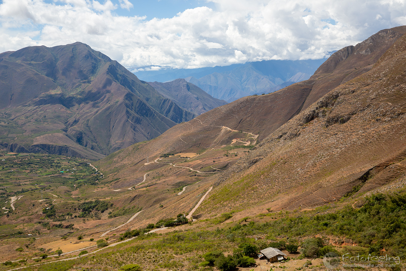 Je weiter wir nach Osten kamen, desto vegetationsreicher wurde die Gebirgslandschaft, wobei uns der Amazonas-Quellfluss Rio Marañon eine Zeitlang begleitete, der später vom Rio Utcubamba abgewechselt wurde. Hier merkten wir auch deutlich, dass wir in den Bergen des Amazonas unterwegs waren, denn es war warm und überall wunderbar grün. Immer wieder entdeckten wir Wasserfälle. Die Berge waren von buntem Gestein oder mit Pflanzen bewachsen. Auch die Temperatur stieg stetig bis auf schwülwarme 33°C. Vögel zwitscherten und ab und zu konnten wir sogar Papageien entdecken.