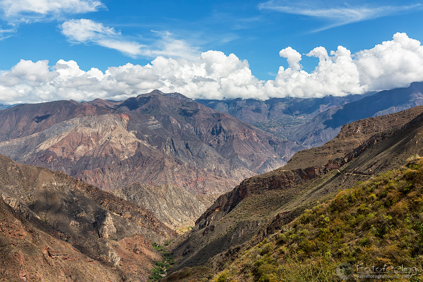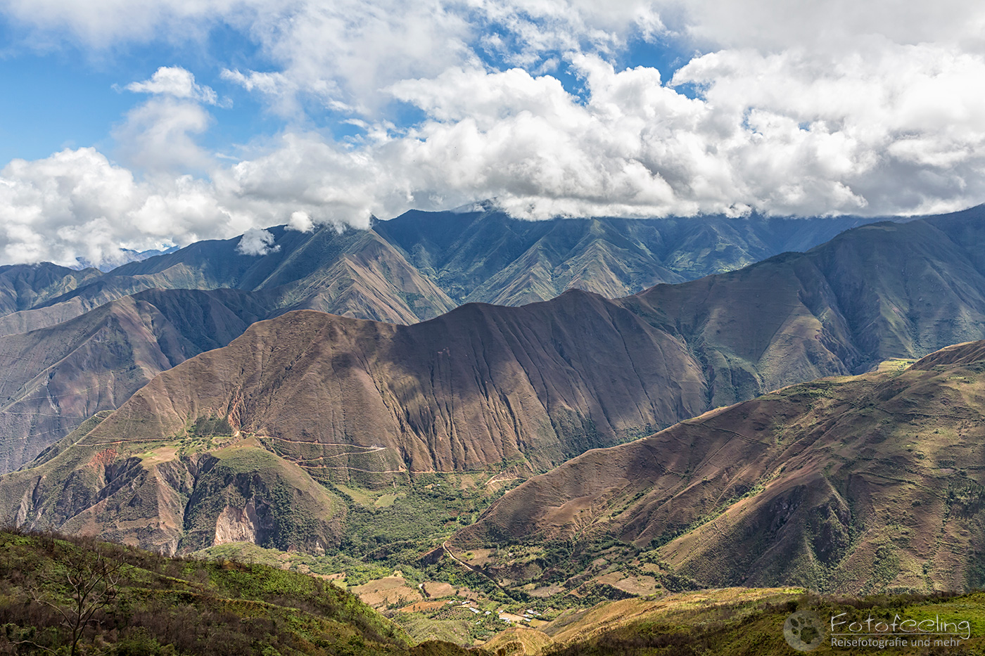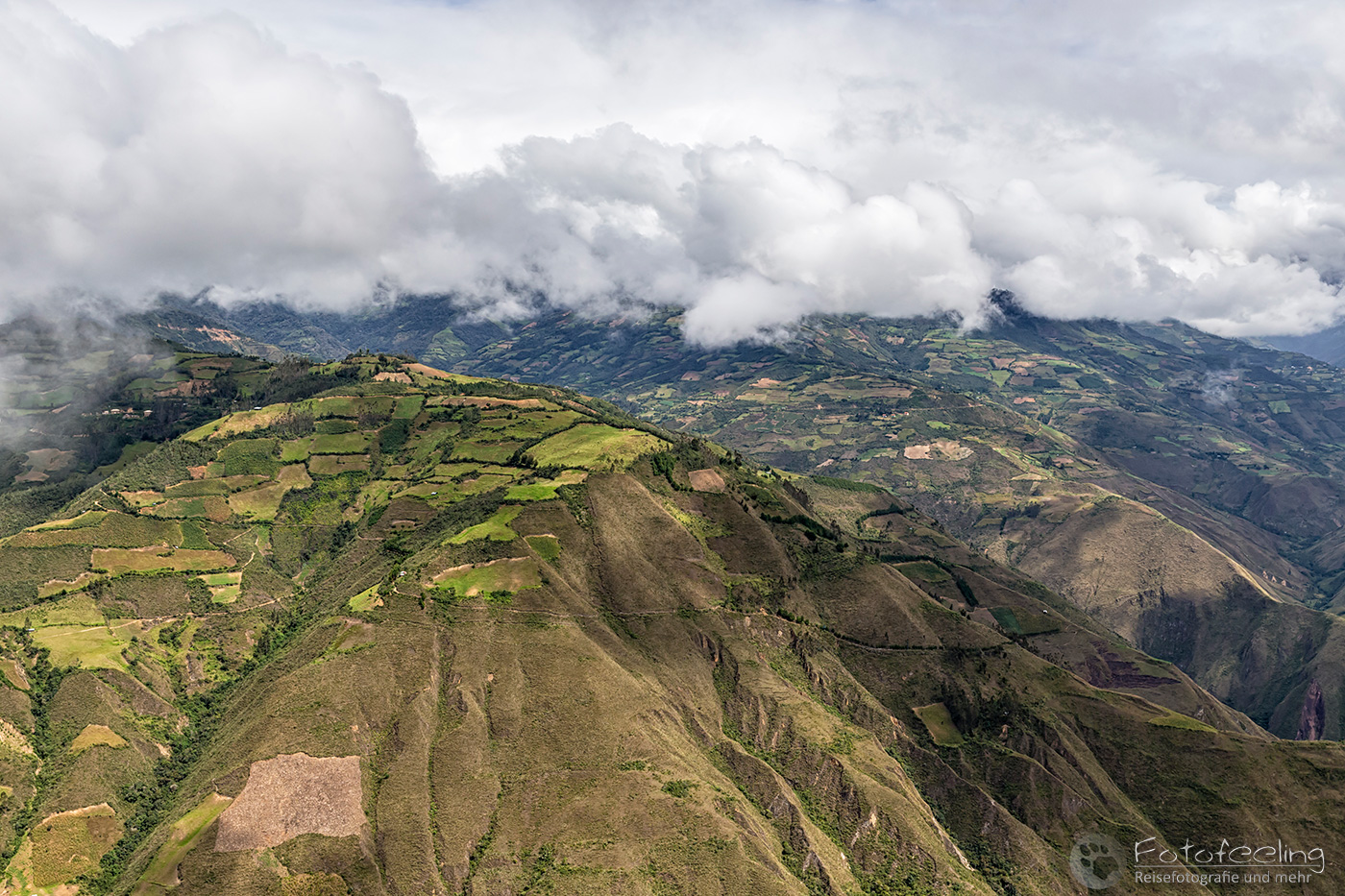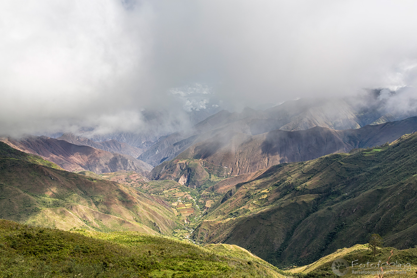 Je weiter wir nach Osten kamen, desto vegetationsreicher wurde die Gebirgslandschaft, wobei uns der Amazonas-Quellfluss Rio Marañon eine Zeitlang begleitete, der später vom Rio Utcubamba abgewechselt wurde. Hier merkten wir auch deutlich, dass wir in den Bergen des Amazonas unterwegs waren, denn es war warm und überall wunderbar grün. Immer wieder entdeckten wir Wasserfälle. Die Berge waren von buntem Gestein oder mit Pflanzen bewachsen. Auch die Temperatur stieg stetig bis auf schwülwarme 33°C. Vögel zwitscherten und ab und zu konnten wir sogar Papageien entdecken.