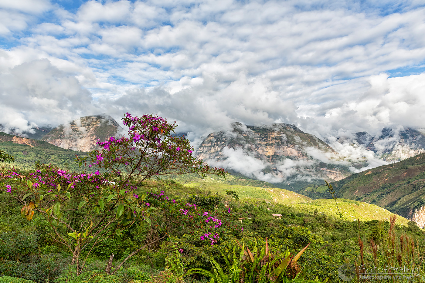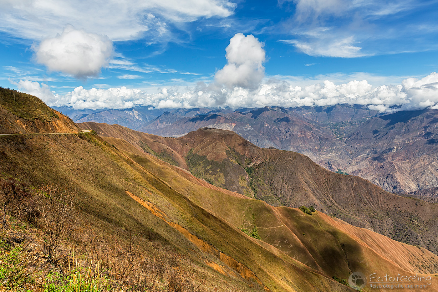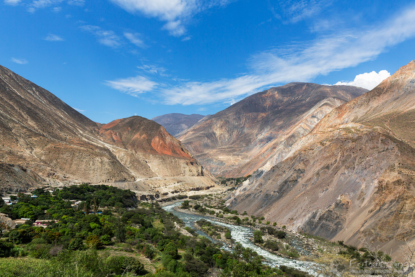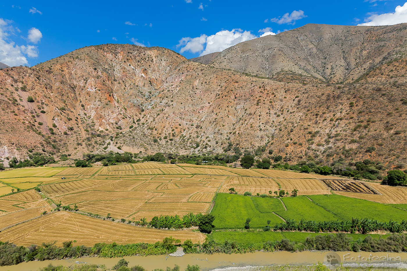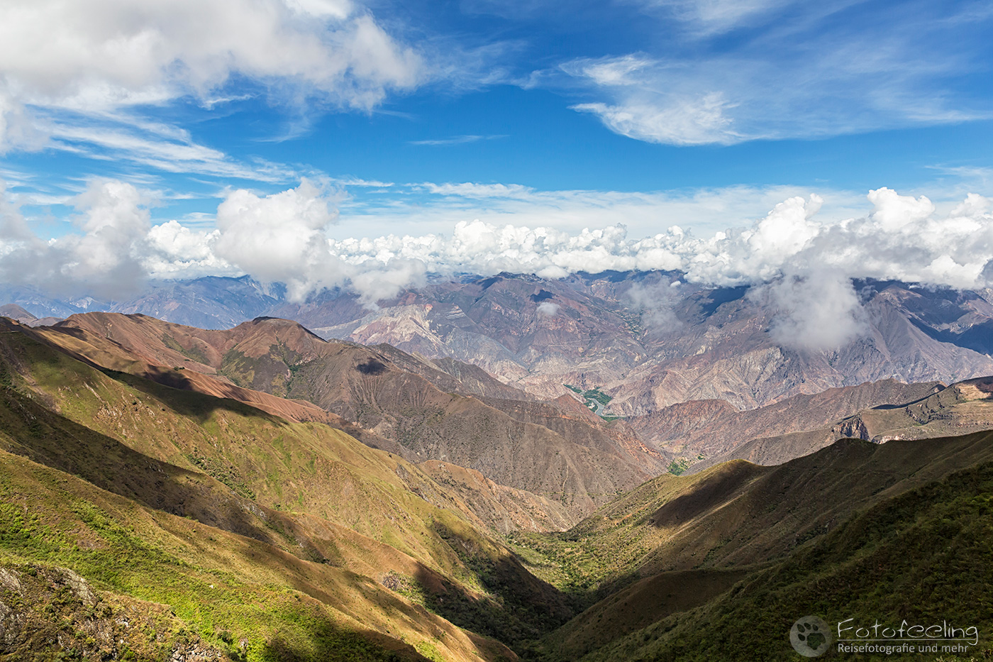Je weiter wir nach Osten kamen, desto vegetationsreicher wurde die Gebirgslandschaft, wobei uns der Amazonas-Quellfluss Rio Marañon eine Zeitlang begleitete, der später vom Rio Utcubamba abgewechselt wurde. Hier merkten wir auch deutlich, dass wir in den Bergen des Amazonas unterwegs waren, denn es war warm und überall wunderbar grün. Immer wieder entdeckten wir Wasserfälle. Die Berge waren von buntem Gestein oder mit Pflanzen bewachsen. Auch die Temperatur stieg stetig bis auf schwülwarme 33°C. Vögel zwitscherten und ab und zu konnten wir sogar Papageien entdecken.