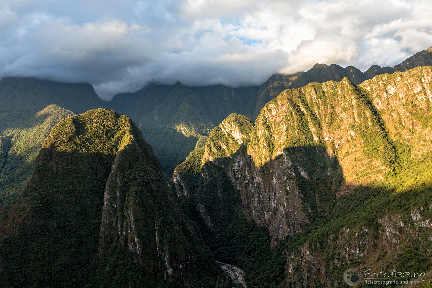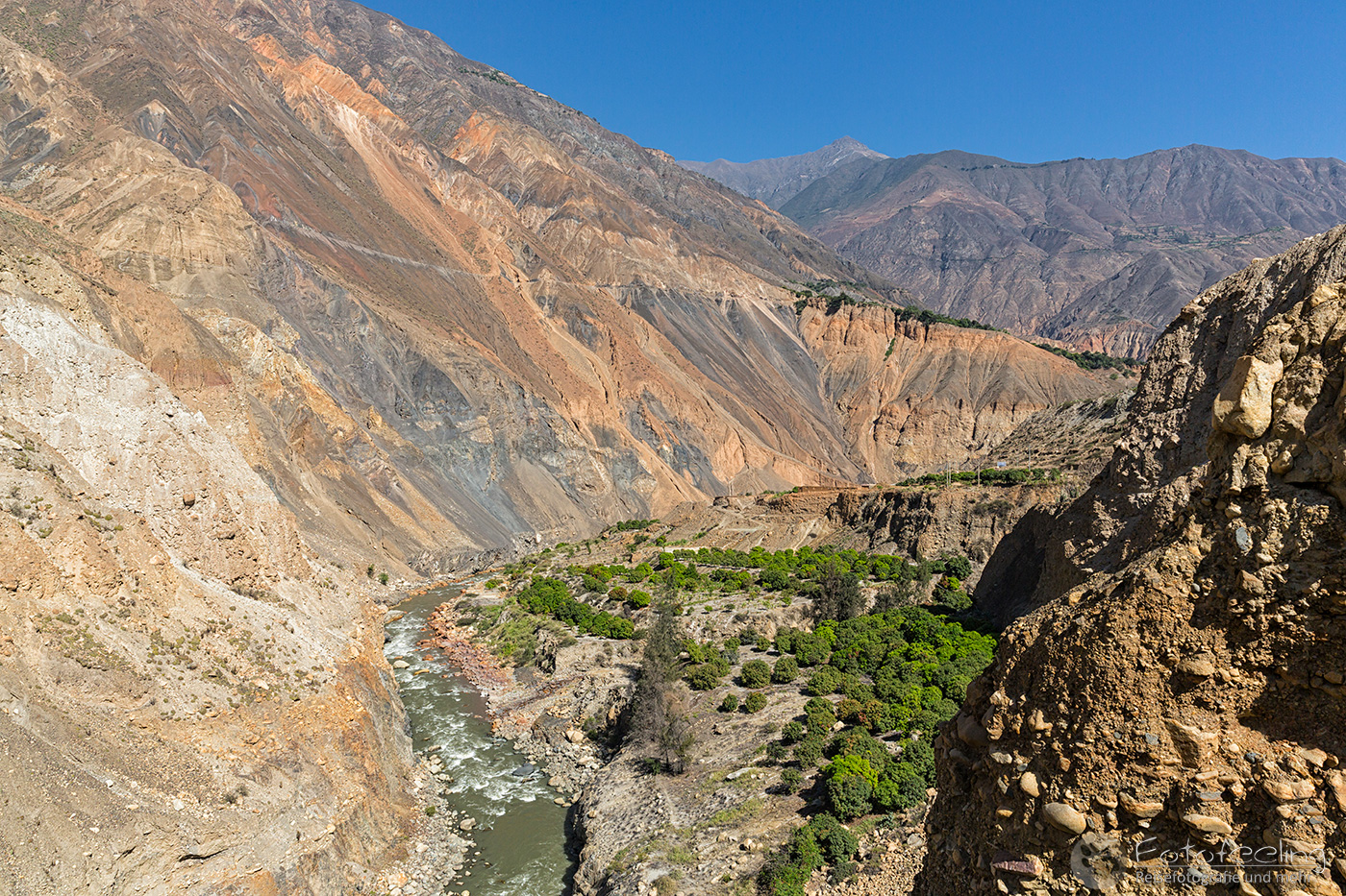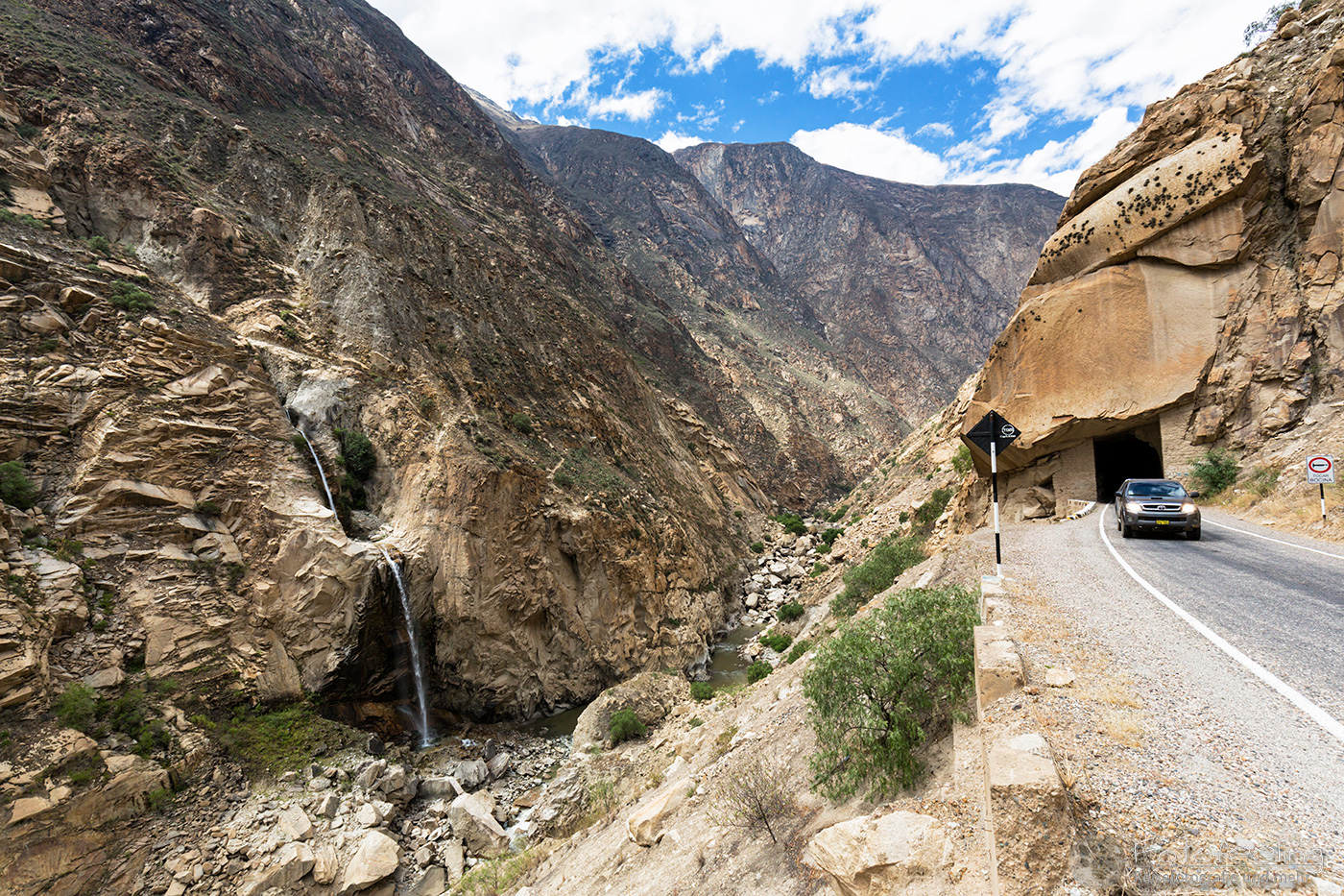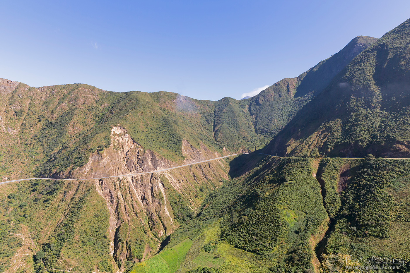 Je weiter wir nach Osten kamen, desto vegetationsreicher wurde die Gebirgslandschaft, wobei uns der Amazonas-Quellfluss Rio Marañon eine Zeitlang begleitete, der später vom Rio Utcubamba abgewechselt wurde. Hier merkten wir auch deutlich, dass wir in den Bergen des Amazonas unterwegs waren, denn es war warm und überall wunderbar grün. Immer wieder entdeckten wir Wasserfälle. Die Berge waren von buntem Gestein oder mit Pflanzen bewachsen. Auch die Temperatur stieg stetig bis auf schwülwarme 33°C. Vögel zwitscherten und ab und zu konnten wir sogar Papageien entdecken.