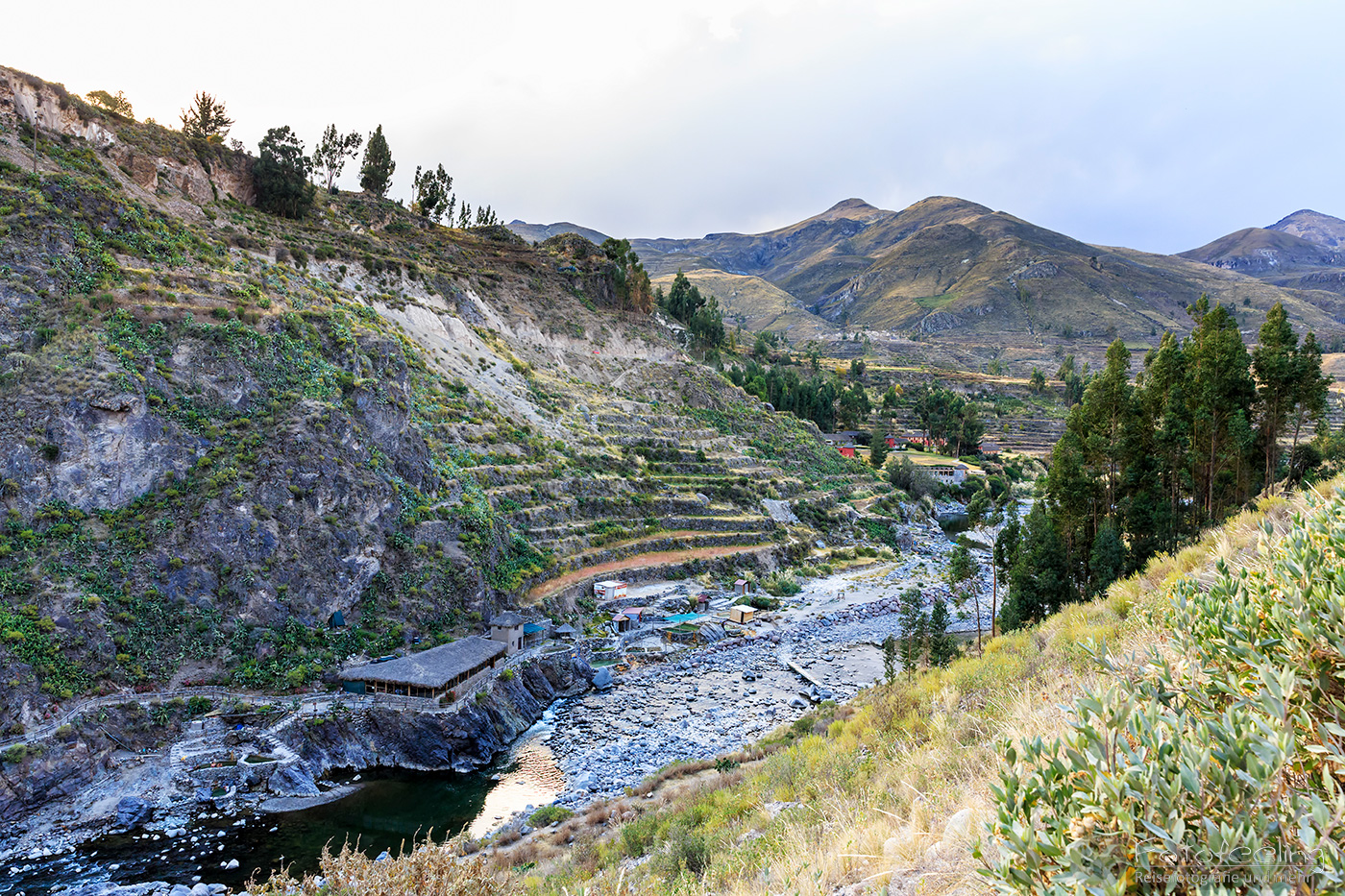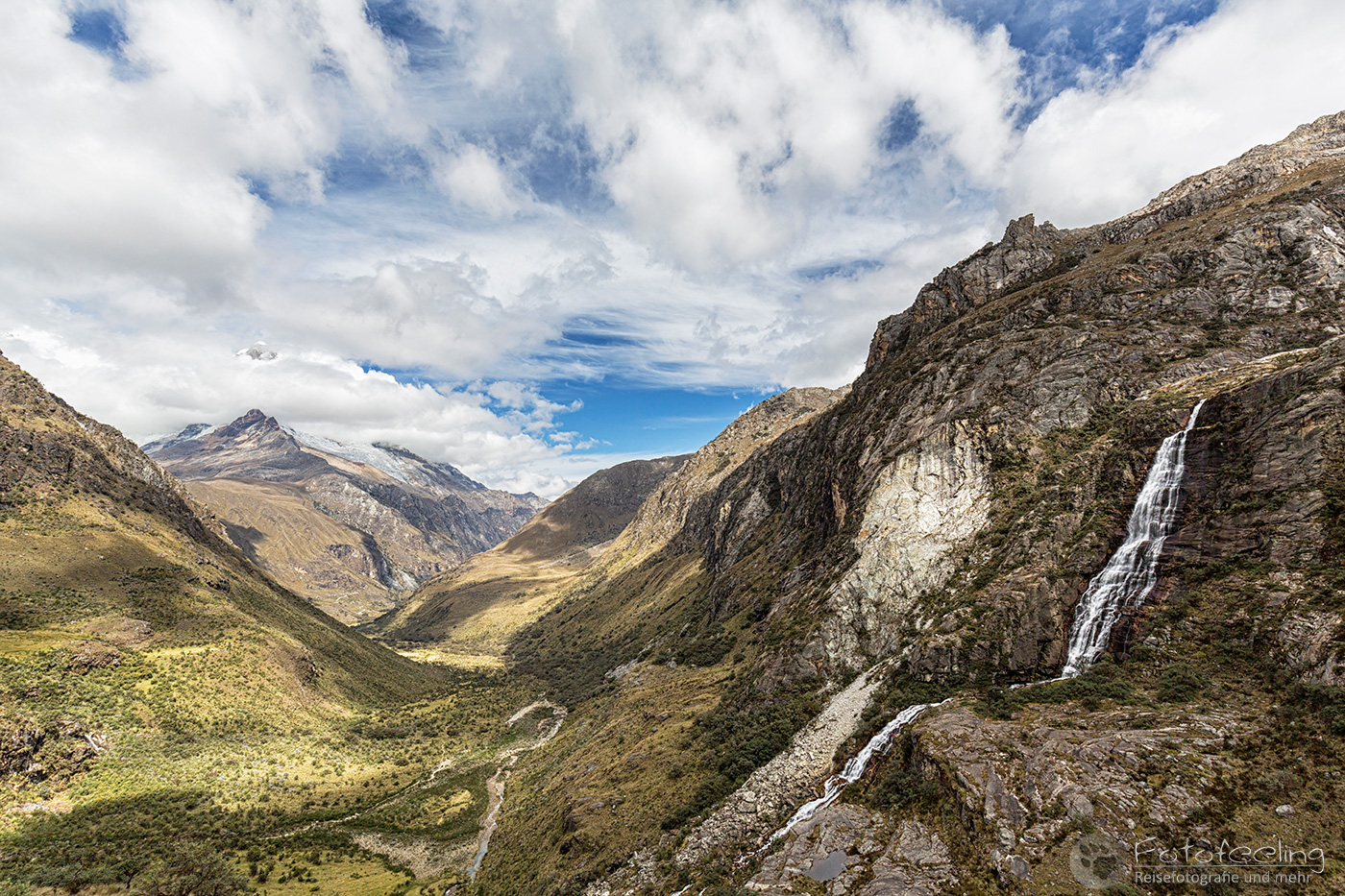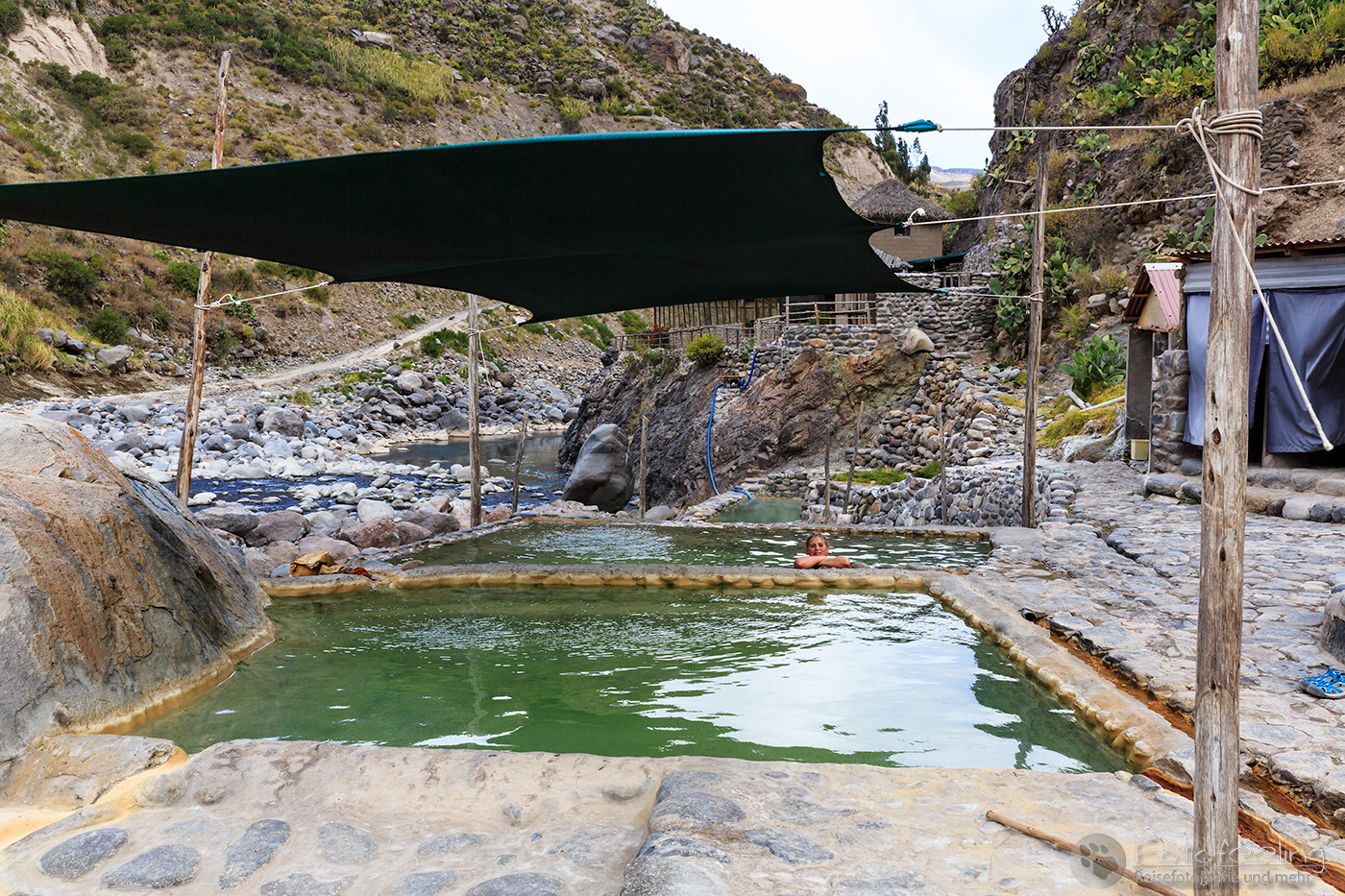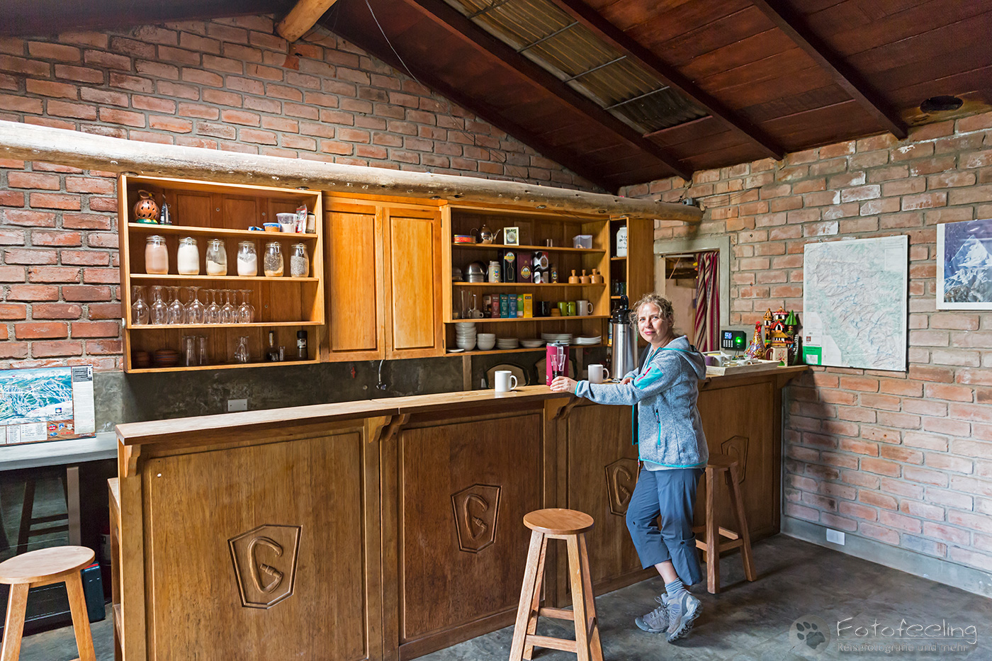 Wir verbrachten den Rest des Tages am Pool, lasen und genossen das sommerlich schöne Wetter. Auf der Wiese vor dem Haus grasten Lamas und vervollständigten das Bild einer idyllischen Berglandschaft. Ein weiterer Wasserfall rechts von der Lodge war wohl übergegangen und braunes Wasser schoss in die Tiefe. Später war er nur noch ein dünnes Rinnsal, aber an diesem Nachmittag sehr eindrucksvoll.