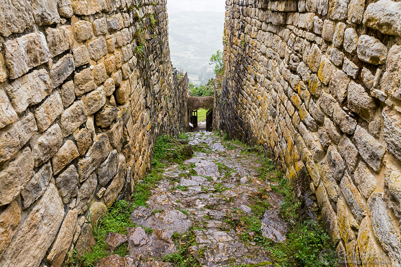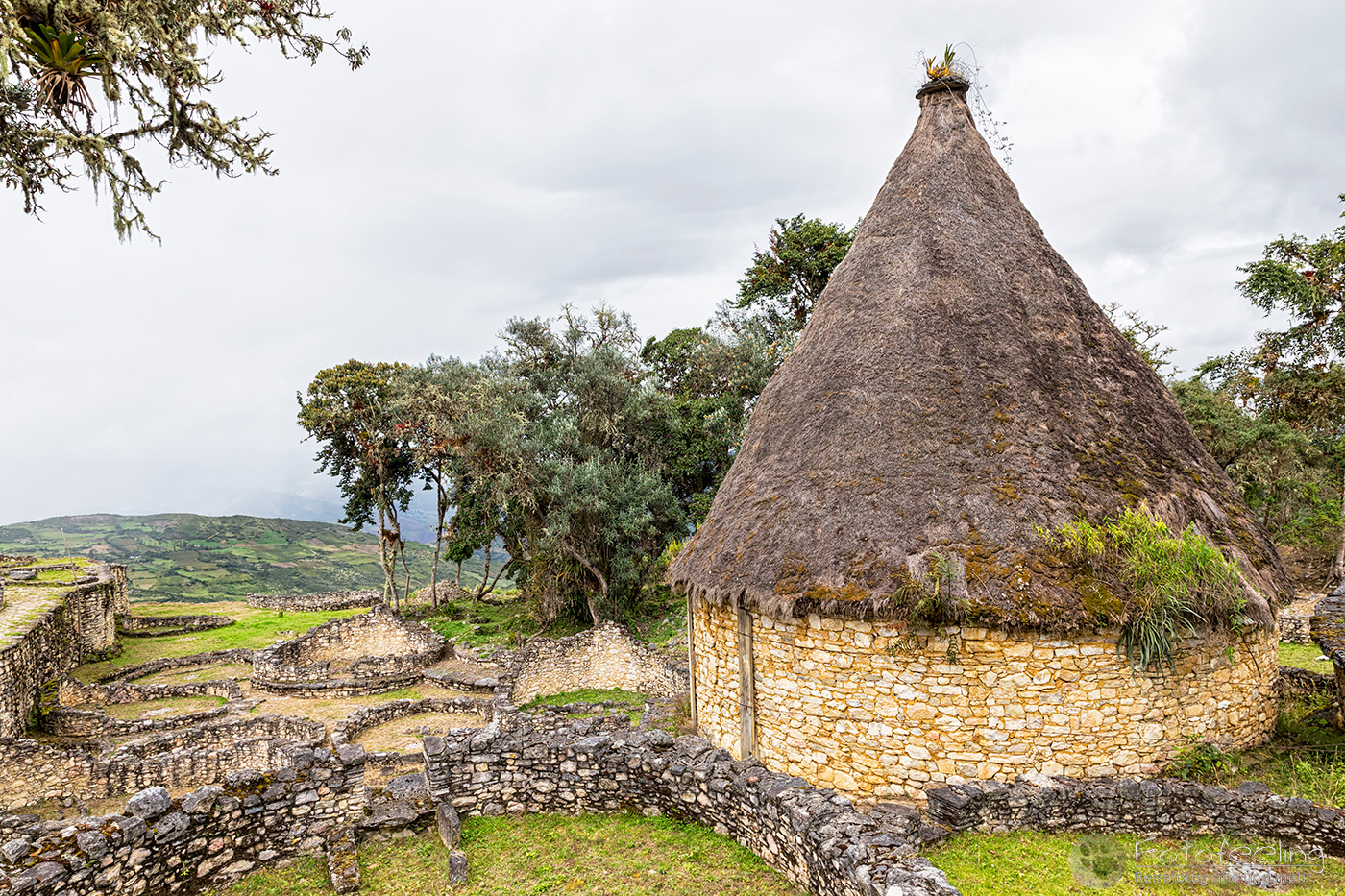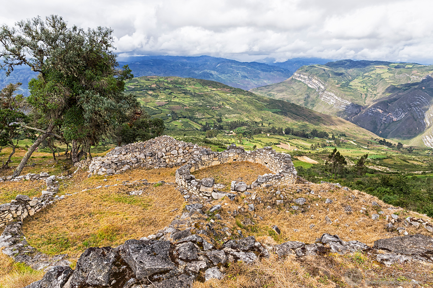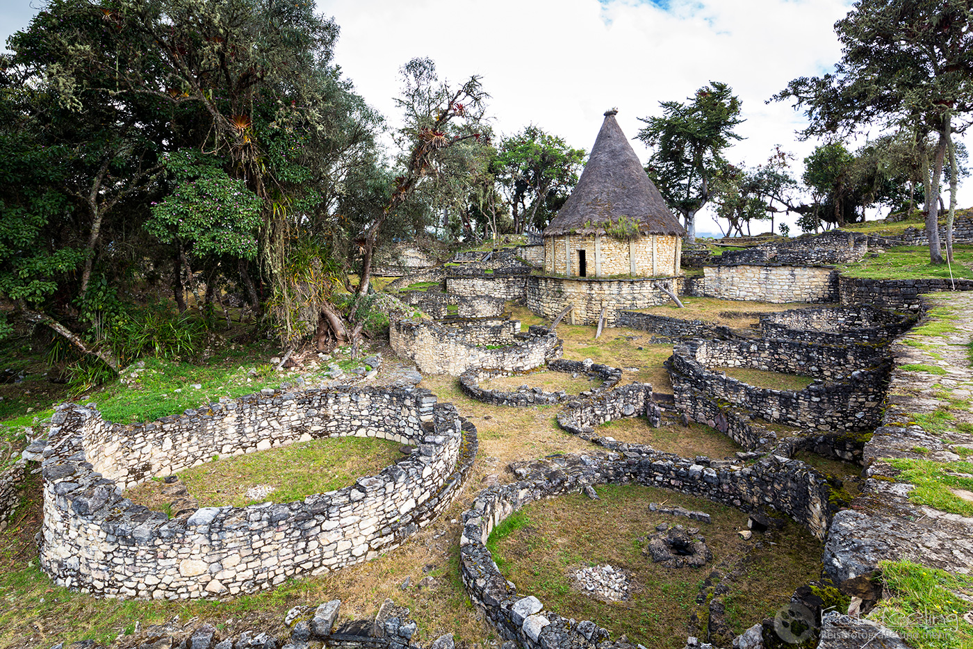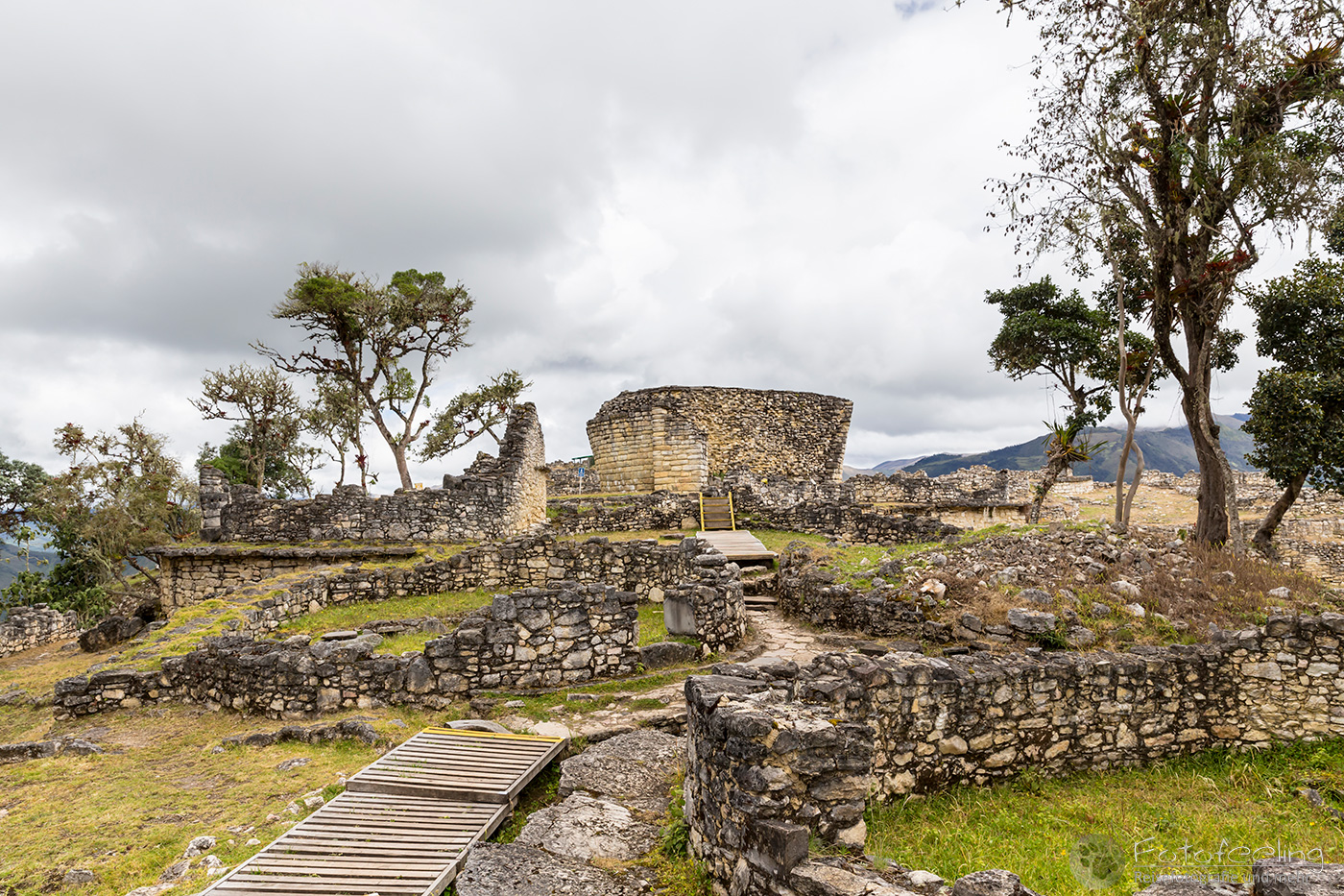 Der Weg war schon atemberaubend. Es ging stetig leicht bergauf und das in einer Höhe von über 3000 m. Nach einer Weile konnten wir die Festungsmauern erblicken. Sie waren von tiefhängenden Wolkenfetzen eingerahmt und es nieselte leicht. Ab und zu kam ein „Wolkenloch“ und die Umrisse der Mauern wurden etwas klarer. Ehrfurchtsvoll blieben wir stehen und betrachteten diese riesige Festungsanlage. Während die Augen die Mauern erkundeten, erwartete man fast, die Umrisse eines Chachapoya Kriegers zu erblicken, der nach Feinden Ausschau hält.