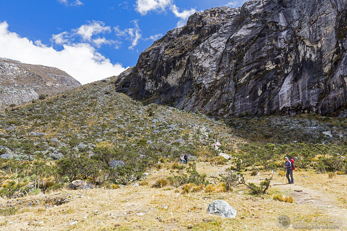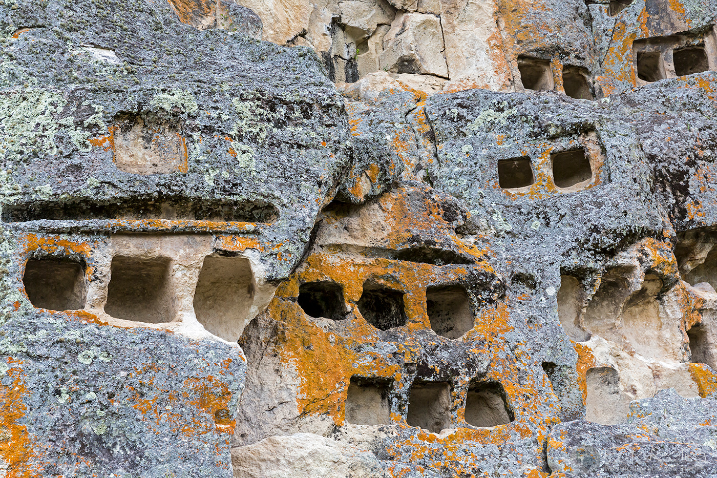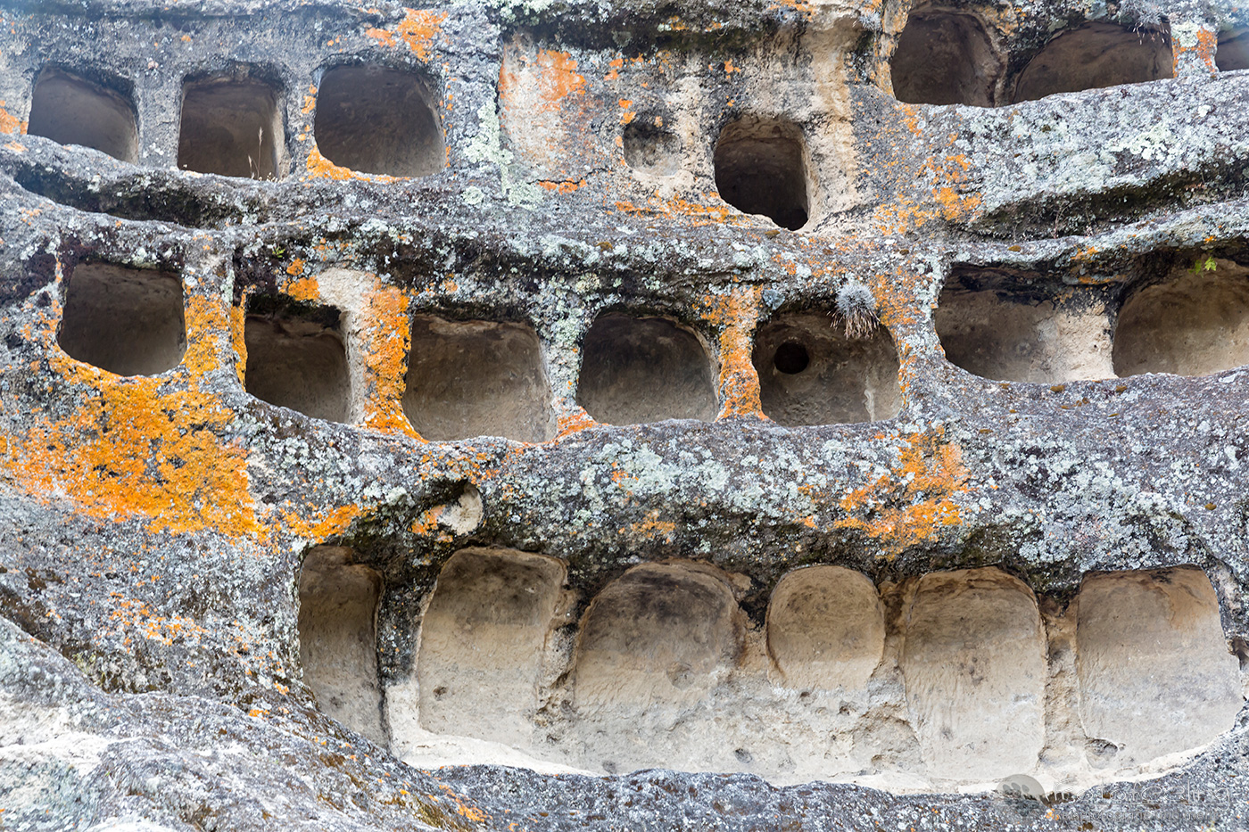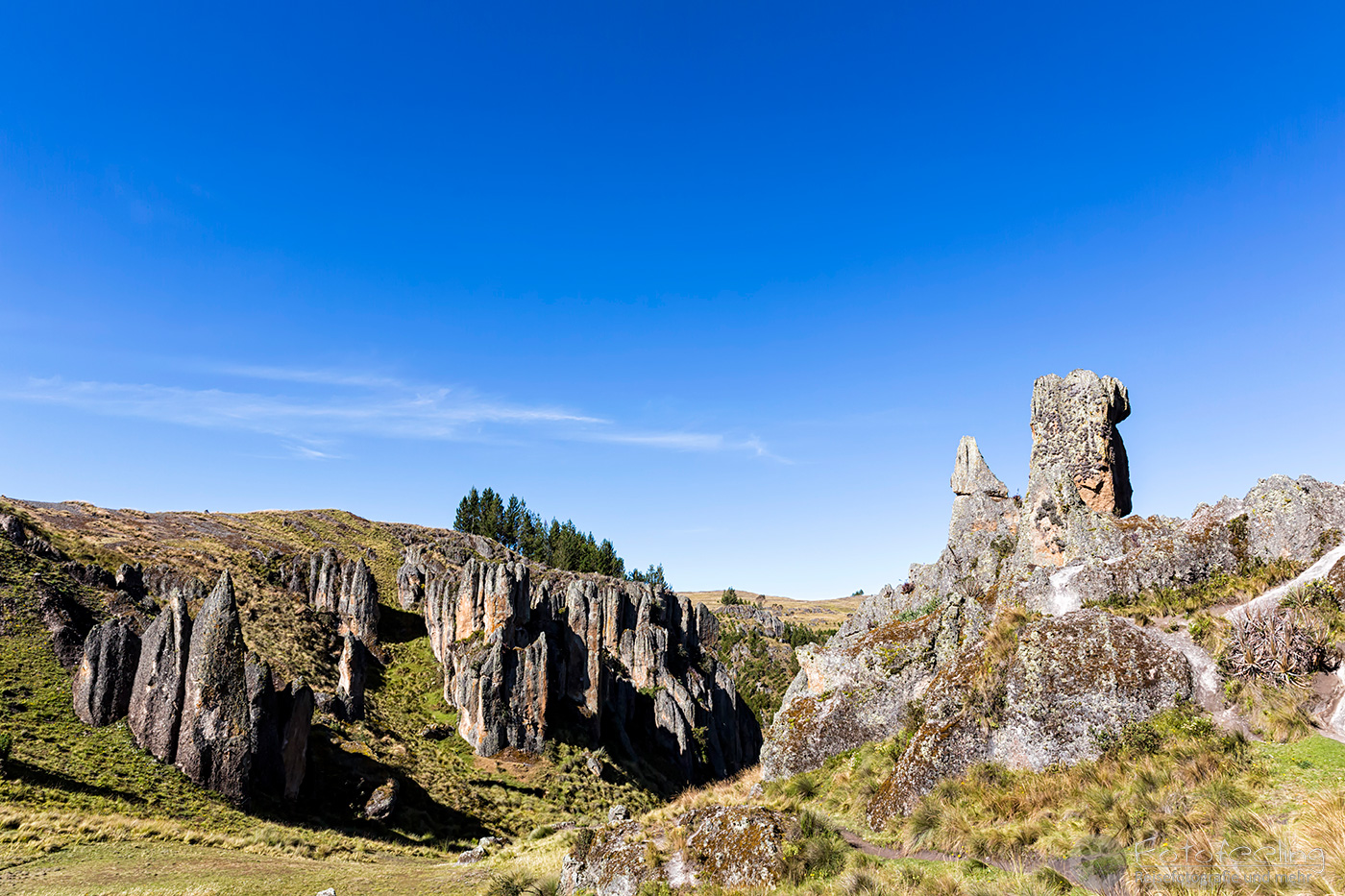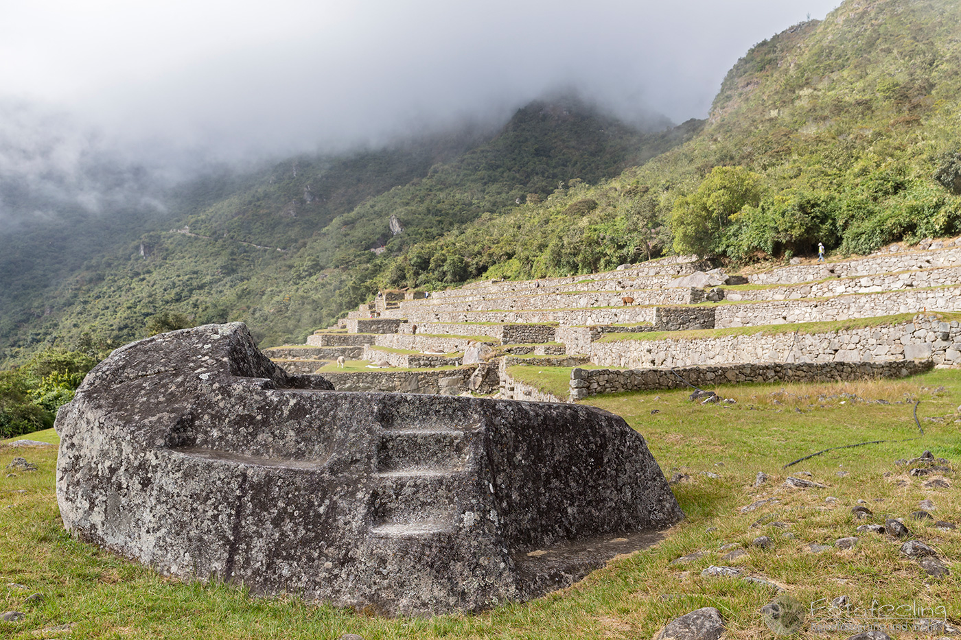 Der Weg war schon atemberaubend. Es ging stetig leicht bergauf und das in einer Höhe von über 3000 m. Nach einer Weile konnten wir die Festungsmauern erblicken. Sie waren von tiefhängenden Wolkenfetzen eingerahmt und es nieselte leicht. Ab und zu kam ein „Wolkenloch“ und die Umrisse der Mauern wurden etwas klarer. Ehrfurchtsvoll blieben wir stehen und betrachteten diese riesige Festungsanlage. Während die Augen die Mauern erkundeten, erwartete man fast, die Umrisse eines Chachapoya Kriegers zu erblicken, der nach Feinden Ausschau hält.
