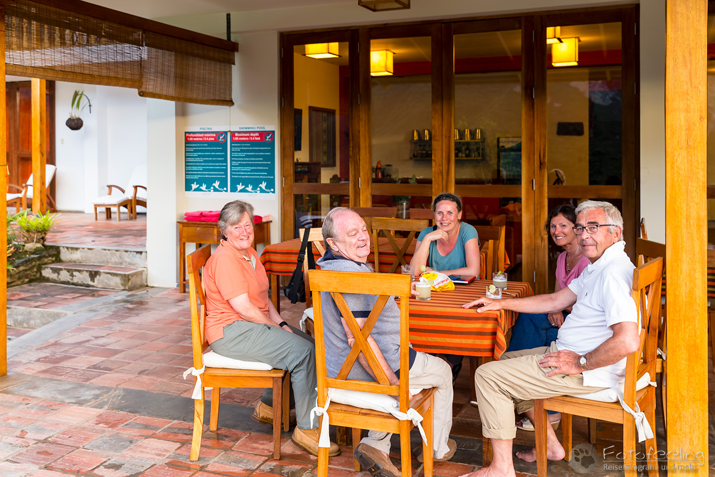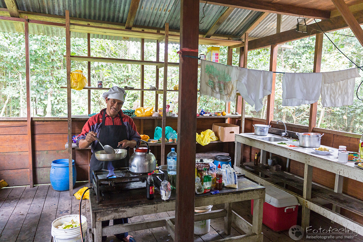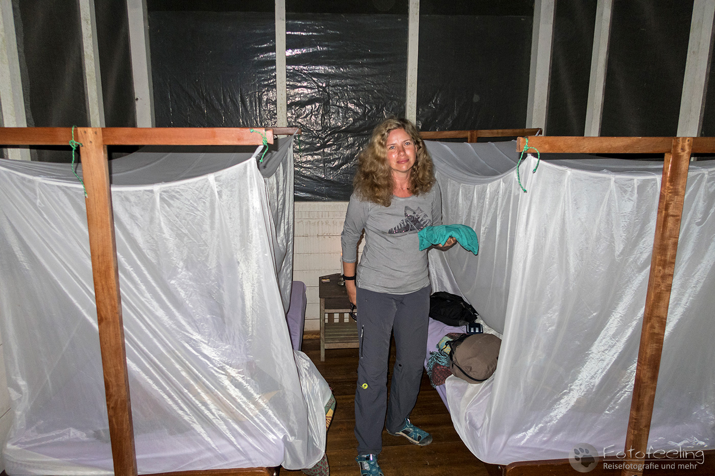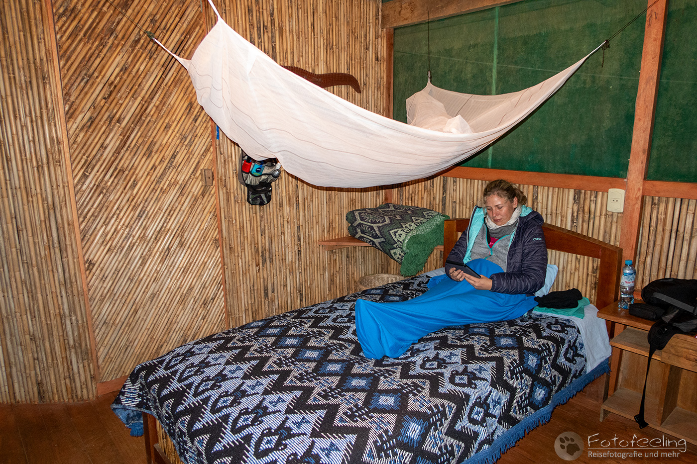 Manu Birding Lodge, Peru Unser Koch Luis in der Manu Birding Lodge Unsere Betten in der Manu Birding Lodge Andrea beobachtet mich beim Fotografieren der Kolibris Blue tailed Emerald (Chlorostilbon mellisugus), Amazonas Roter Zwergschattenkolibri (Phaethornis ruber), Amazonas Bronzeschwanz-Saphirkolibri (Chrysuronia oenone) oder Bronzeschwanzsaphir, Amazonas Roter Zwergschattenkolibri (Phaethornis ruber), Amazonas