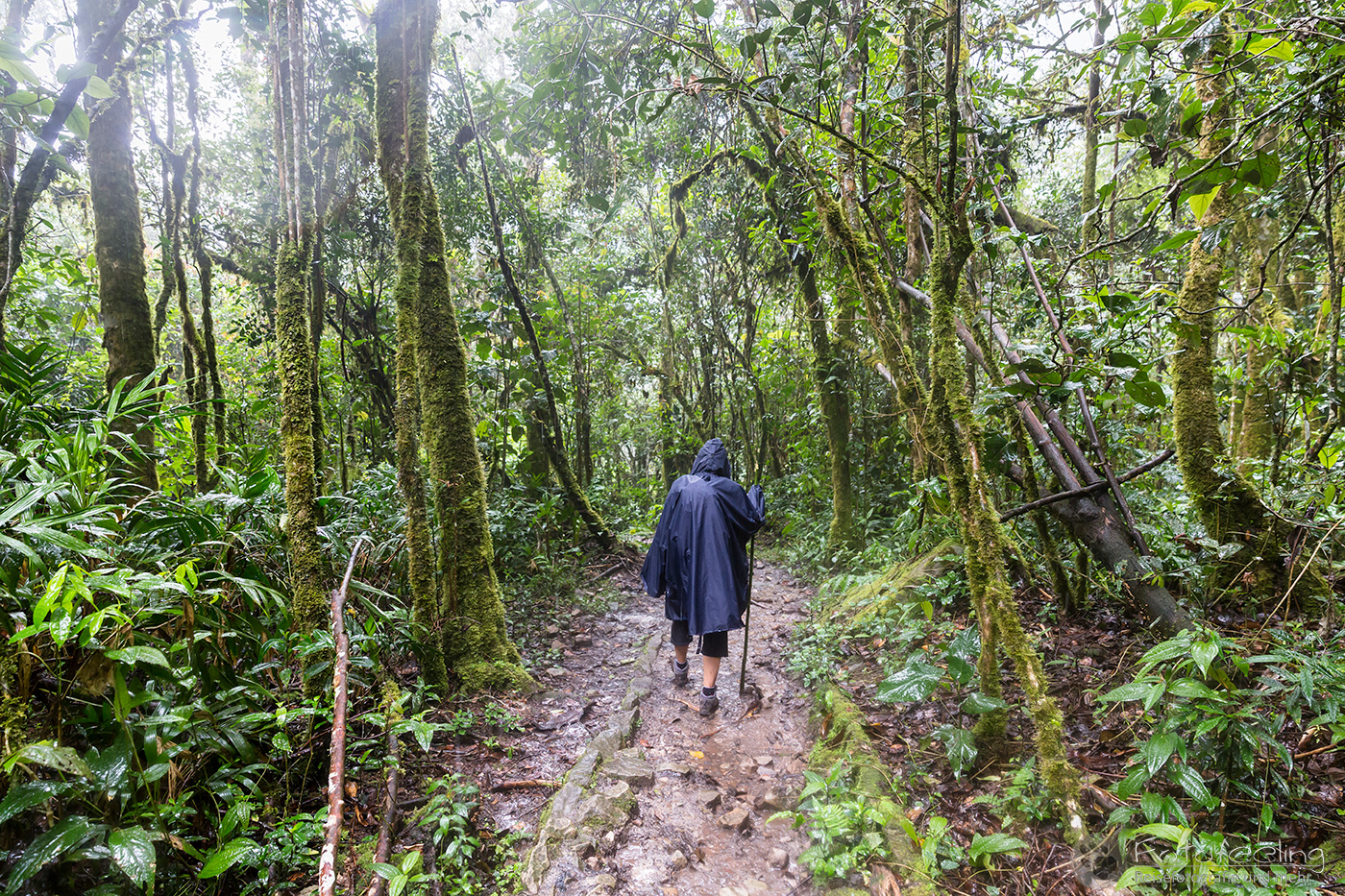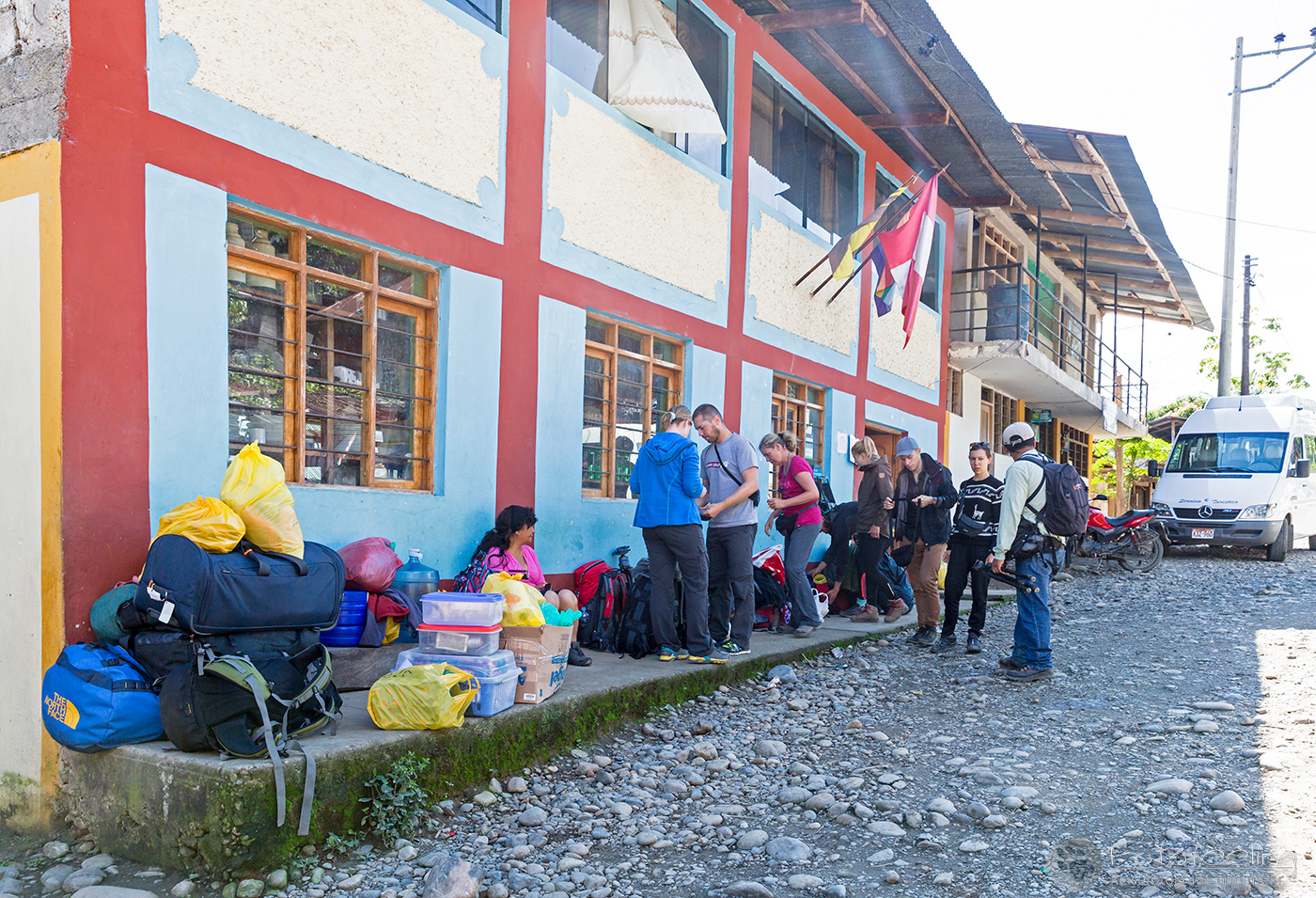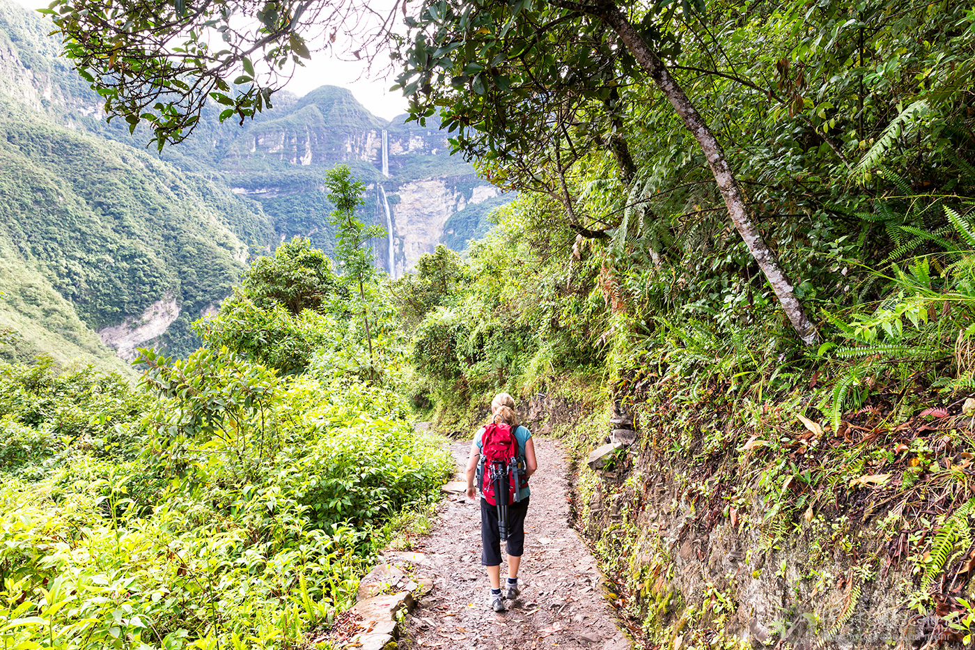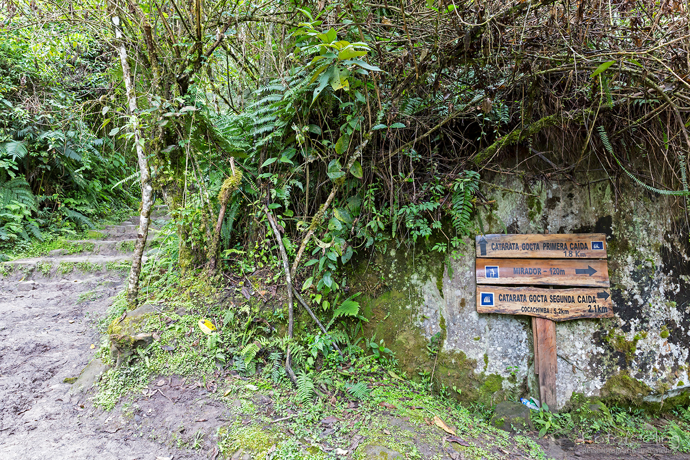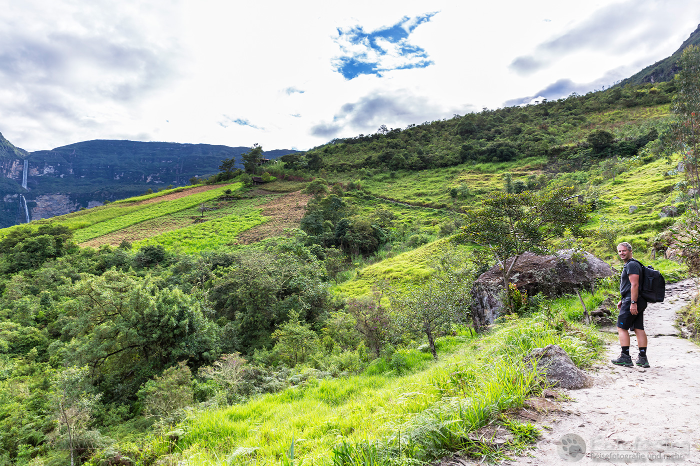 Nach dem Frühstück fuhren wir kurz zum Tickethäuschen und kauften für 10 Sol p. P. unsere Eintrittskarten für den Naturpark Gocta Fall, den wir heute besuchen wollten. Hier kann man auch einen lokalen Guide buchen oder auf eigene Faust den Wasserfall erkunden. Wir unterschrieben in einem Buch, dass uns die Gefahren bekannt seien und wir alleine gehen. Der Weg zu dem Bassin am Fuße des Wasserfalls dauert ca. 2 Stunden. Er ist 5,5 km lang und führt bergauf und bergab.