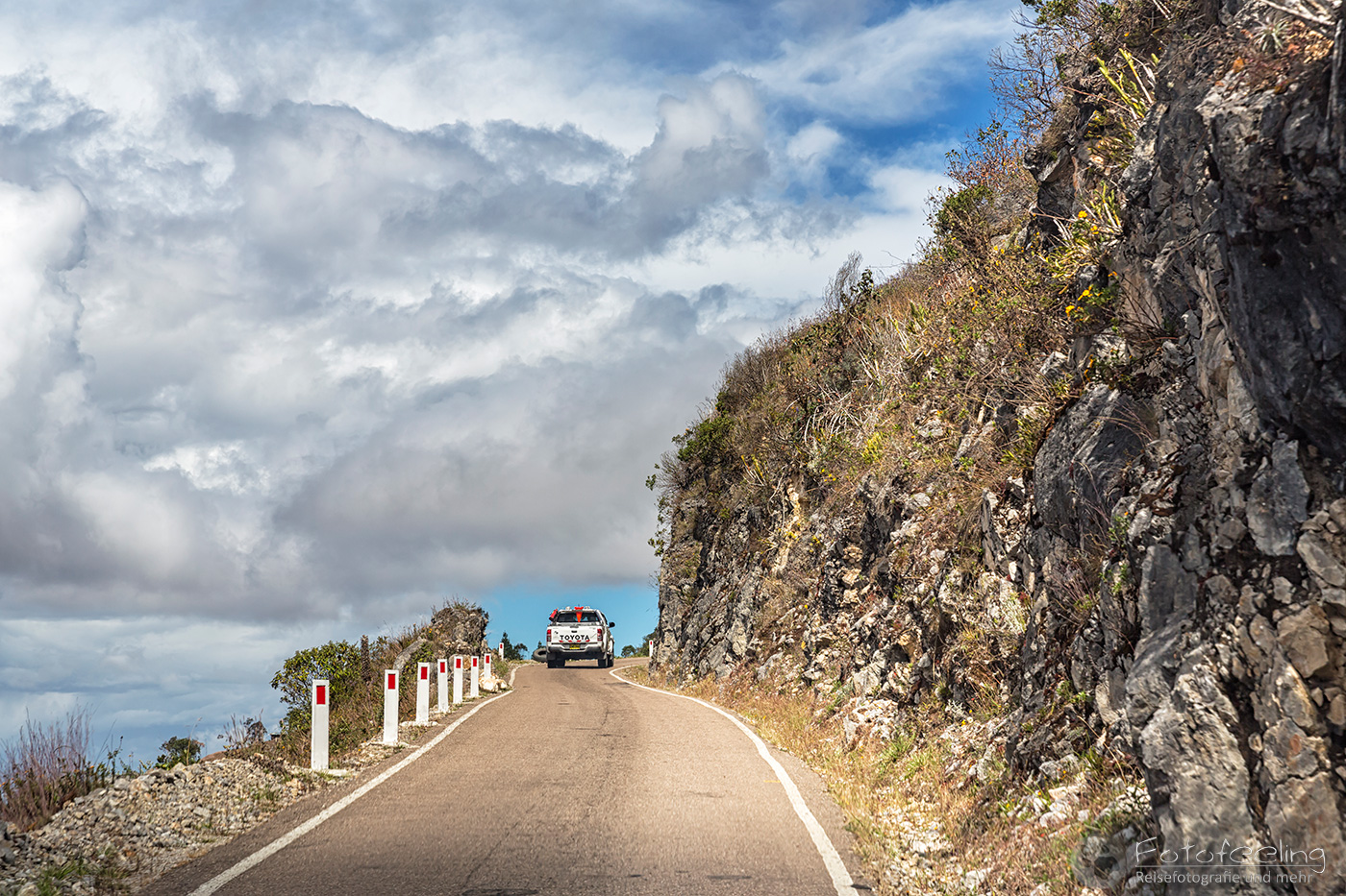 Leider wurde die anfangs zweispurige Straße auf Grund von Bauarbeiten einspurig und es ging durch den Schwerlastverkehr wieder etwas zäher voran. Besonders die Orte und kleinen Städte waren sehr interessant, denn zu dem Verkehr kamen jetzt auch noch Motortaxis, kleine überdachte dreirädrige Motorräder mit einer Kabine, in dem Passagiere transportiert wurden. Meist waren viel zu viele davon unterwegs und die waren noch frecher als andere Autofahrer und drängten sich hupend und schimpfend zwischen die Autos. Natürlich hielten sie immer wieder an, nachdem sie einen genötigt hatten. Wenn man nicht aufpasste, stand man ‚Wut schnaubend‘ hinter einem solchen Gefährt, dass einem auch noch die Abgaswolke ins Auto blies. Trotzdem oder auch gerade darum war die Fahrt sehr abwechslungsreich und interessant.
