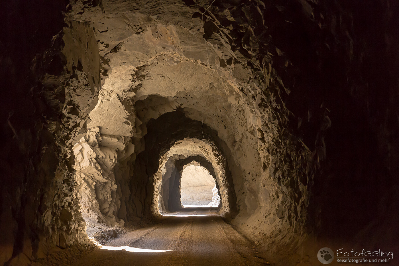 Hier war die Landschaft auch wieder sehenswert, denn farbige Hügel wechselten sich mit der Wüste ab. Chris stellte fest, dass man hier locker Mad Max oder andere Endzeitfilme hätte drehen können.