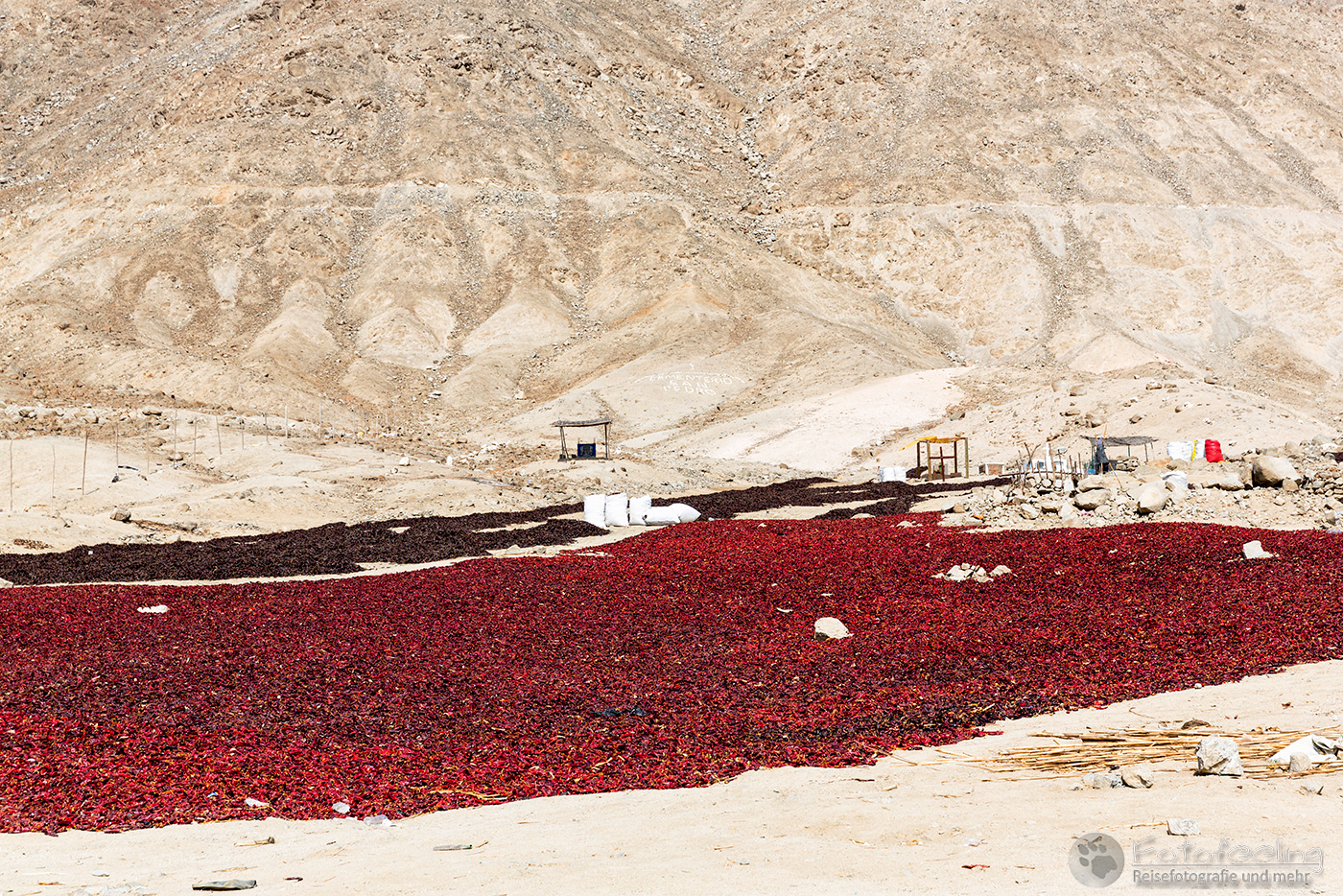 Etwas weiter in Richtung Norden kamen wir durch ein Obst- und Gemüseanbaugebiet. Hier wurde überall im Ort frisches Obst angeboten. Woanders war die Tomatenernte in vollem Gange und fleißige Arbeiter krochen gebückt über die langen Felder. Dann wechselte das Bild wieder und lange Küstengebieten bzw. Minengebiete beherrschten das Landschaftsbild.