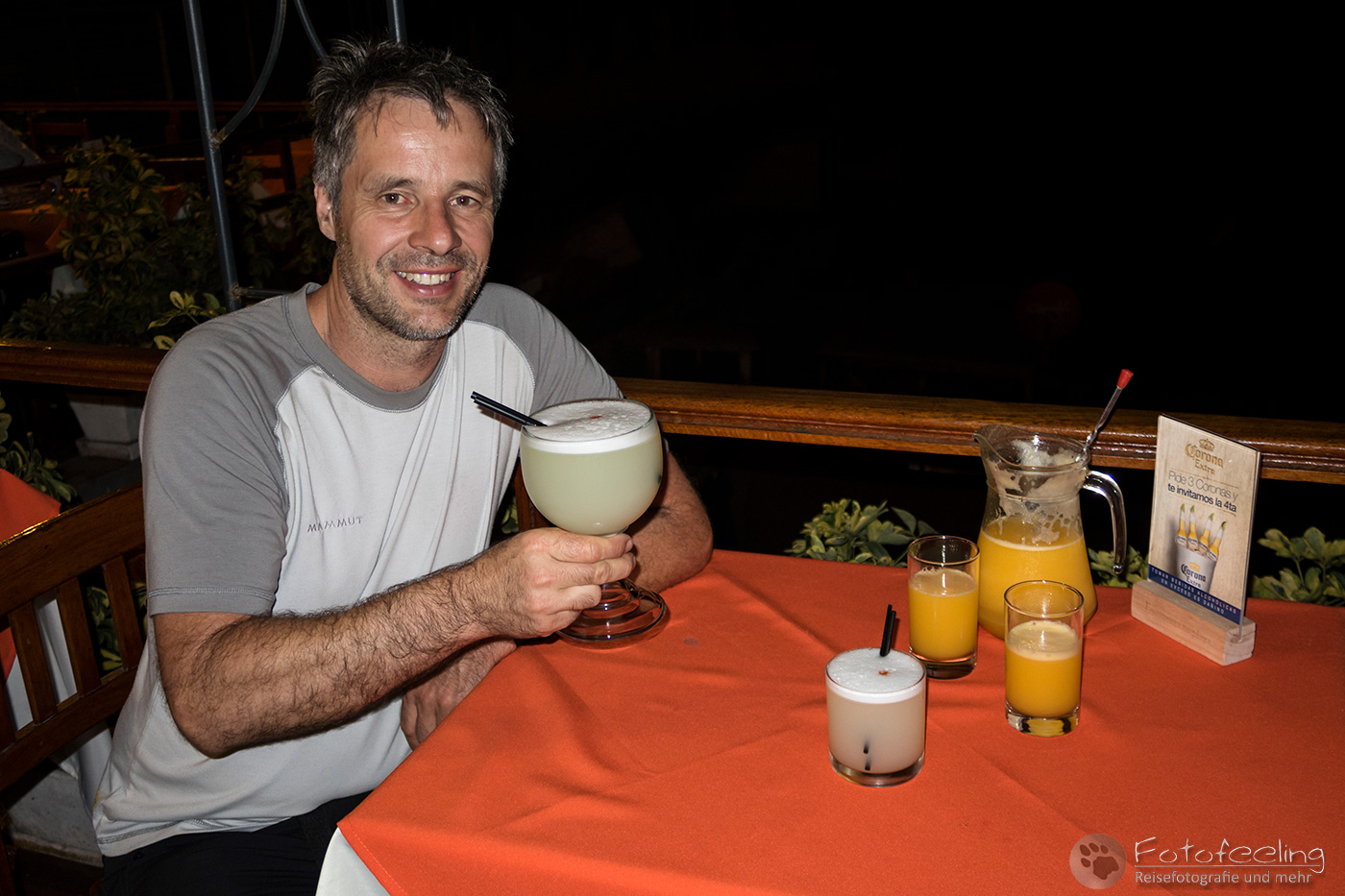 Nach diesem Fahrspaß durch den Schlamm saßen wir auf der Terrasse zusammen und quatschten mit den Engländern, die uns einen Pisco für den Fahrdienst spendierten. Es war ein sehr lustiger Nachmittag, unter anderem als einer der Engländer für Chris einen zweiten Pisco bestellte und rief: „one more Pisco for my son“.