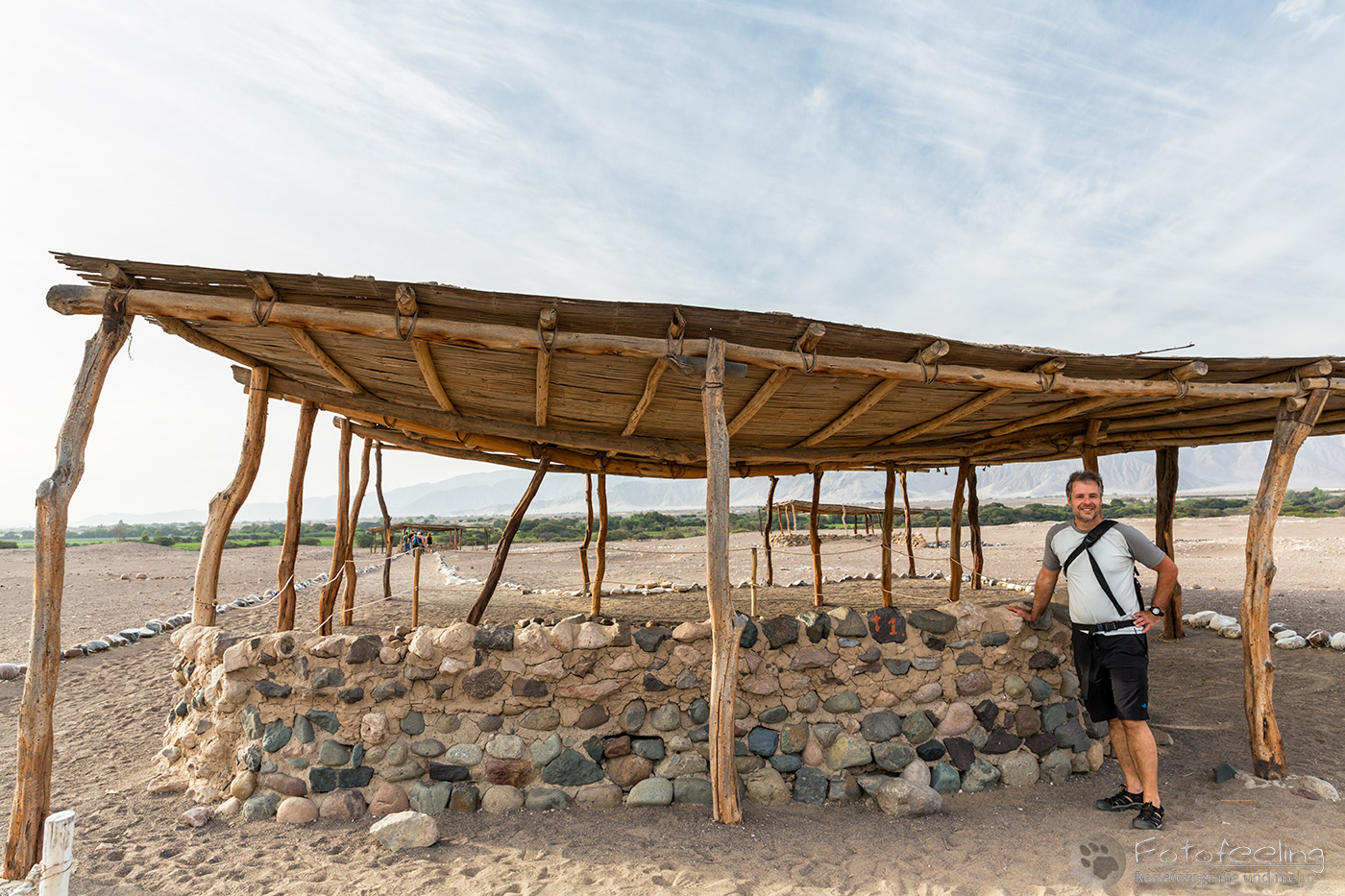 Danach fuhren wir nach Chan Chan, der ehemaligen Hauptstadt des präkolumbischen Chimú-Reiches, die sich an der Pazifikküste befindet. Chan Chan entstand etwa um 1300 und erstreckt sich noch heute über eine Fläche von 28 km². Sie war vermutlich die größte Stadt der damaligen Zeit auf dem südamerikanischen Kontinent und eine der größten der Welt, die aus Lehm errichtet wurde. Zu ihrer Blütezeit beherbergte sie etwa 60.000 Einwohner und hatte ein ansehnliches Vermögen an Gold, Silber und keramischen Kunstgegenständen angehäuft.