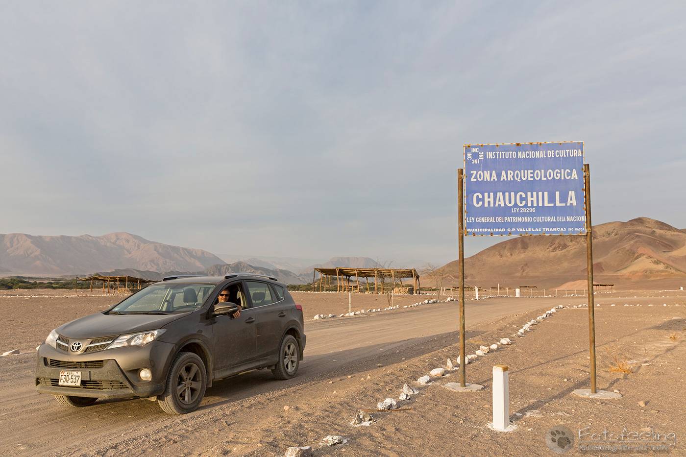 Nach einem guten Frühstück checkten wir morgens um 6.30 Uhr aus dem Hotel aus. An diesem Morgen bekamen wir unser Auto und Chris war schon ganz aufgeregt. Um ca. 7.00 Uhr fuhr unser Auto vor, ein brauner Toyota RAV 4, ein wirklich schönes Auto mit genug Platz für uns und unser Gepäck. Die Scheiben waren leicht getönt und unser Gepäck verschwand unter einer Abdeckung im Kofferraum. Am meisten begeisterte Chris jedoch, dass der Wagen überall Kratzer und kleine Dellen hatte und sogar die Windschutzscheibe wies einen Steinschlag auf. Ein neues Auto wäre uns bei dem Verkehr und den wilden südamerikanischen Fahrern ein Graus gewesen. So waren wir rundherum zufrieden. Die Übergabe durch National verlief professionell und schnell. Um 7.30 Uhr konnte unser Abenteuer Stadtverkehr Lima beginnen. Da Chris selbst ein guter und zügiger Fahrer ist, passte er sich schnell der Fahrweise der anderen an und wir kamen gut auf die Schnellstraße in Richtung Panamericana voran. Der Verkehr war trotzdem dicht und zäh. Wir kamen aber trotzdem gut voran und brauchten für 20 km Innenstadt und 20 km Vorstadt nur eine Stunde. Es war schon im Taxi faszinierend, aber wenn man selbst fährt bzw. mitfährt war es schon ein Spektakel. Die Busse fuhren wir die Henker. Sie überholten zum Teil mit Höchstgeschwindigkeit ohne zu bremsen, um gleich darauf rechts anzuhalten und die Spur dicht zu machen. Manchmal hielten sie auch gleich auf der mittleren Spur und so lernten wir schnell, dass die linke Spur die Schnellste und Beste ist. Aber auch die anderen Autofahrer waren unglaublich. Sie saßen einem fast im Kofferraum, überholten links und rechts – am besten gleich beides auf einmal, wenn es ginge – um Sekunden später abzubiegen. Gnadenlos drängelten sich die Fahrer in die eh schon dichten Spuren und wenn man selbst nicht dem Vordermann sehr dicht drauffuhr oder hupte, wurde man fast schon von der Fahrspur gedrängt. Vorrausschauende Fahrweise oder gar Rücksichtnahme gab es einfach nicht. Auch auf Fußgänger wurde keinerlei Rücksicht genommen und Verkehrsschilder waren nur ein Straßenbeiwerk oder Schmuckstück. So gab es innerorts Schilder mit 35 km/h doch nicht einmal sahen wir ein Auto oder einen Bus, der nur annähernd diese Geschwindigkeit fuhr. Außerhalb der Ortschaften galt für alle Fahrzeuge 90 km/h, aber auch daran hielt sich fast niemand. Die Durchschnittsgeschwindigkeit lag bei ca. 100-120 km/h und nach einer Gewöhnungsphase passten wir uns dem fließenden Verkehr an.