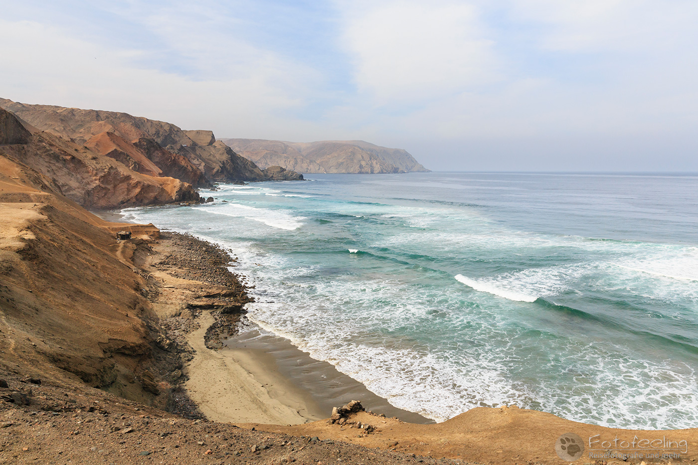 Nach einem guten Frühstück brachen wir an diesem Morgen um 7.00 Uhr auf. Es war wie fast jeden Morgen in Küstennähe neblig, feucht und kühl. Doch die Sonne ließ nicht lange auf sich warten und kämpfte sich um 9.00 Uhr durch den Nebel. Anfangs war die Straße noch zweispurig aber schon 30 km nach Trujillo wurde sie wieder einspurig. Dafür passierten wir wieder eine Mautstelle nach der anderen. Die Landschaft war karg und zog sich an der Küste entlang.