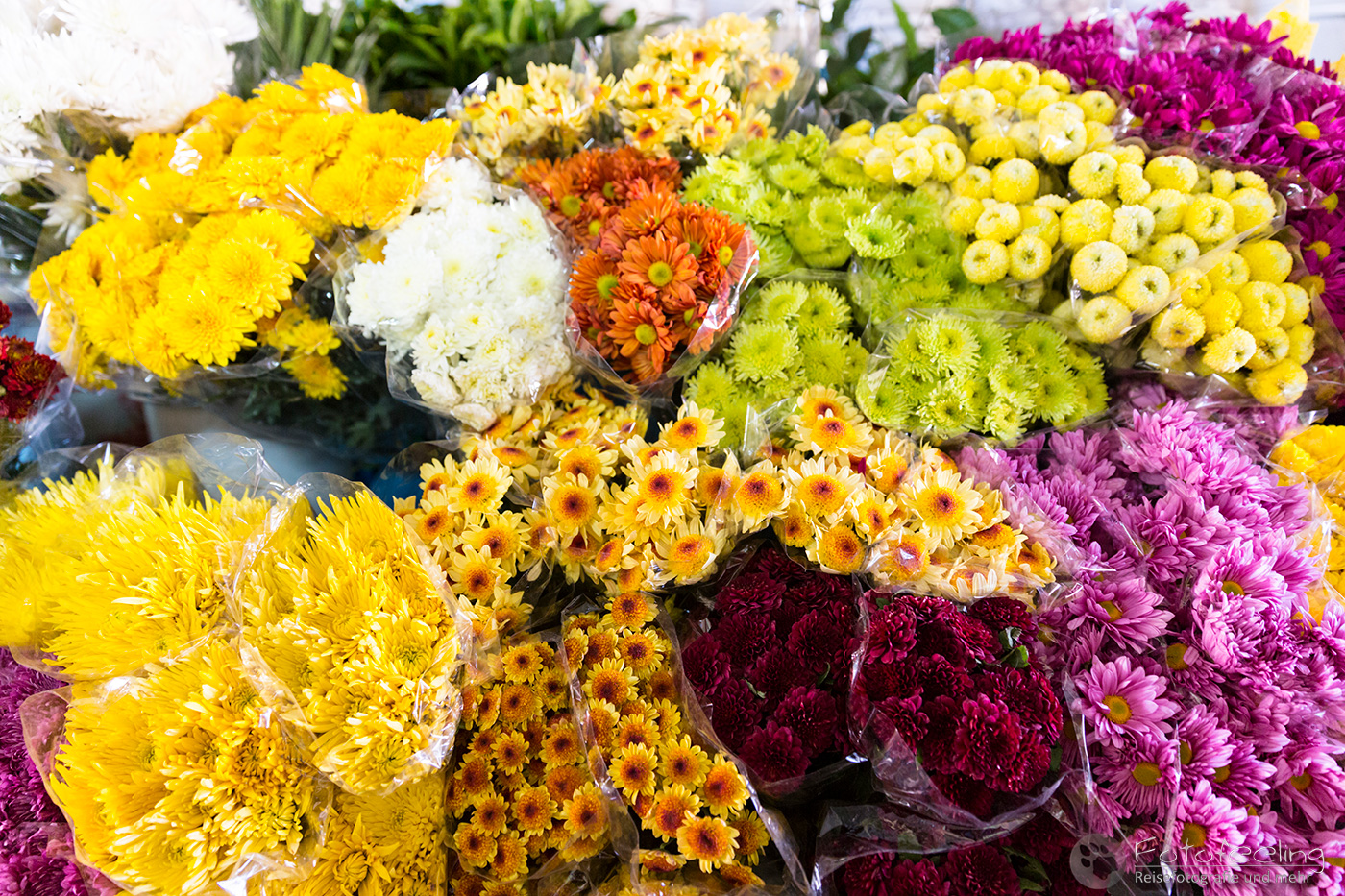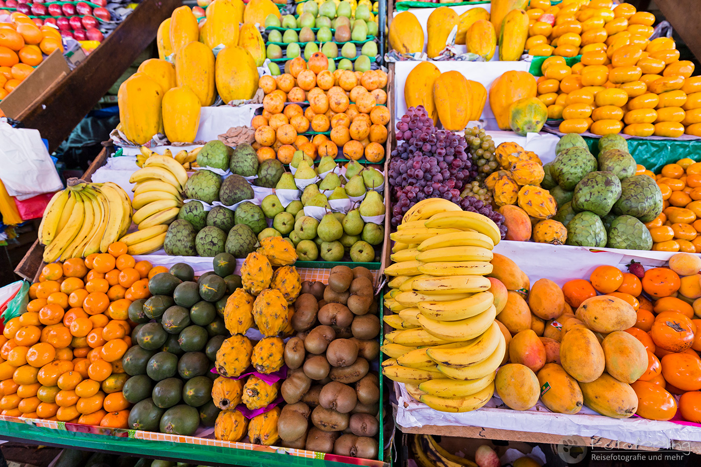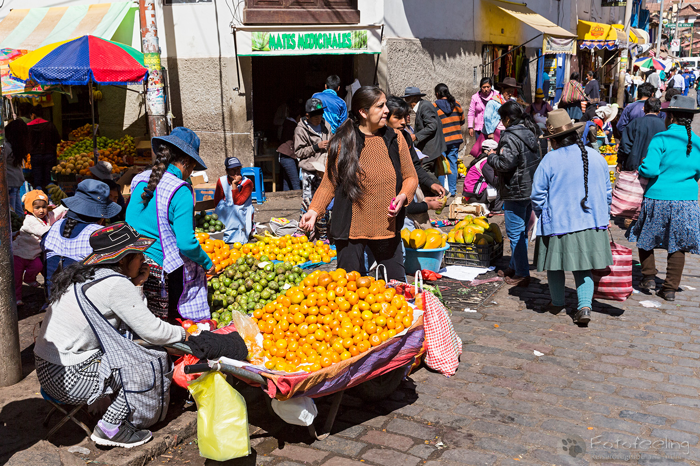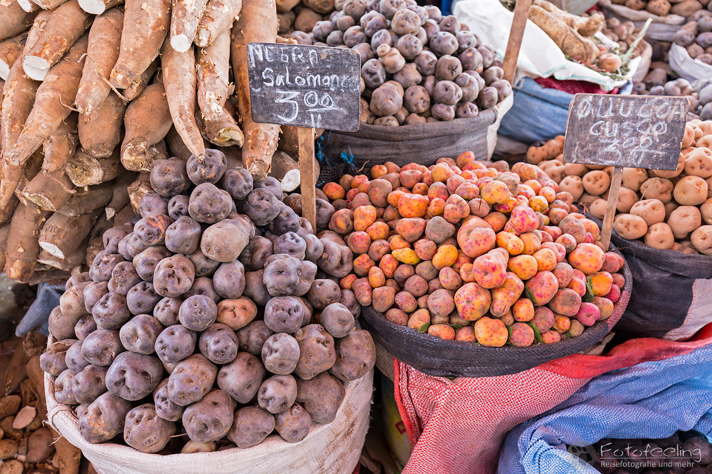 Wir wanderten weiter durch die Stadt und gelangten zum Mercado Central de San Pedro. Hierher gehen vor allem die Einheimischen und man bekommt wirklich alles, von frischen Fleischwaren, Brot, Obst und Gemüse, Klamotten, Blumen und vieles mehr. Selbst frisch gebratene Meerschweinchen wurden angeboten. Es war faszinierend, diese Vielfalt zu betrachten und auch die verschiedenen Gerüche, wobei ich nicht durch die Fleischstände gehen konnte, denn hier roch es verstärkt nach frischem Blut und das ging auch am späten Vormittag noch gar nicht. Christian hatte damit gar keine Probleme und schlenderte sichtlich angetan durch die Stände.