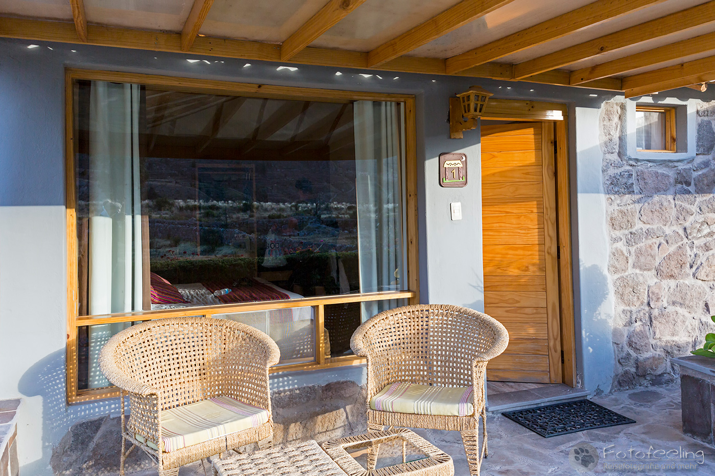 Da wir nach dem langen Fahrtag nicht mehr umherlaufen wollten, aßen wir in unserem Hotel, dem Restaurante Las Bovedas. Das Essen war gut, aber etwas fad gewürzt. Dafür war das Personal absolut nett und zuvorkommend. Wir bekamen sogar unseren Begrüßungsdrink - einen Pisco Sour aus der Bar - an den Tisch geliefert. Unser Kellner sprach sehr gut Englisch, aber er war wohl der einzige, denn als eine größere amerikanische Reisegruppe mit 45 Personen ankam, war er mitsamt unserer Piscos wie vom Erdboden verschwunden. Wir machten schon Witze und sahen ihn gedanklich, unsere Piscos schlürfend am Pool sitzen… Jedenfalls tauchte er kurz darauf wieder auf und erklärte uns die Situation. Als die Amerikaner im Restaurant einfielen, waren wir zum Glück schon fertig.