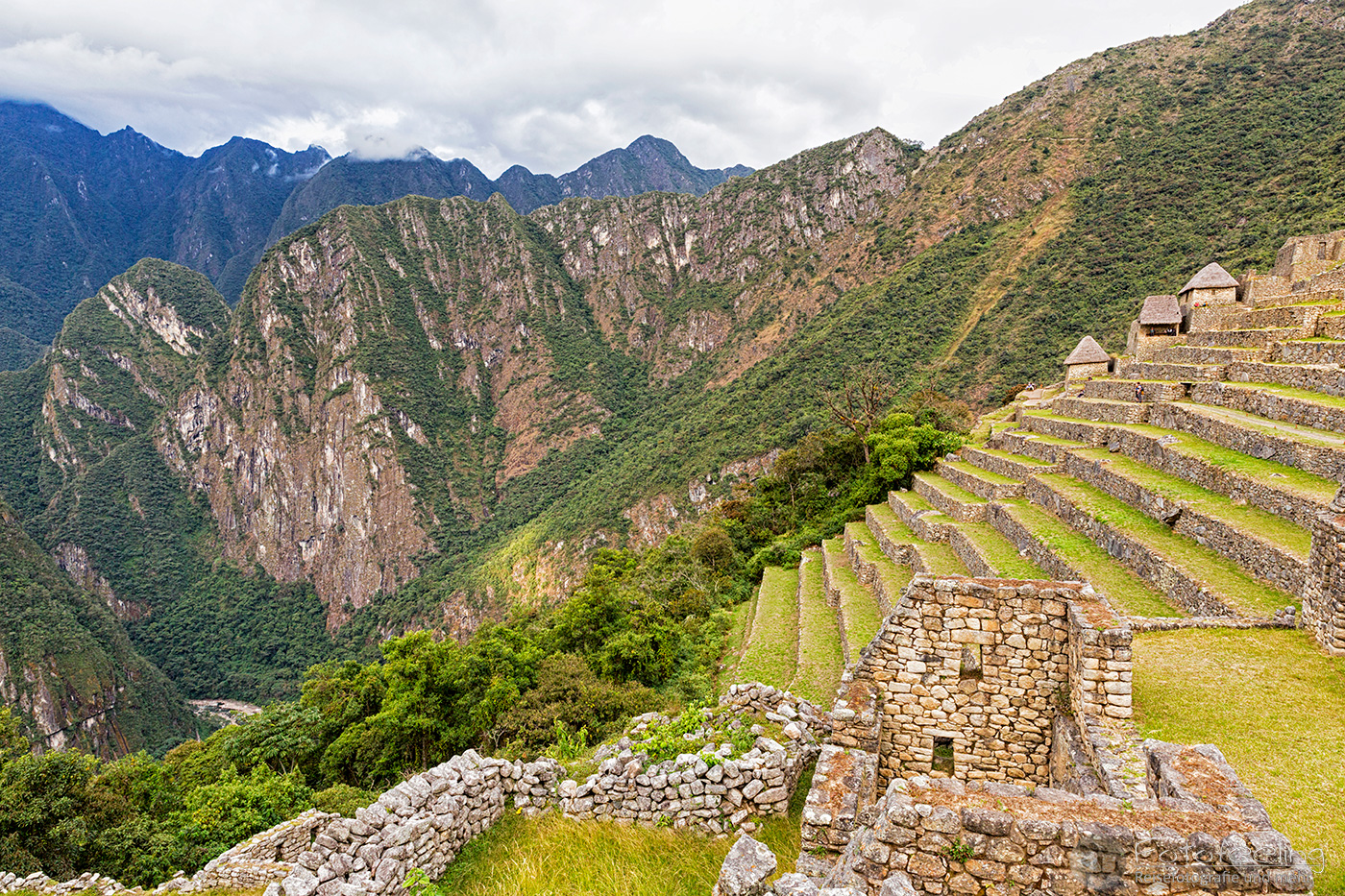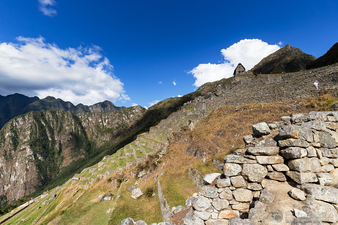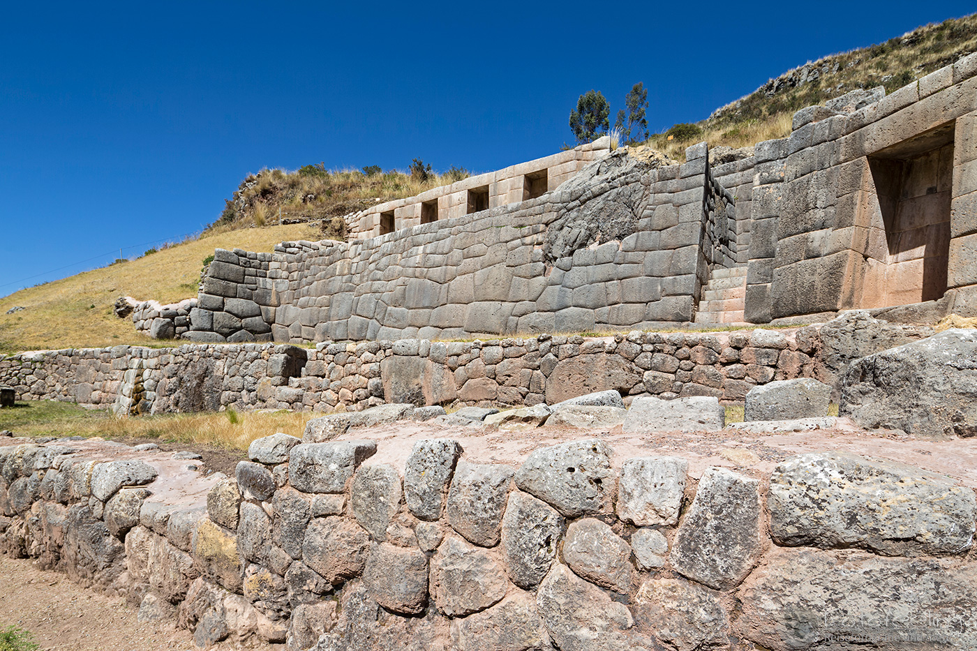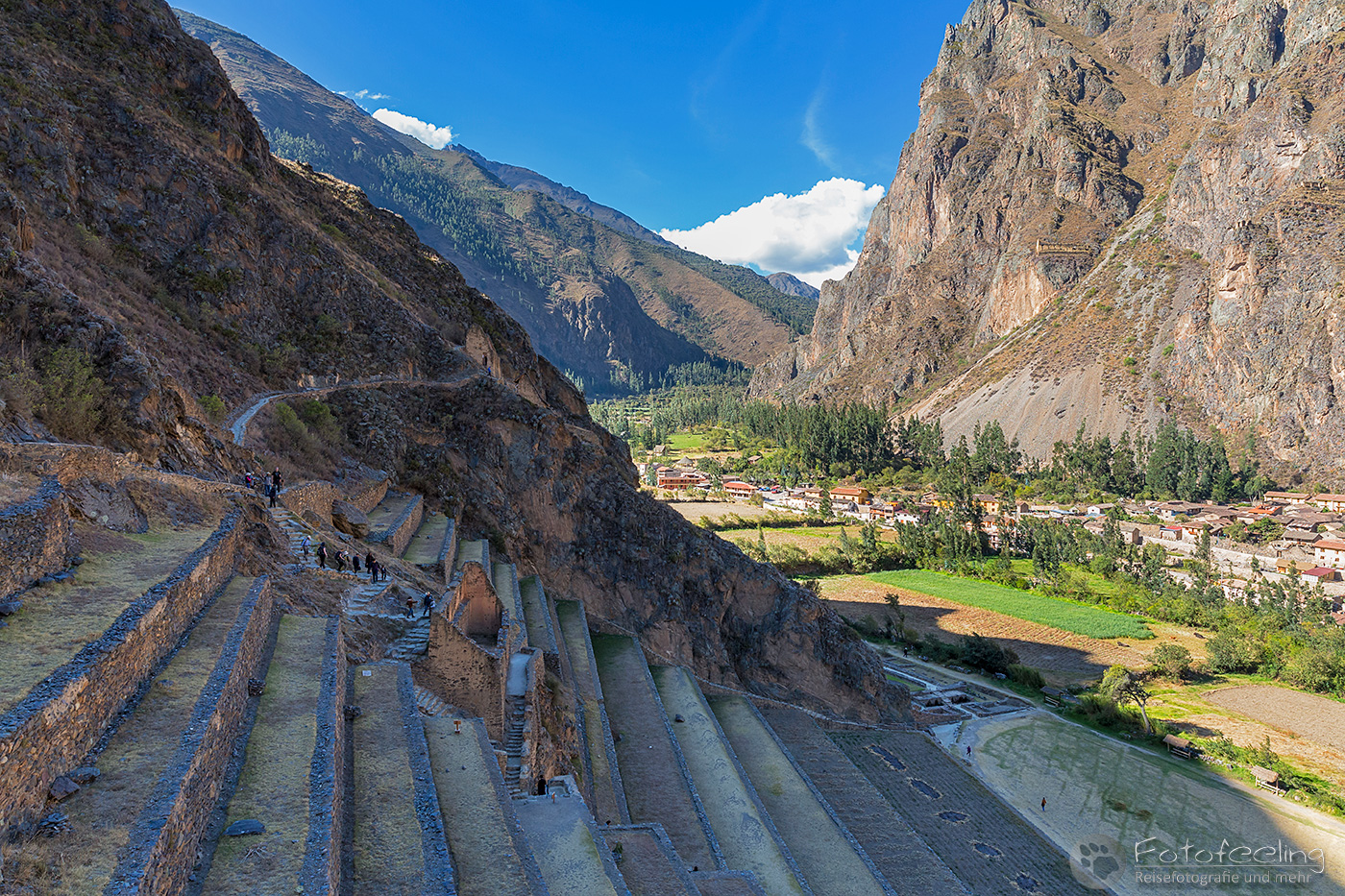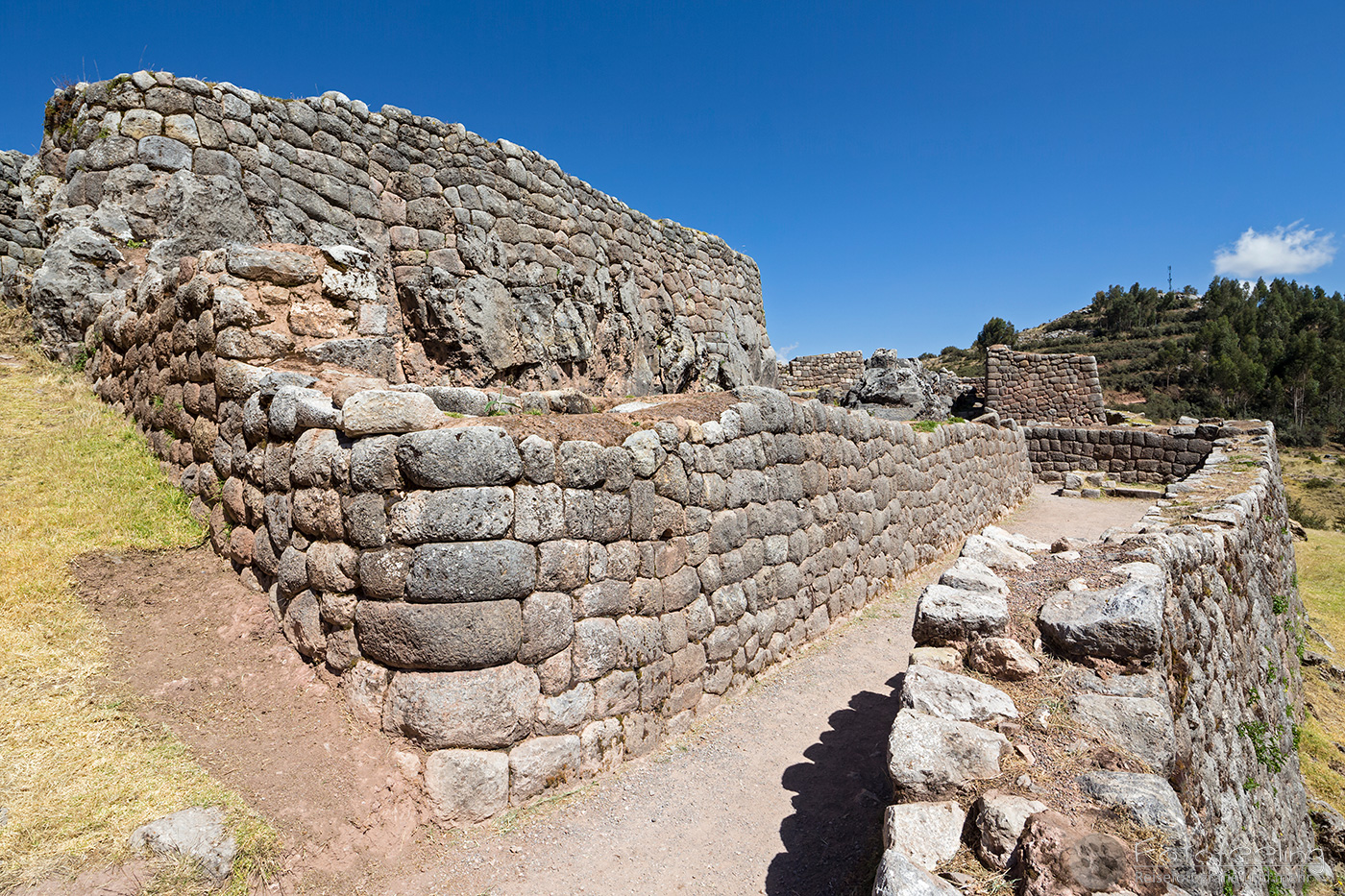Zuerst erkundeten wir die obere Ebene, in der der Torreón über den Felsen thront mit dem Sector del Castillo. Von hier oben hatten wir eine eindrucksvolle Aussicht in die umliegenden Täler. Danach eroberten wir die untere Ebene mit ihren verwunschenen Rundhütten, in deren Mitte Lamas grasten. Begeistert wanderten wir bis zum Templo Mayor und unsere Kameras glühten. Noch immer waren wir alleine und erst nach und nach kamen einige Touristengruppen. Hatten wir noch Narrenfreiheit, wurden jetzt die Wächter aktiver und wiesen die Menschen immer wieder zurück auf die Wege.
