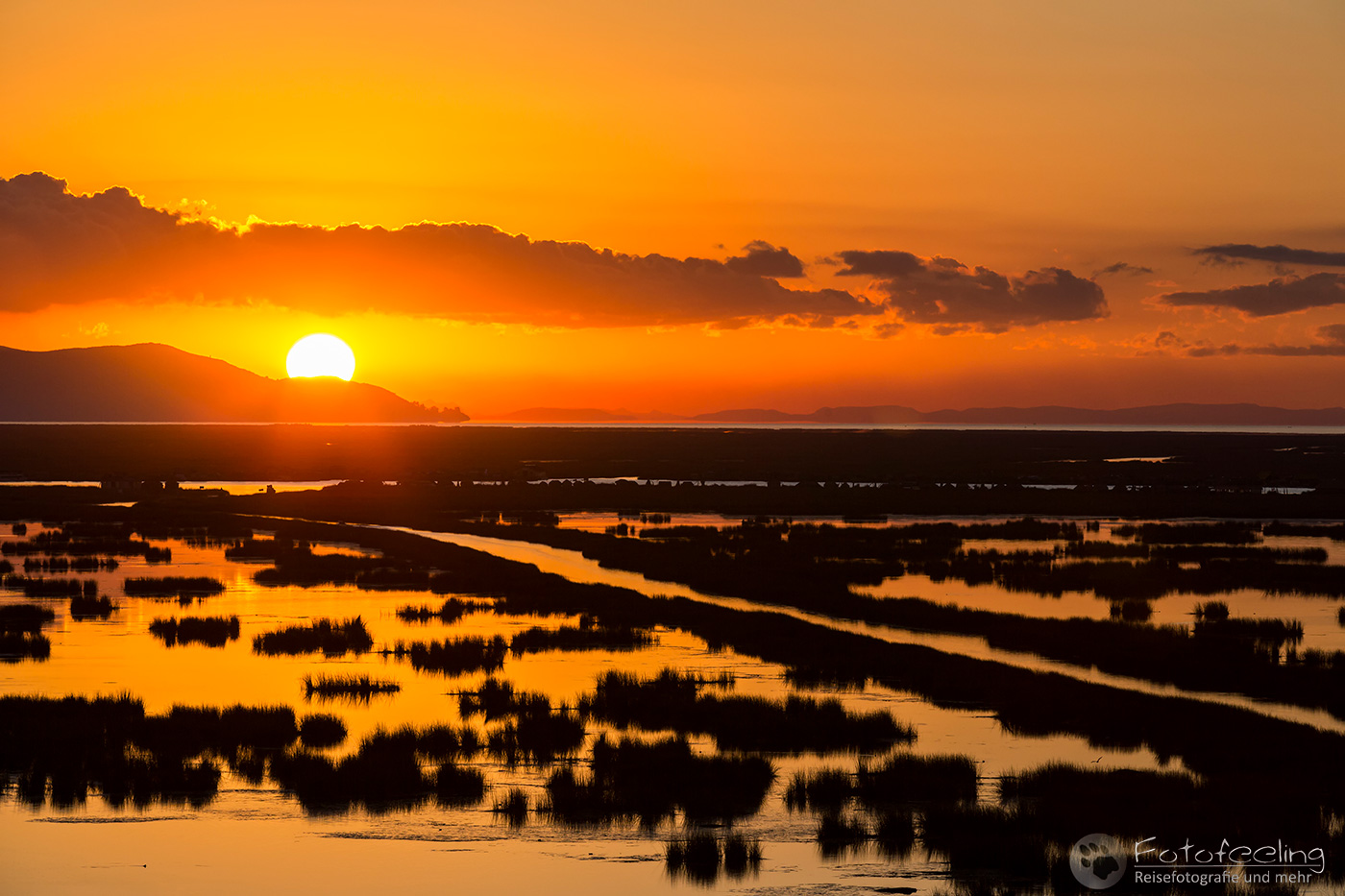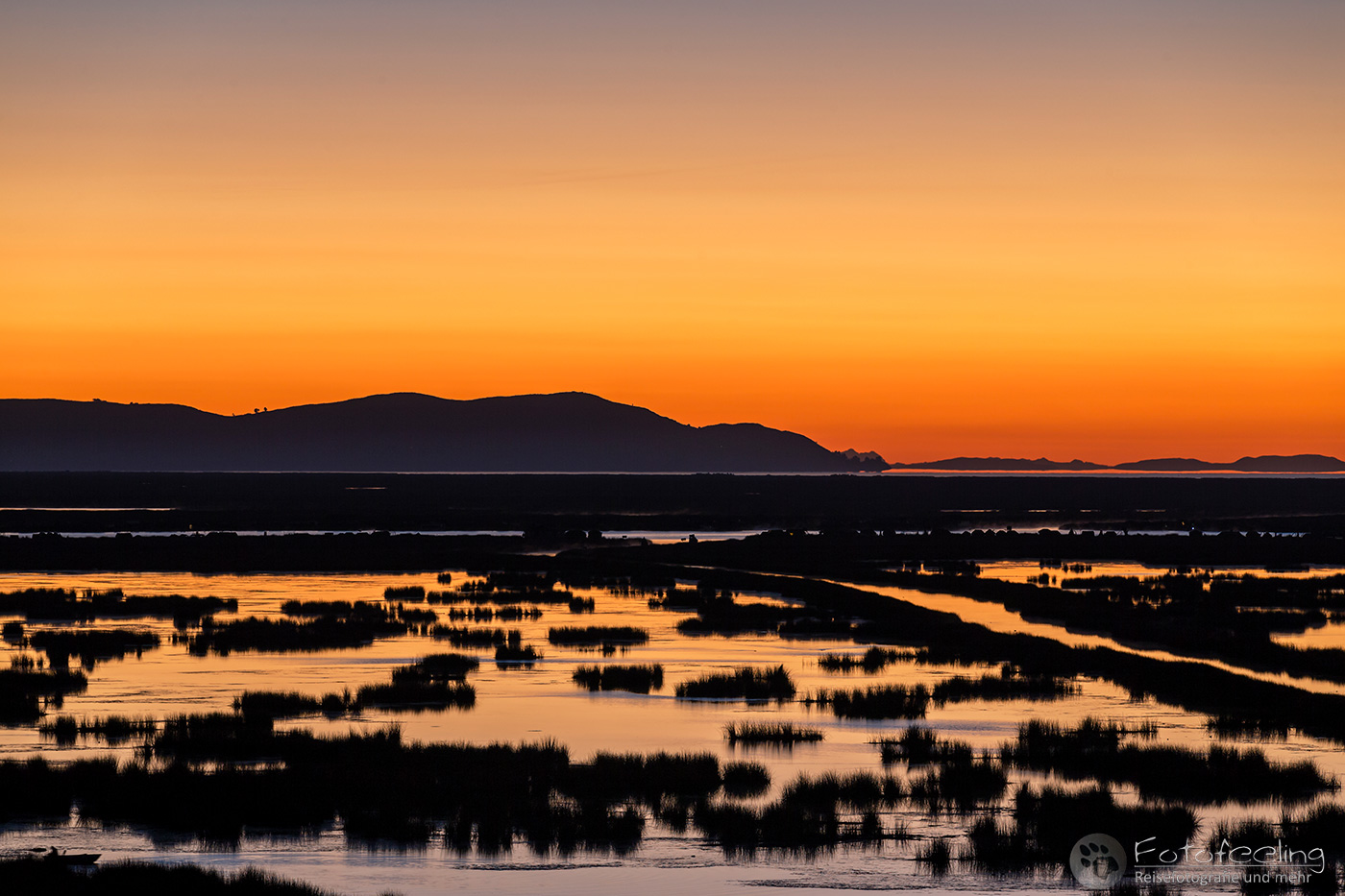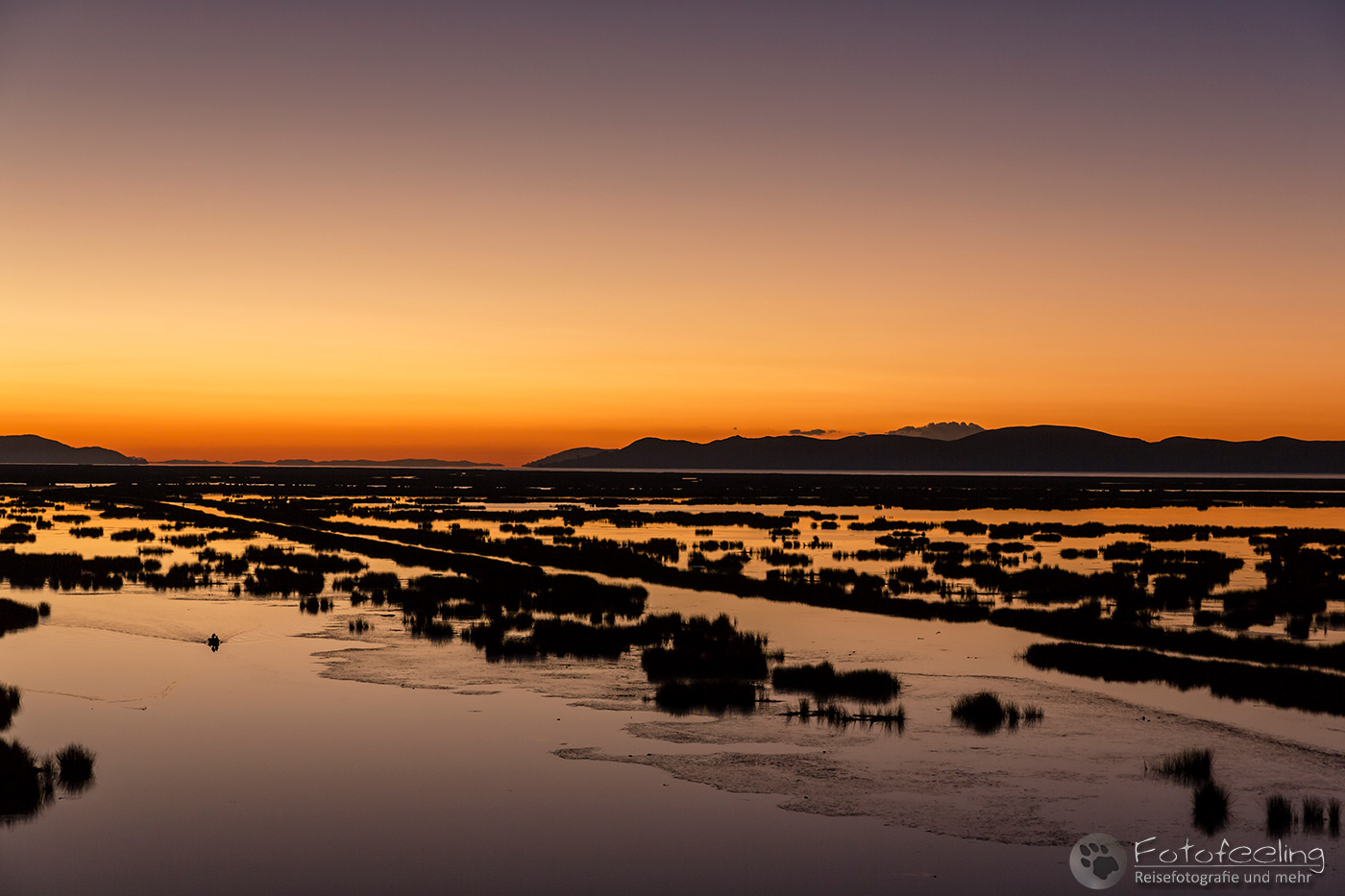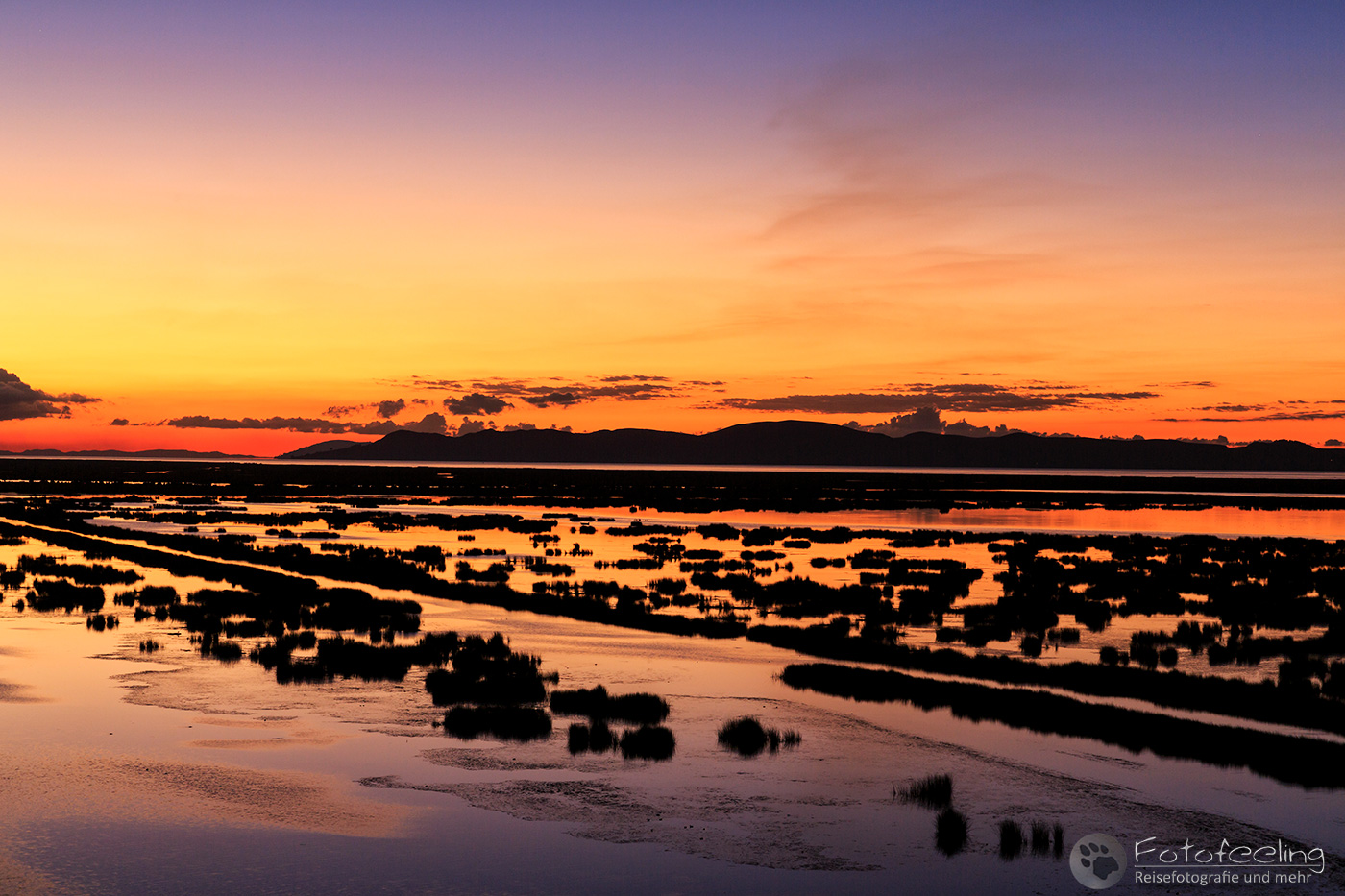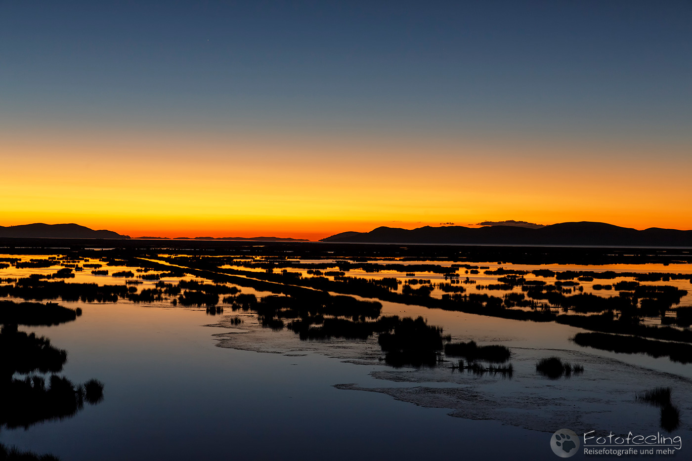Sehr früh starteten wir an diesem Morgen, denn wir wollten noch einmal zu der Lagune fahren und die Otter beobachten. Nebel zog über das Wasser und auch an diesem Morgen war es empfindlich kalt, so dass wir unsere Jacken enger um uns zogen. Dafür durften wir einen super schönen farbenfrohen Sonnenaufgang erleben.