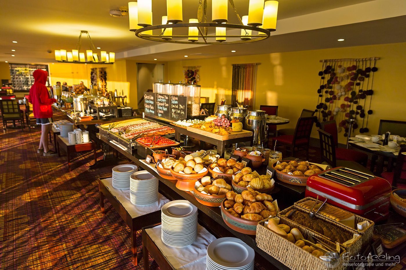 In den großen Betten hatten wir hervorragend geschlafen. Das Frühstücksbuffet war abwechslungsreich und die Auswahl sehr gut.
