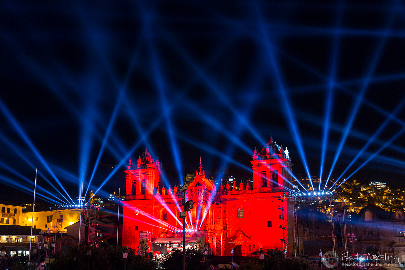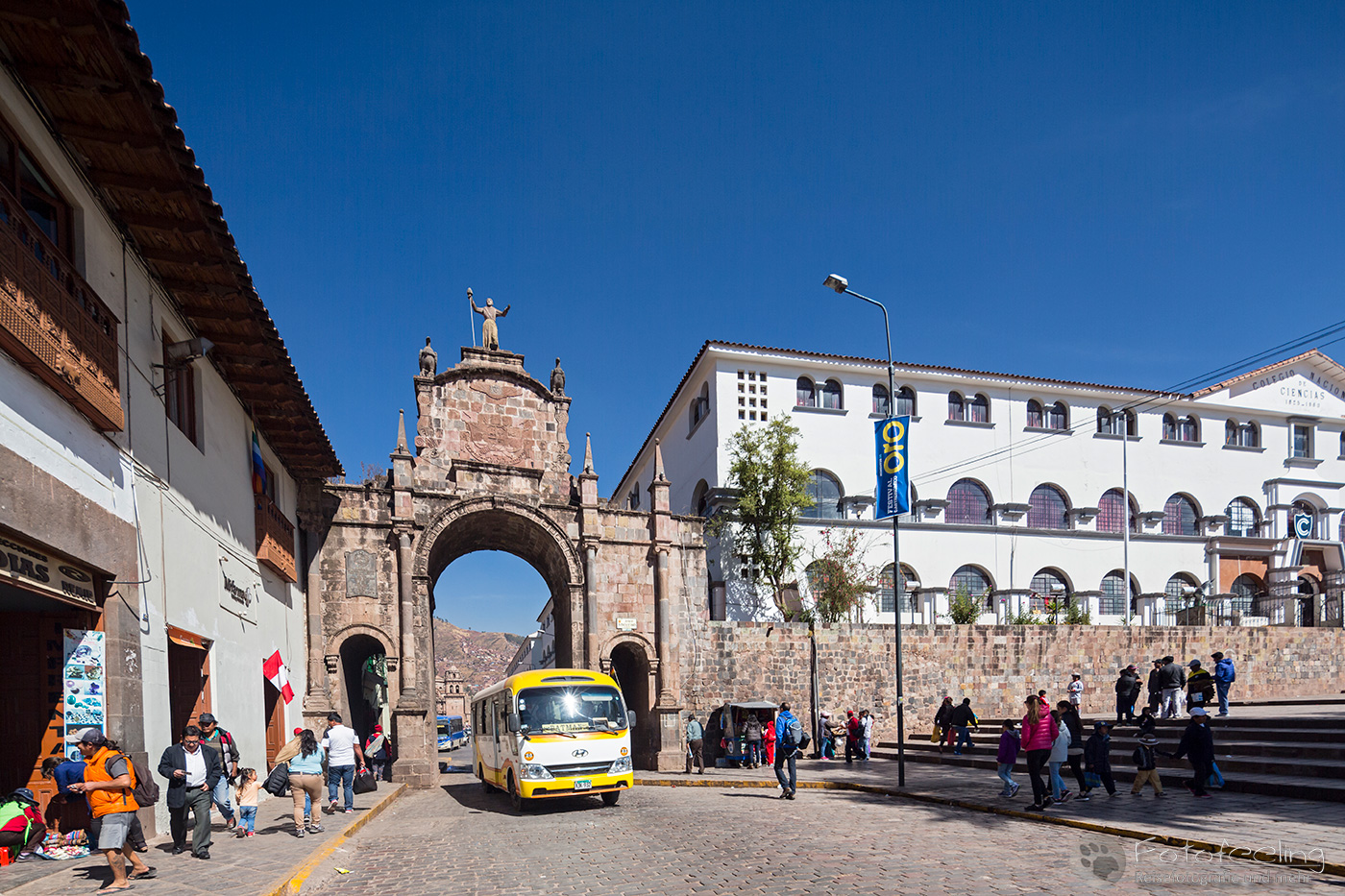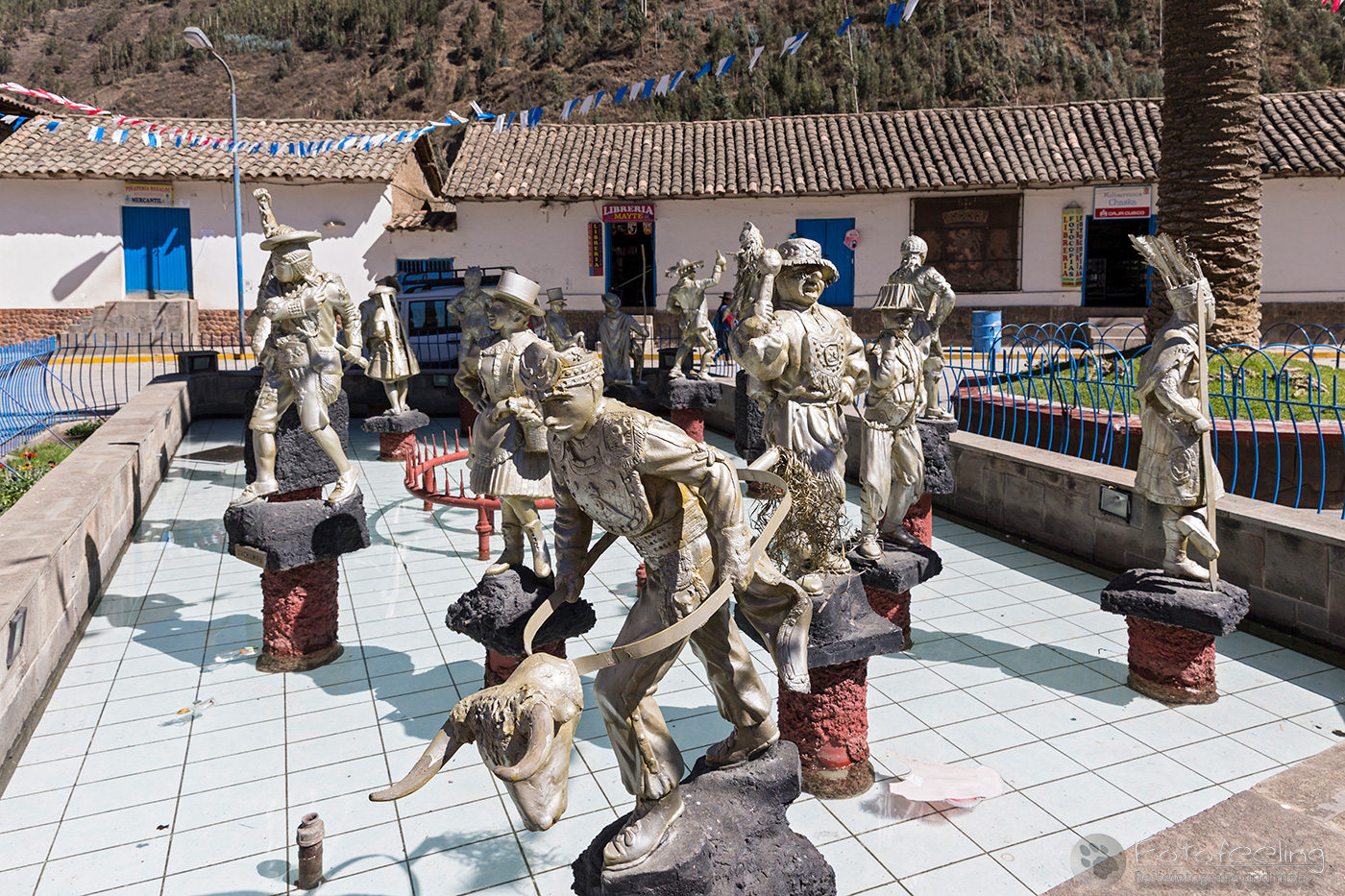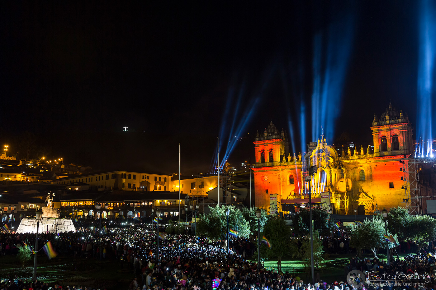 Mitten auf dem Platz steht ein schöner Brunnen, der leider im Zuge der Cusco Feierlichkeiten „eingemauert“ war. Auf ihm thront die Inka-Statue „Pachacutec“. Er war der 9. und einer der einflussreichsten Inka-Herrscher aller Zeiten. Cusco wurde nach seinen Plänen entworfen und das Zentrum der Stadt in Form eines Pumas angelegt.