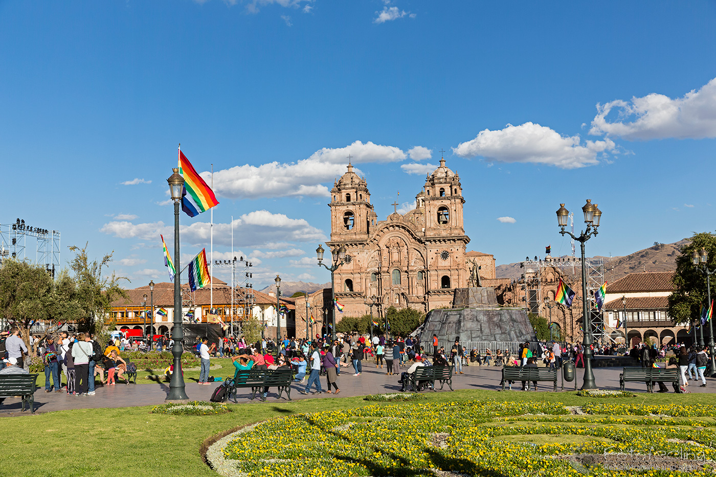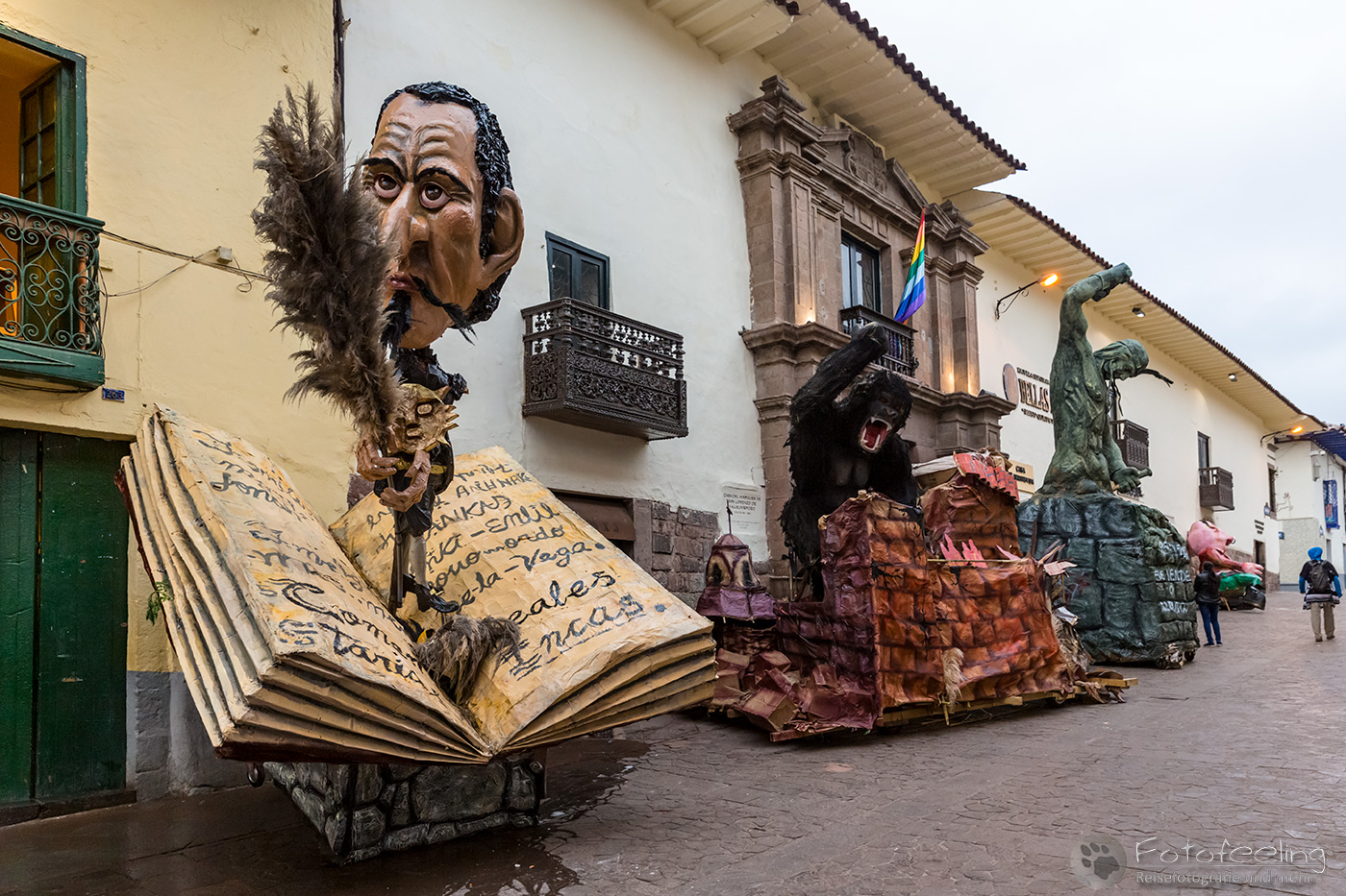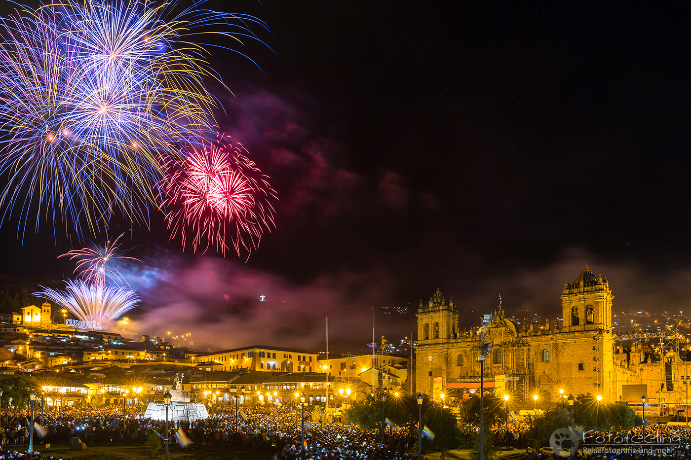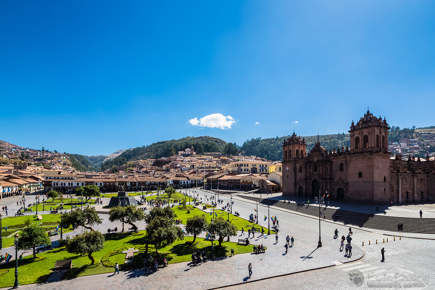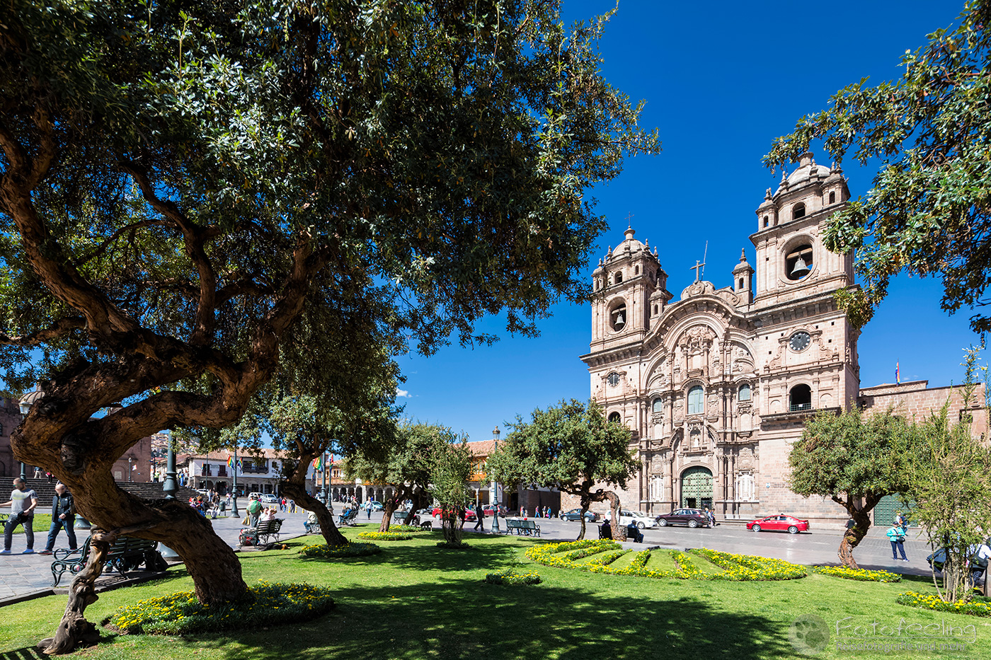 Mitten auf dem Platz steht ein schöner Brunnen, der leider im Zuge der Cusco Feierlichkeiten „eingemauert“ war. Auf ihm thront die Inka-Statue „Pachacutec“. Er war der 9. und einer der einflussreichsten Inka-Herrscher aller Zeiten. Cusco wurde nach seinen Plänen entworfen und das Zentrum der Stadt in Form eines Pumas angelegt.