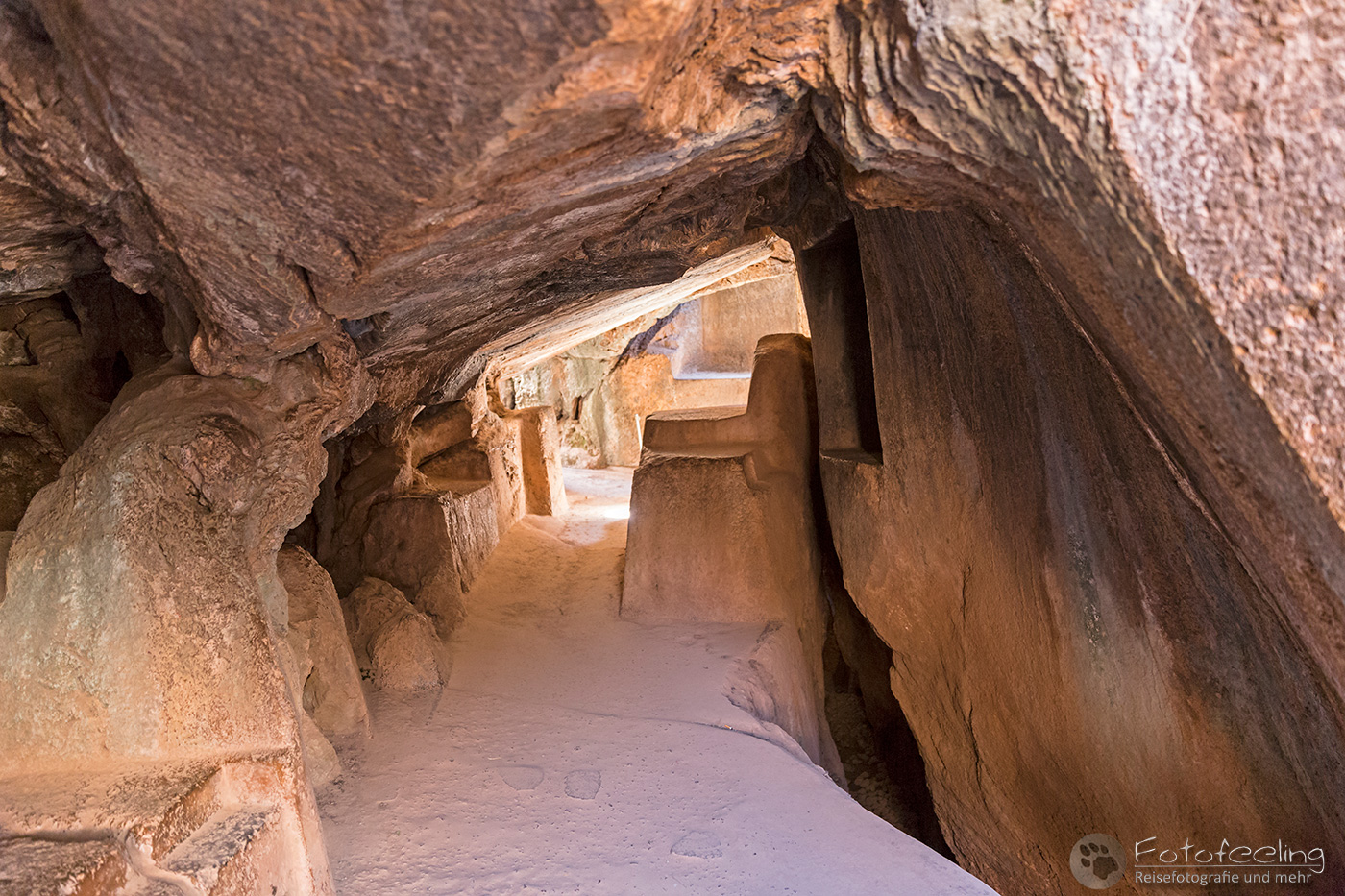 Dieser Ort war eindeutig magisch und strahlte eine mystische Energie aus. Dann endlich standen wir direkt vor der mächtigen 20 Meter hohen Mauer aus polierten Kalk- und Sandstein. Darin befindet sich die 600 m lange und 120 m breite Ruinenanlage. Hinein kommt man nur über drei extrem schmale und somit gut zu verteidigende tunnelartige Eingänge. Hier musste jeder Ankömmling, egal ob Freund oder Feind, einzeln hinauf.