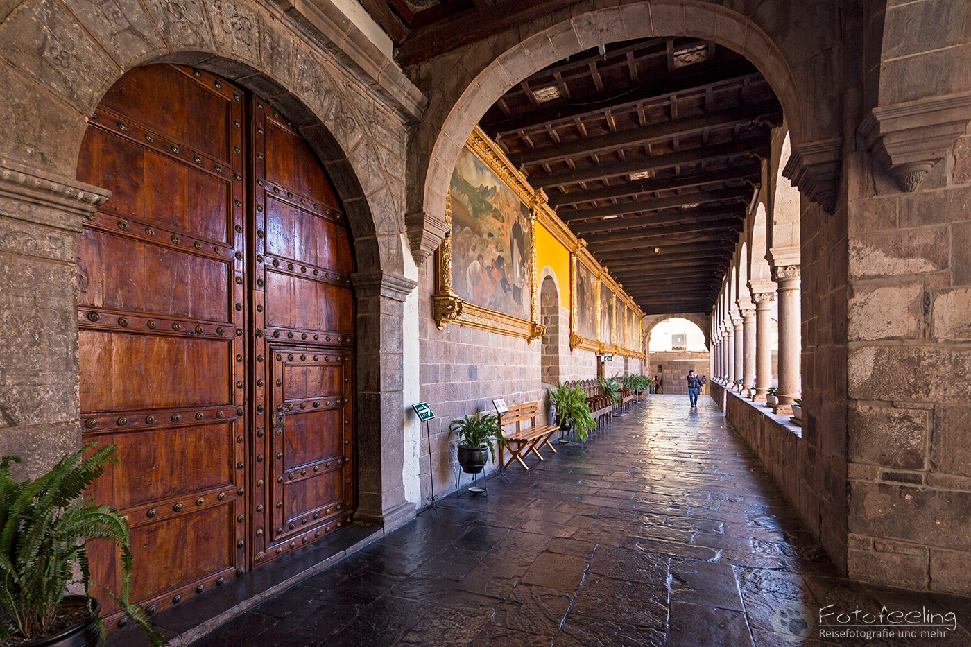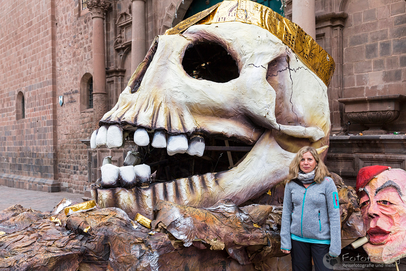 Am Morgen wanderten wir wieder durch die Stadt bis zum Museum-Tempel Korikancha, dem Sonnentempel der Inka. Hier wurden einst religiöse Zeremonien und Opfergaben durchgeführt. Hier feierten die Inka auch das alljährliche Fest zu Ehren der Sonne, das sogenannte „Inti Raymi“. Dieses Fest findet ja auch heute noch am 24.06. statt, doch wir hatten es um ein paar Tage verpasst und nur den Auftakt vor unserem Machu Pichu-Besuch mitbekommen.
