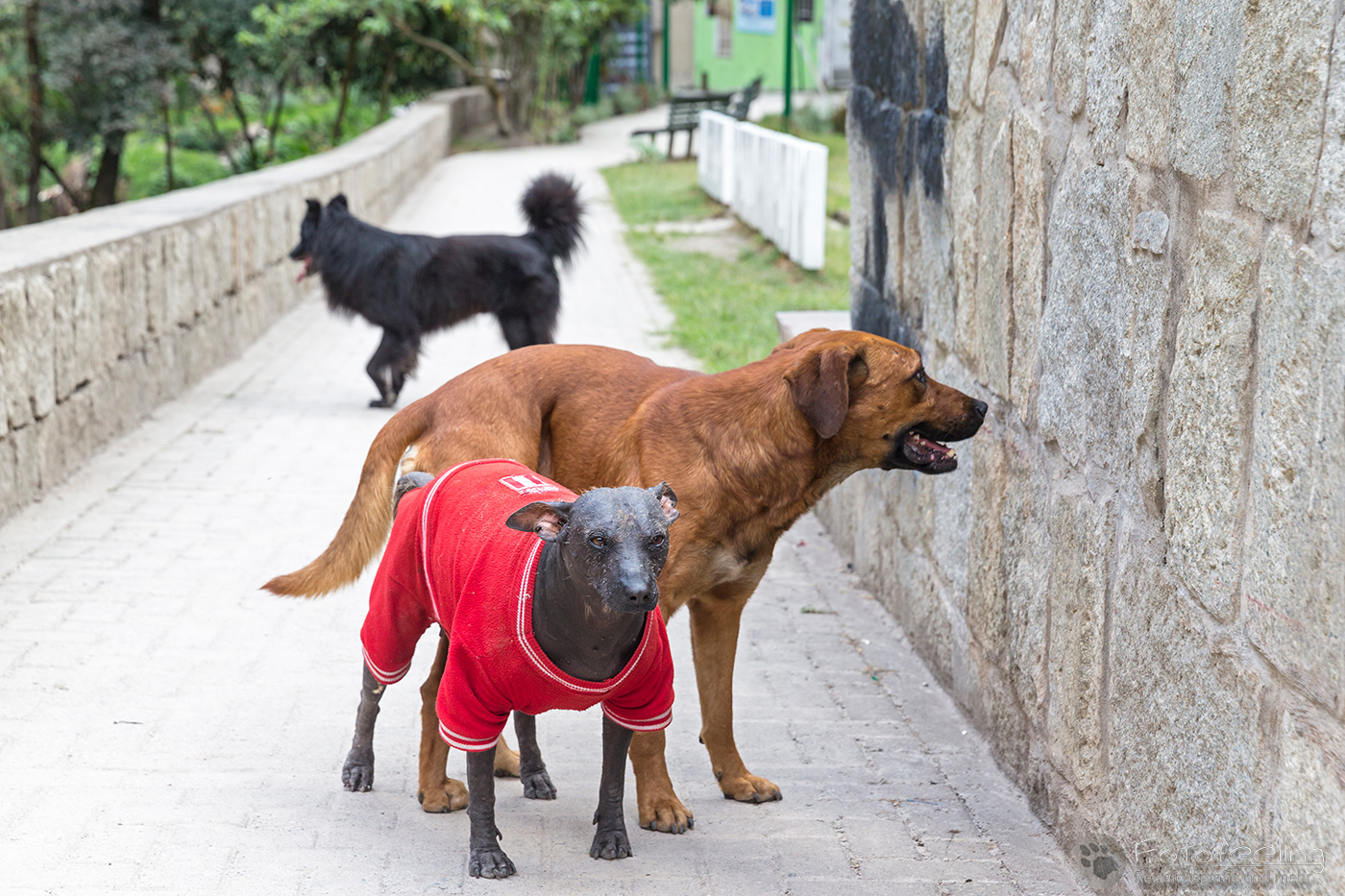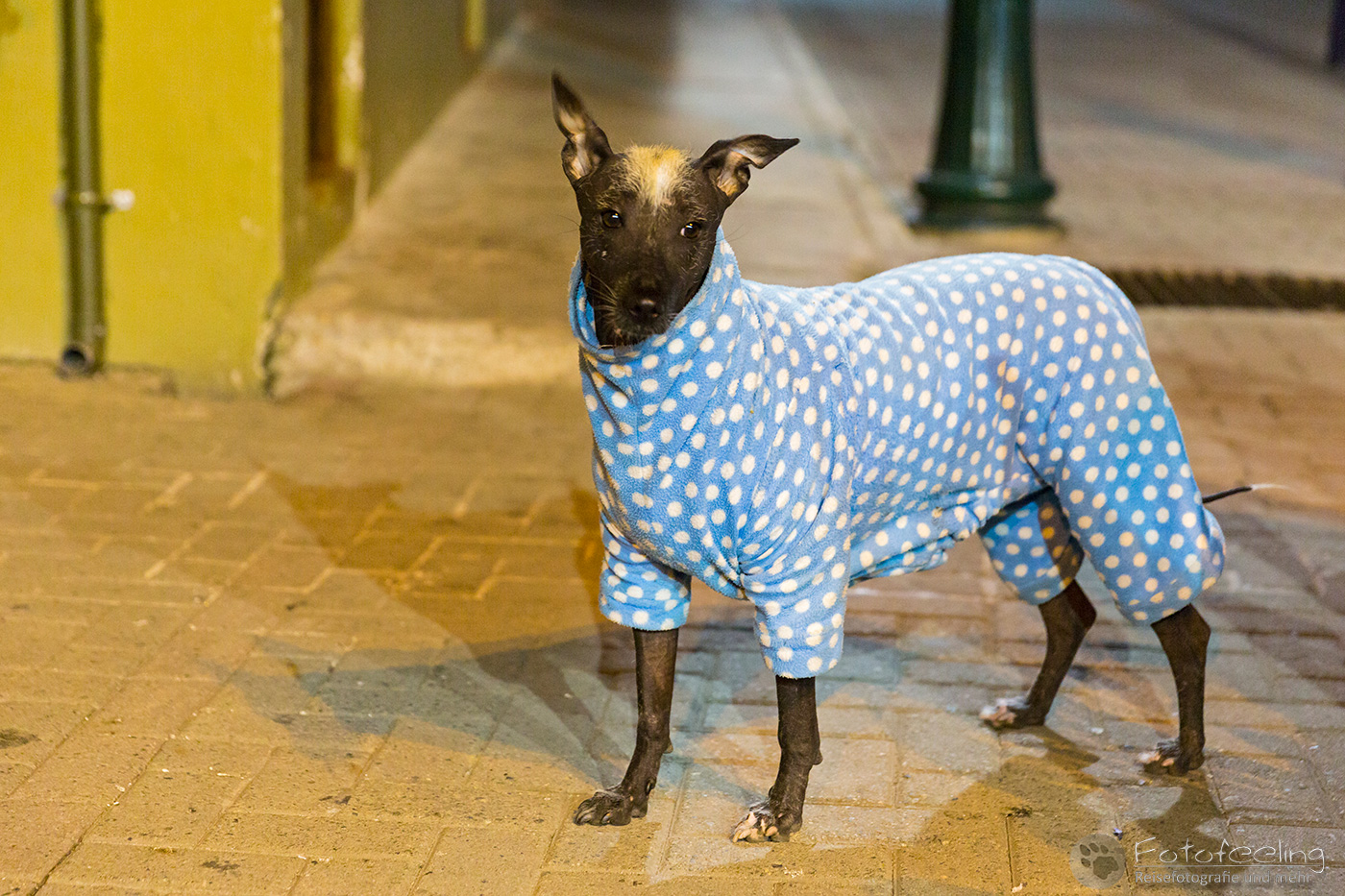 Auf dem Gelände sahen wir auch unseren ersten Peruanischen Nackthund, den wir fälschlicherweise für einen an Räude erkrankten Hund hielten, da er nur ein paar Haarbüschel am Kopf und am Schwanz hat. Die Rasse soll sehr alt sein und einer spontanen Mutation entstammen. Die Hunde, gehören heute zum nationalen Kulturgut in Peru. Sie galten wohl schon vor 1000 Jahren als besondere Haustiere und wurden wegen der ihnen zugesprochenen Heilwirkungen gegen Krankheiten verehrt und geschätzt. Wir hatten so einen Hund jedenfalls vorher noch nie gesehen und fanden ihn sehr interessant.