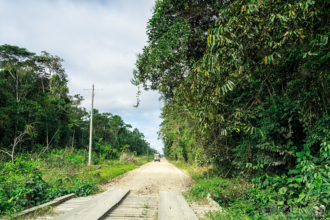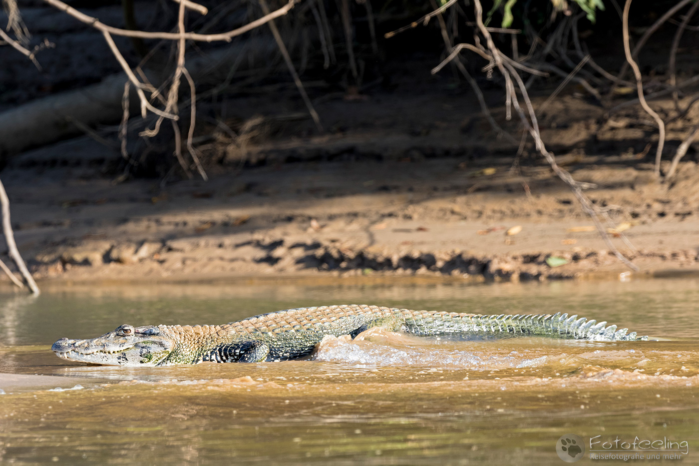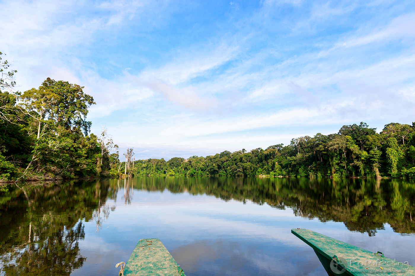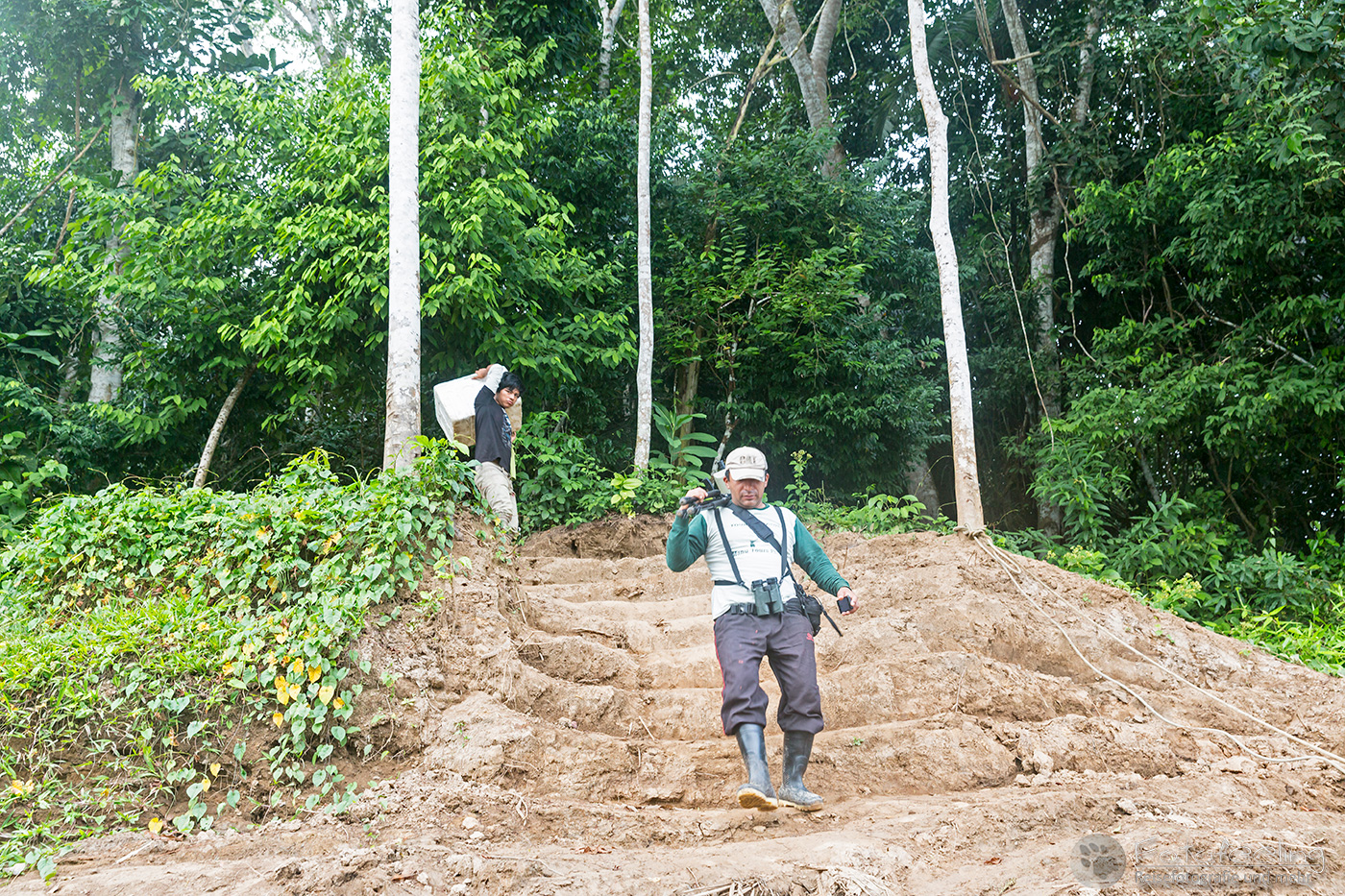 Wir fuhren in die Reservatszone des Manu Nationalparks. Hier erreichten wir die Mündung des Rio Manu und nach kurzer Fahrt die Parkstation in Limonal, wo wir uns in ein Buch eintragen mussten und unser Permit kontrolliert wurde. Wir bekamen einen fetzigen Stempel in unsere Pässe. Ich entschied mich für einen Otter und Chris natürlich für einen Jaguar. Weiter ging die Fahrt flussaufwärts in den Manu Nationalpark hinein. Wieder war es megaanstrengend, zumal es so kalt war, wie man es sich vom Regenwald eigentlich nicht vorstellen kann. Aber wir hatten etwas Pech, denn uns begleitete eine Kaltfront. Doch zum Glück sahen wir auch ein paar Tiere wie sehr scheue Capybaras (Wasserschweine), die sogleich panisch im Busch verschwanden, ein paar Kaimane (Caiman crocodylus) am Strand, einige kleine Schildkröten und ein paar Vögel. Carlos entdeckte einen Jaguarplatz, an dem vor kurzem noch eines dieser prächtigen Tiere geschlafen hatte, aber leider sahen wir nicht einmal ein Haar von dem scheuen Jäger.