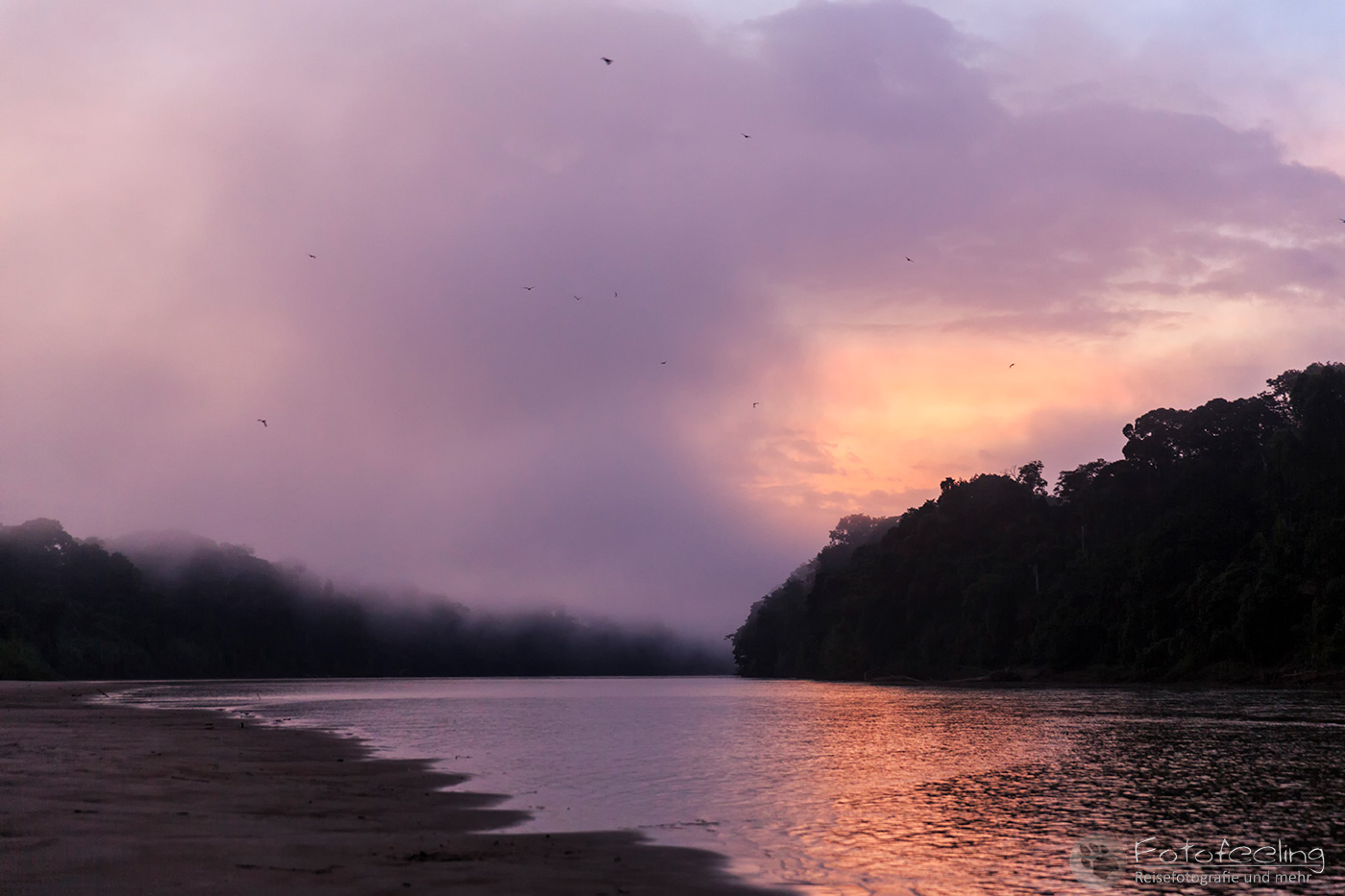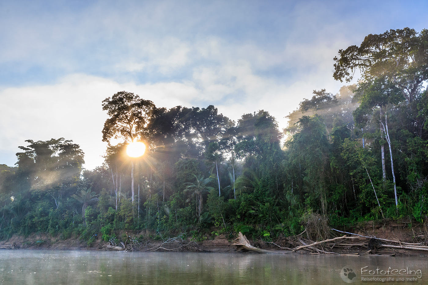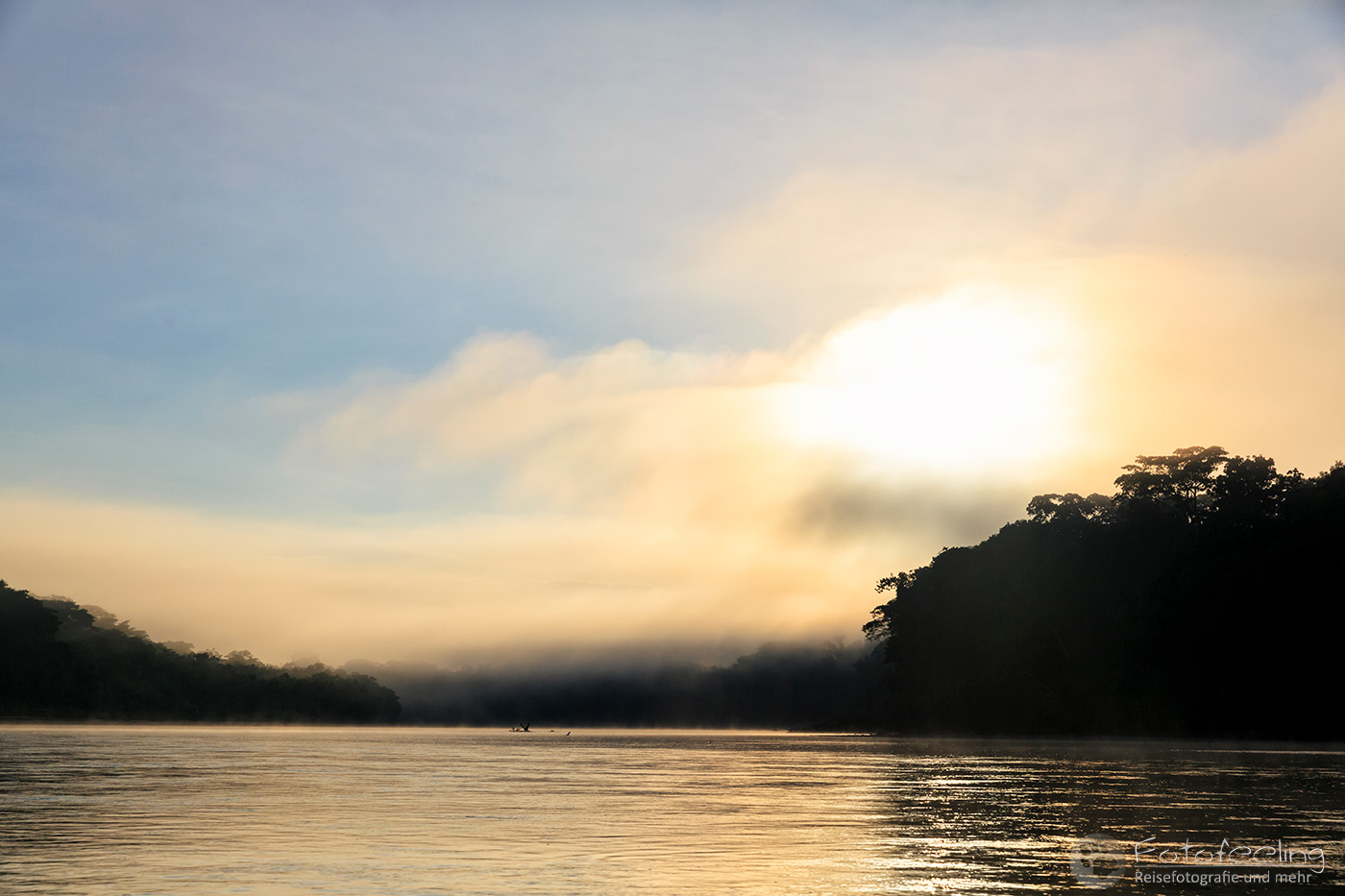 Unser Schlafgemach in der Hummingbird Lodge Frühstück ist fertig "Luxusvillen" der Hummingbird Lodge Sonnenaufgang auf dem Río Madre de Dios, Manu Nationalpark Nebel über dem Río Madre de Dios, Manu Nationalpark Die Sonne kämpft sich durch den Nebel, Río Madre de Dios, Manu Nationalpark Río Madre de Dios, Manu Nationalpark Río Madre de Dios, Manu Nationalpark