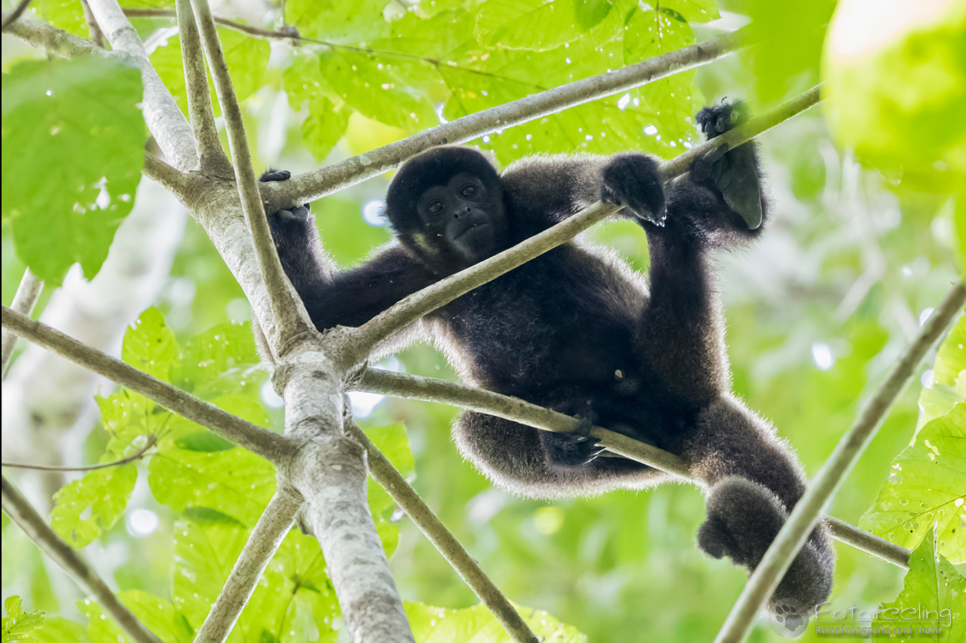 Etwas später entdeckten wir noch eine frische Tapir-Spur, aber leider war auch der Verursacher nirgends zu entdecken. Dafür kletterten ein paar Brüllaffen am Ufer herum.