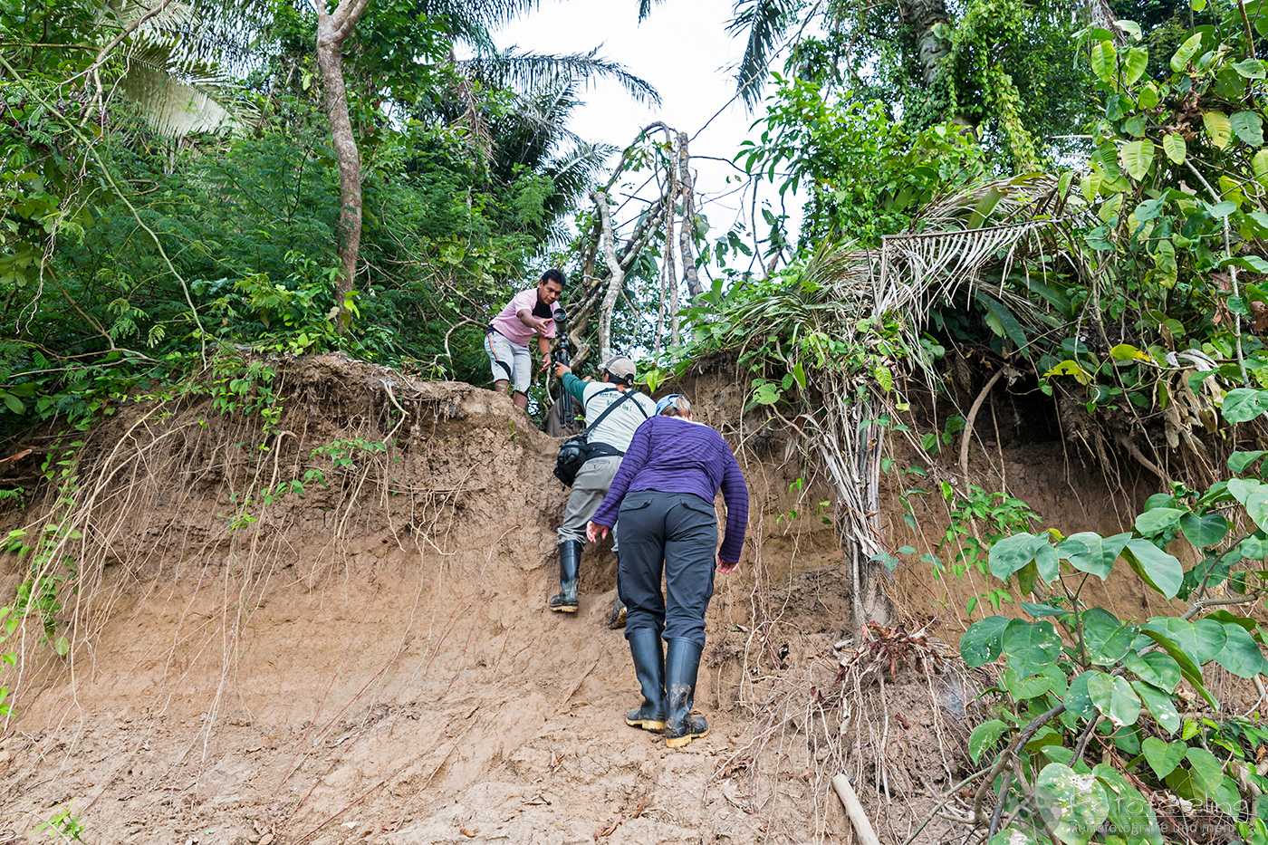 An diesem Morgen wäre eigentlich ein Highlight für uns gewesen, denn es stand der Besuch der Ara-Salzlecke auf dem Plan. Im Programm stand: „Früh morgens fahren wir mit dem Boot zur großen Ara- und Papageien-Salzlecke. Von einer Beobachtungsplattform aus beobachten wir Schwärme von bunten Aras (Ara chloroptera, Ara macao), Sittichen und kleinen Papageienarten, wie sie angeflogen kommen, um den Lehm am steilen Flussufer zu essen. Mit dem Spektiv können wir alle Details sehen. Frühstück auf der Plattform. Danach können wir eine weitere Wanderung durch den Wald um Blanquillo machen, um nach Affen und Vögeln Ausschau zu halten oder in Maquisapayoj wandern.“