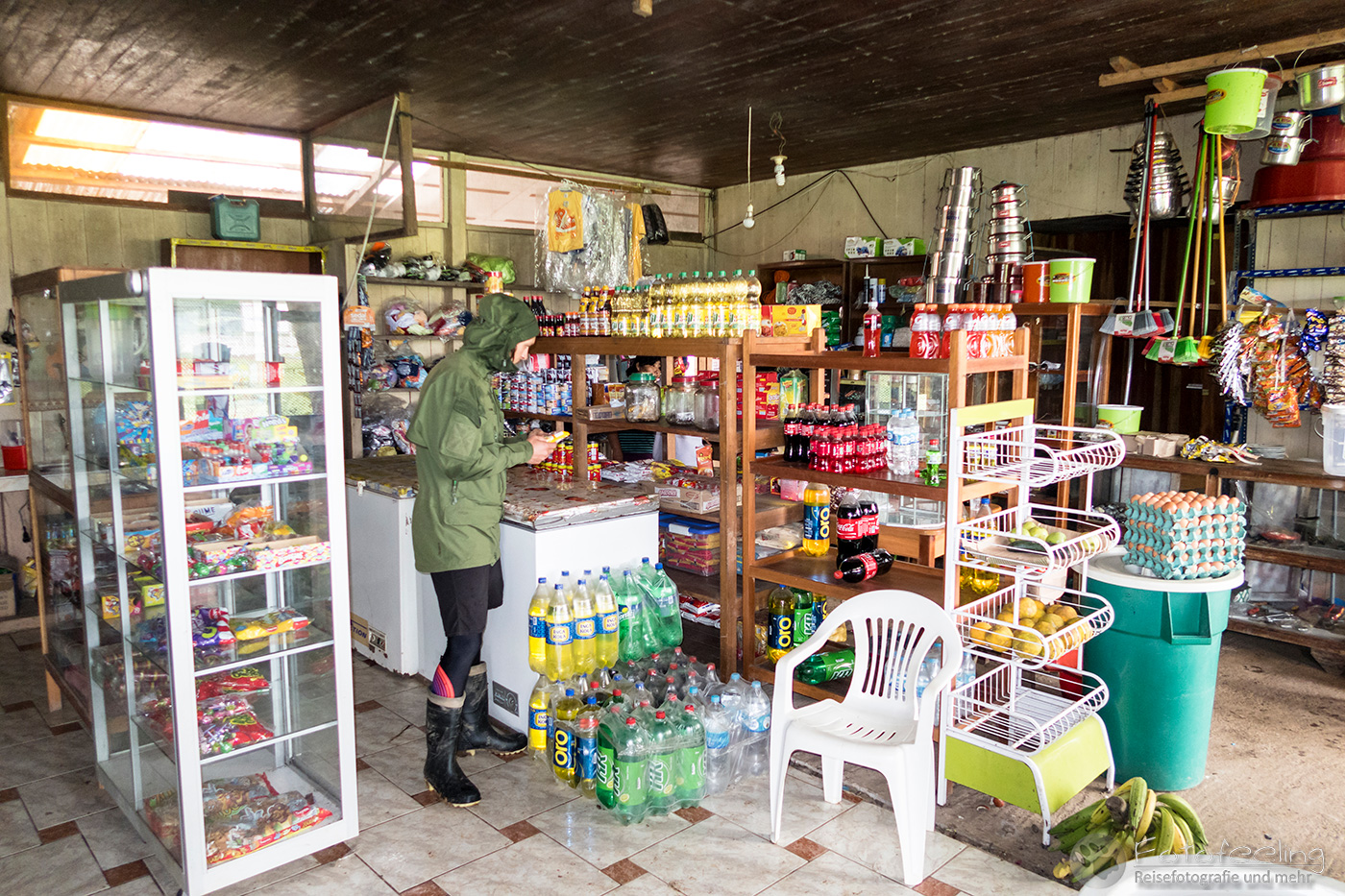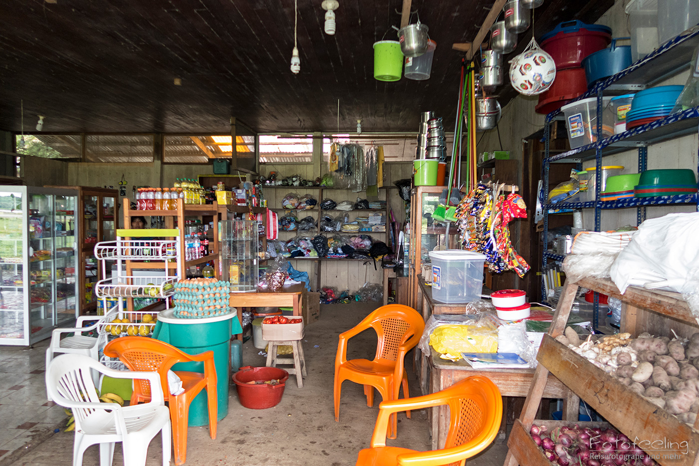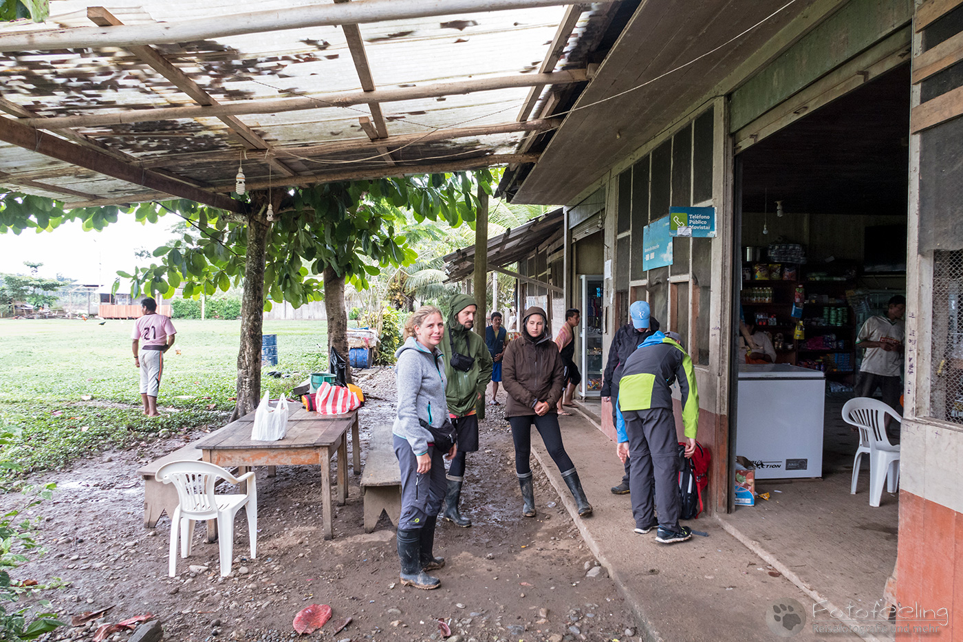 mit schlechtem Wetter geht es los es ist ziemlich nass und kalt kurzer Stopp im Dorf Boca Manu Boca Manu, kleines Dorf im Urwald Supermarkt im Dorf Boca Manu hier gibt es alles möglich, auch kaltes Bier wir warten, bis Manu vom Arzt kommt kleine Hunde verabschieden uns