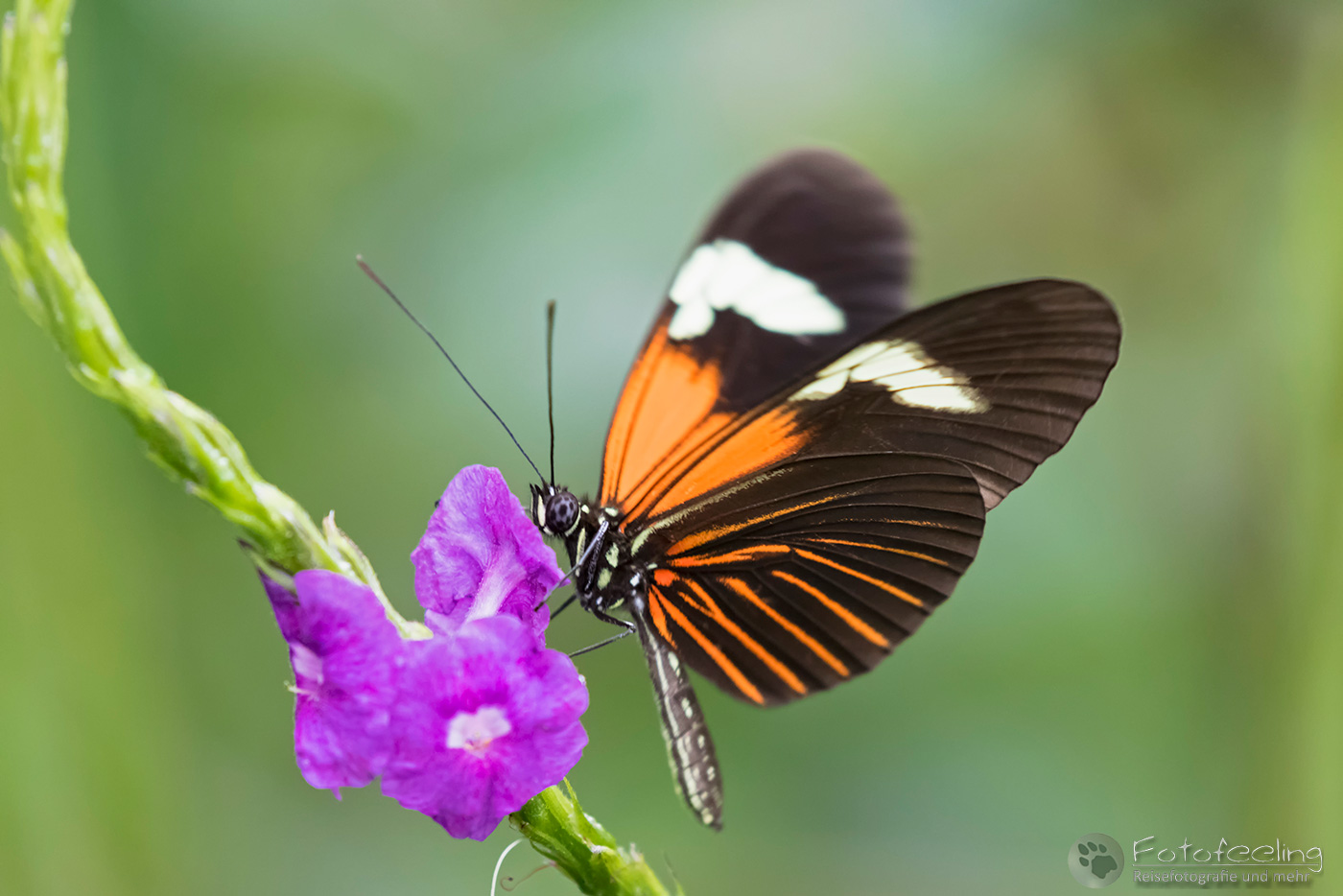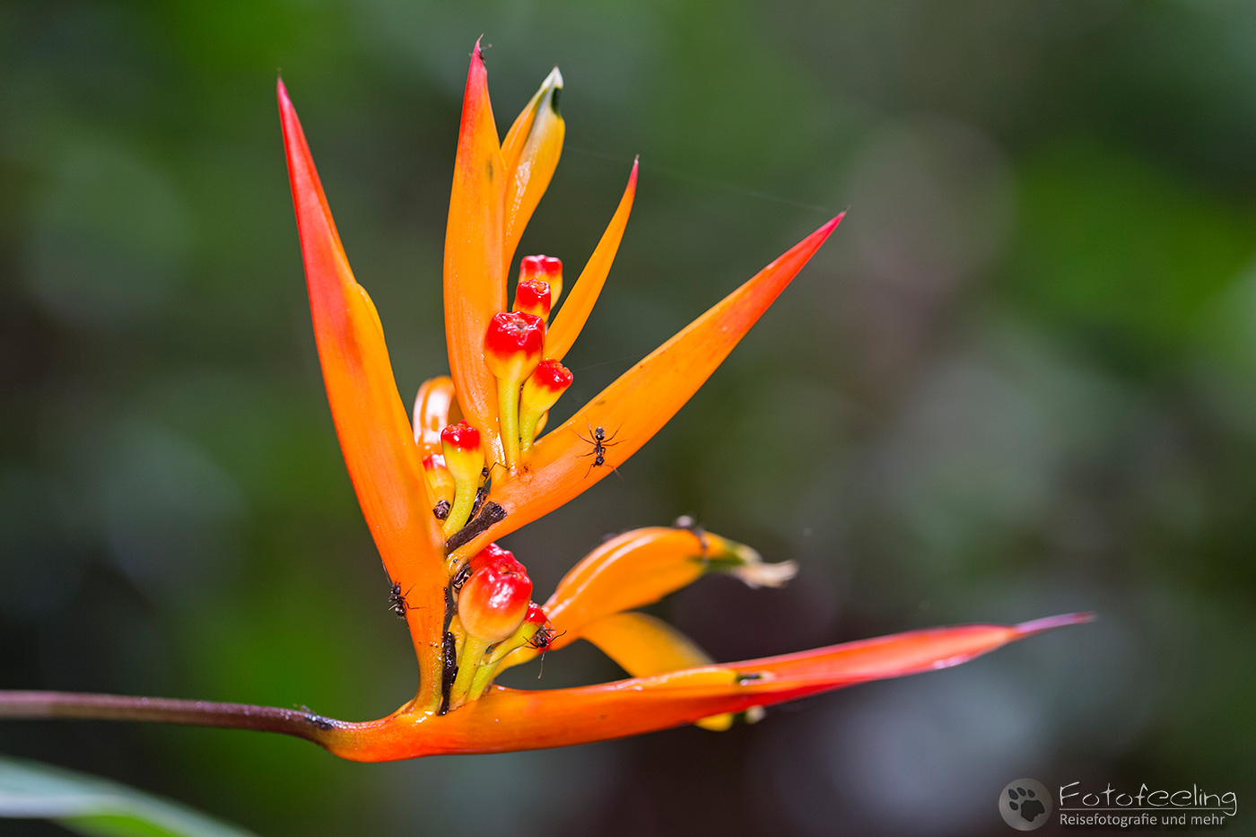 Urwaldwanderung ganz schön nass hier Dichter Urwald Gut, dass wir die Gummistiefel haben Peru Heliconia Blüte eines Brechstrauches (Psychotria) Tropischer Schmetterling, Heliconiinae Butterfly Tropischer Schmetterling, Heliconiinae Butterfly