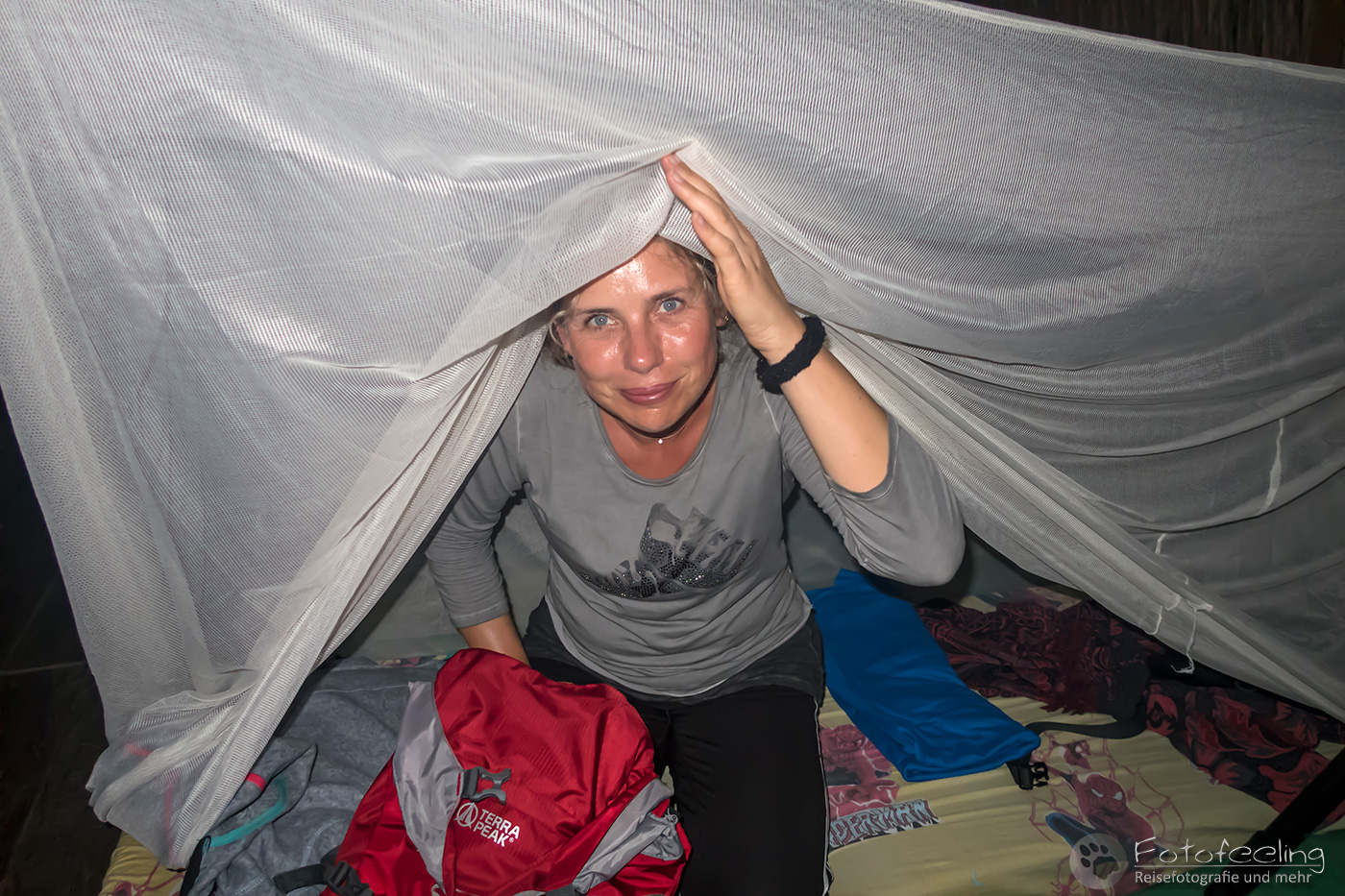 Um 6.00 Uhr gab es Abendessen, das Luis wieder für uns gemacht hatte und das wieder gut schmeckte. Danach ging es gleich ins Bett, denn nach diesem langen anstrengenden Fahrtag auf dem Wasser in dem unbequemen Boot waren wir so richtig müde.