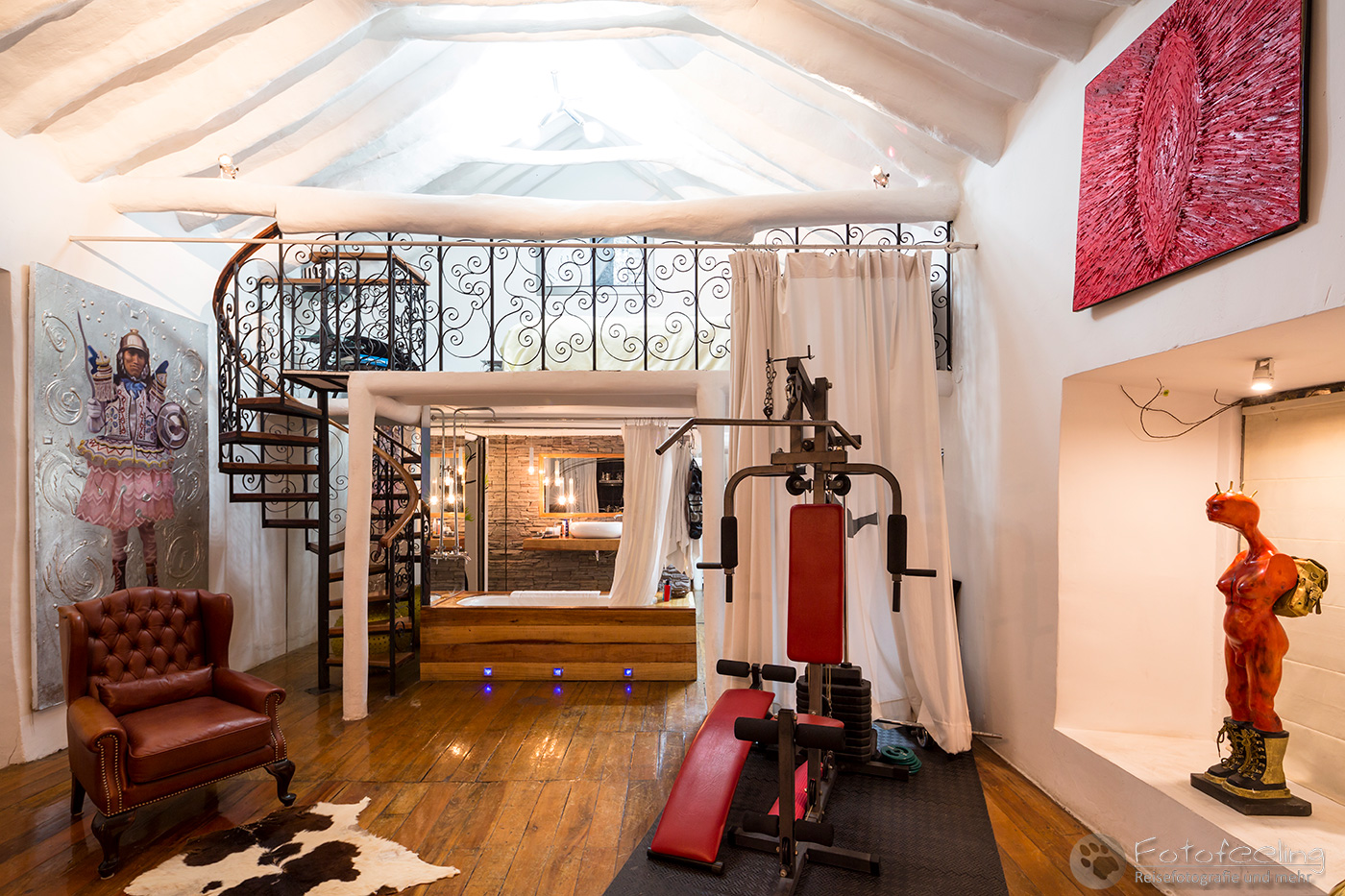Frühstück gibt es im Zimmer, Fallen Angel - The Small Luxury Guest House, Cusco Schlafzimmer im Fallen Angel - The Small Luxury Guest House, Cusco eines unserer schönsten Zimmer, Fallen Angel - The Small Luxury Guest House, Cusco selbst ein Fitnessgerät steht bereit, aber dafür war keine Zeit Innenhof des Fallen Angel - The Small Luxury Guest House, Cusco Tolle Bilder an der Wand Engel heißt das Motto im Fallen Angel - The Small Luxury Guest House, Cusco ziemlich schräge Bilder
