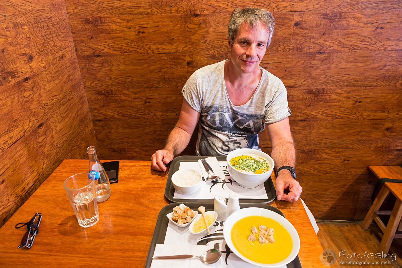 Mittags gingen wir zu Mr. Soup und bestellten uns eine Andenkartoffelsuppe und eine Tom Kha Gai Suppe, die ganz hervorragend schmeckte.