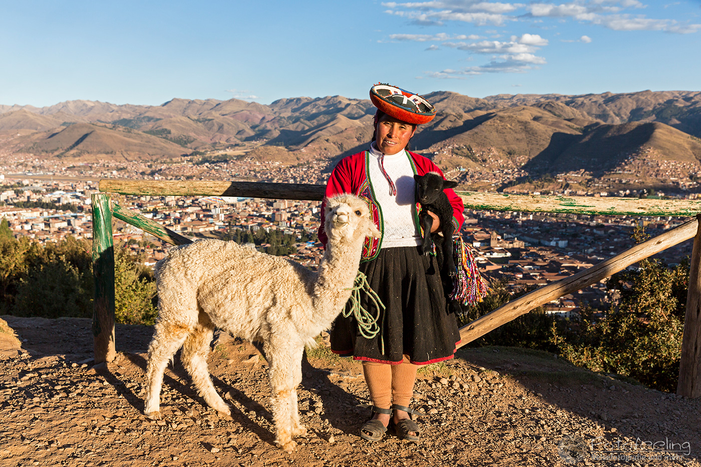 Heute gibt es Suppe bei Mr. Soup, Cusco Brunnen mit Inka König und Jesuiten Kirche an der Plaza de Armas, Cusco Jesuiten Kirche, Plaza de Armas, Cusco Straßenhund in Cusco Tolle Aussicht auf Cusco Peruanische Frau mit traditioneller Tracht und Alpaka Blaue Stunde über Cusco, Peru Blaue Stunde über Cusco, Peru