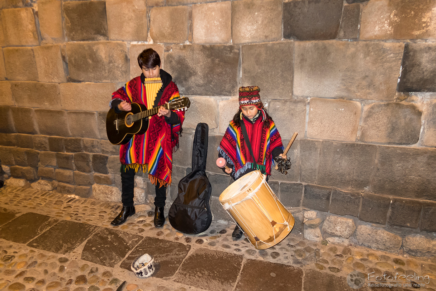 Abendessen ging es ins Uchu Peruvian Steakhouse wo wir schon am Nachmittag einen Tisch reserviert hatten. Die Steaks schmeckten hervorragend, dazu gab es fetzige Soßen zum Dippen und super gute Kartoffelspalten. Zum Abschluss des Abends gingen wir noch durch die Stadt, wo immer noch unzählige Leute unterwegs waren. Dabei begegneten wir zwei Kindern, die mit Trommel, Gitarre und Panflöte wunderschön in der tollen Gasse Hatunrumiyoc mit den „Twelve Angled Stone“ musizierten. Die Musik gefiel nicht nur uns und so bildete sich schnell eine Menschentraube um die Kinder herum und lauschten ihnen.