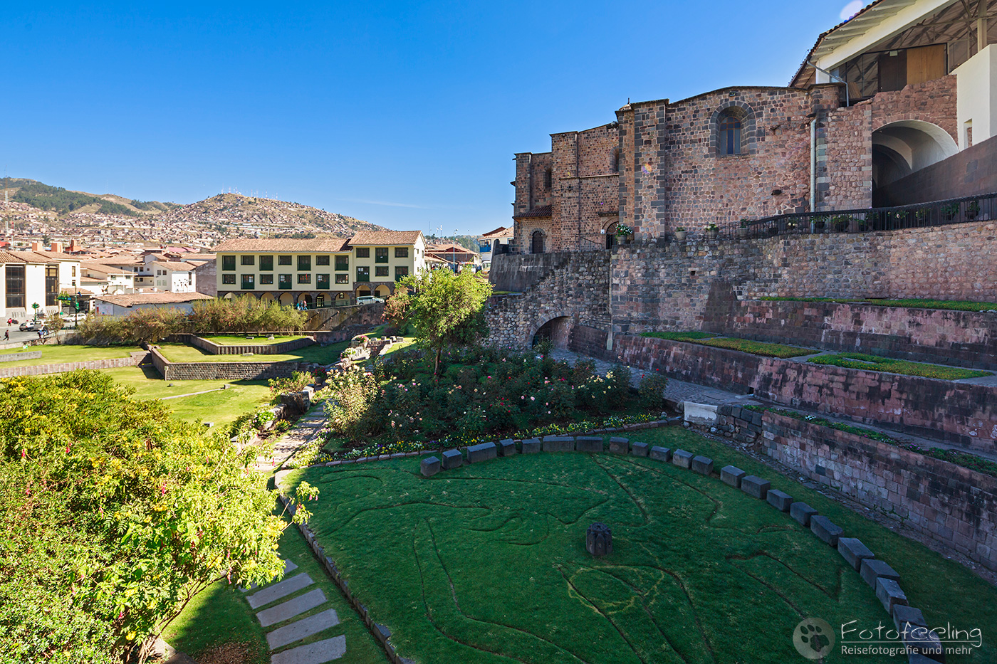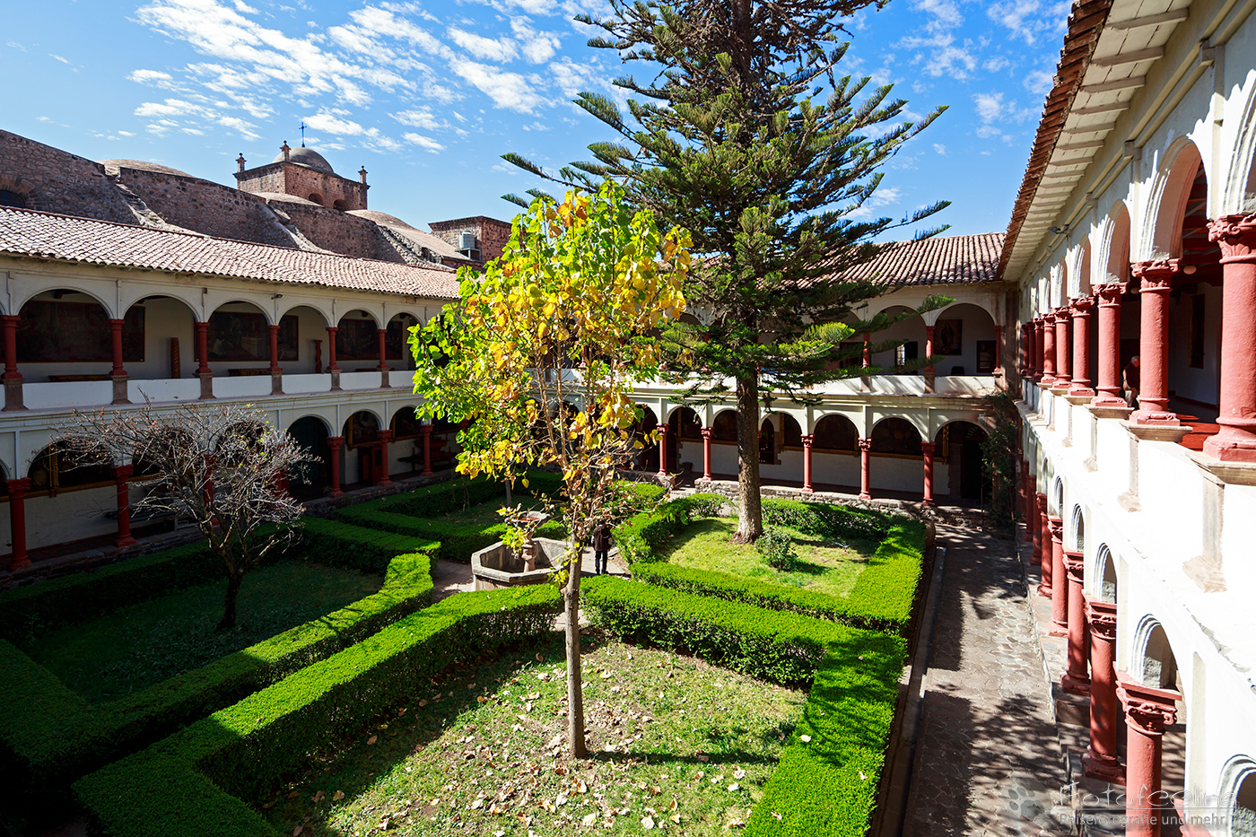 Museum-Tempel Korikancha, dem Sonnentempel der Inka, Cusco Museum-Tempel Korikancha, dem Sonnentempel der Inka, Cusco Museum-Tempel Korikancha, dem Sonnentempel der Inka, Cusco Innenhof des Museum-Tempels Korikancha, dem Sonnentempel der Inka, Cusco