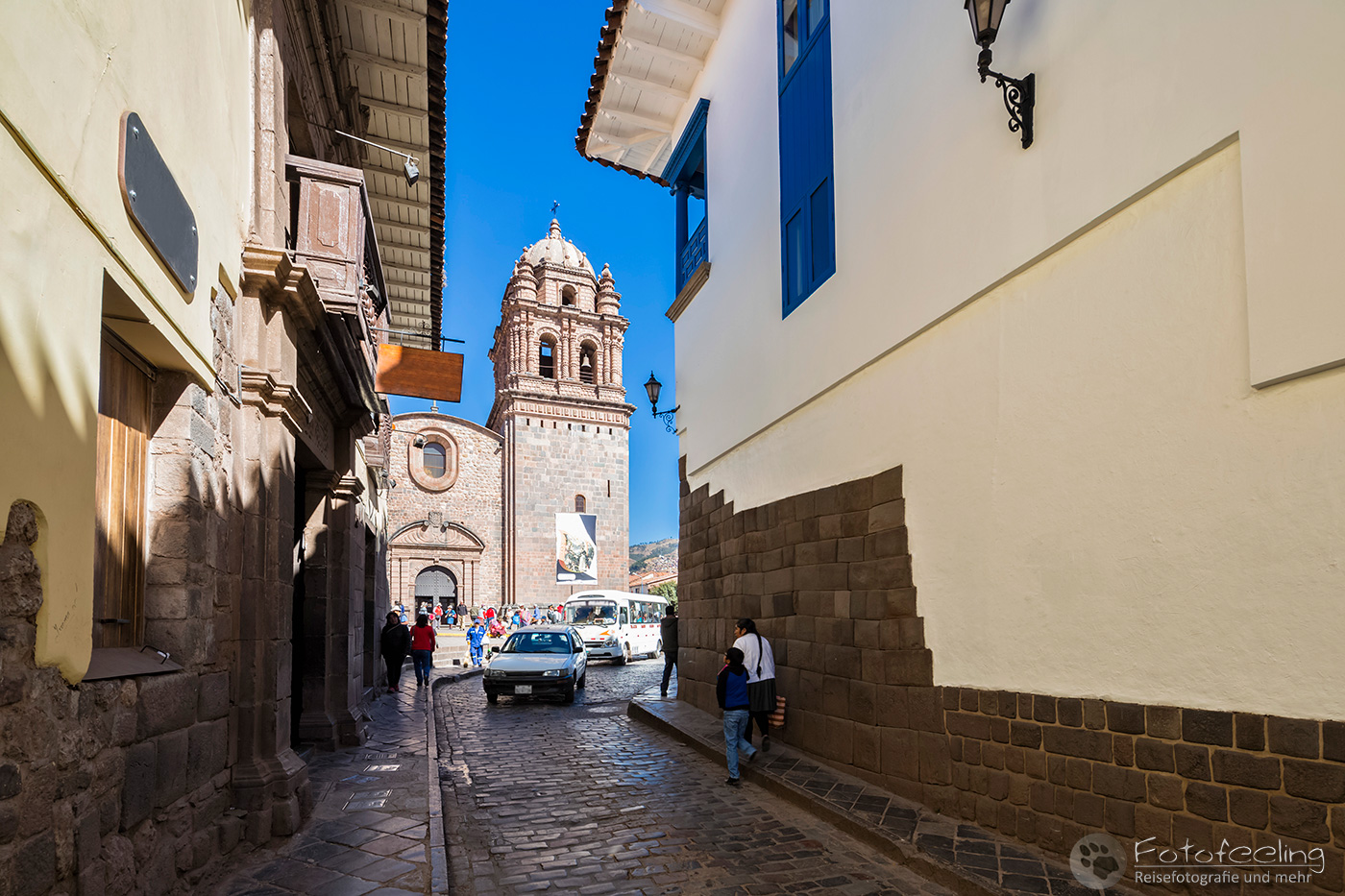 Unterwegs in Cusco San Cristobal Kirche, Cusco Glockenturm der San Cristobal Kirche, Cusco Ausblick von der San Cristobal Kirche, Cusco tolle enge Gassen in Cusco Kleine Hunde vor der Haustür, Cusco Plaza de Armas, Cusco Plaza de Armas mit der Kathedrale von Cusco