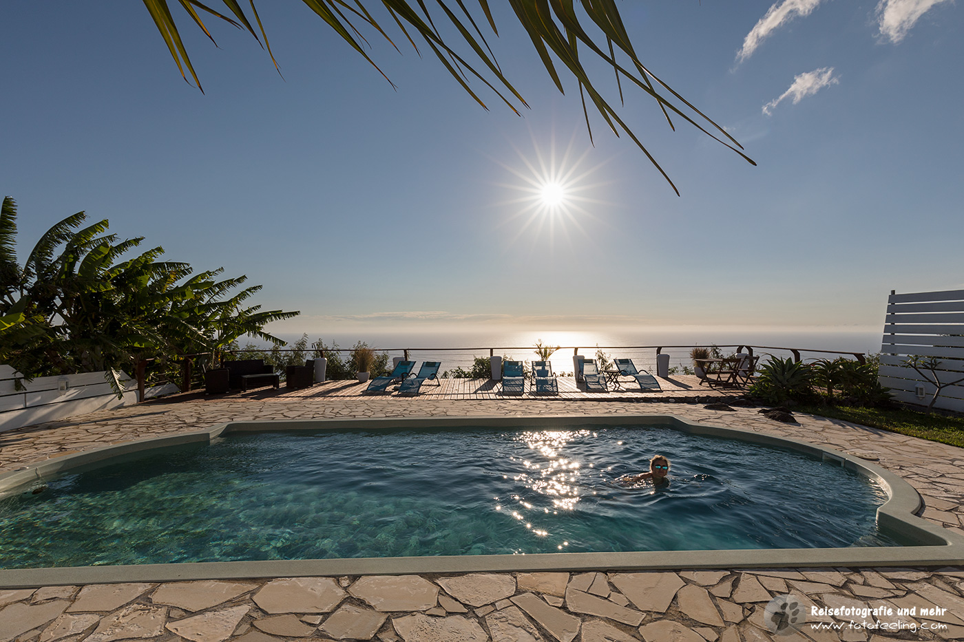 So faulenzten wir und genossen den Nachmittag am Pool, den schönen Sonnenuntergang am Hausstrand und den Abend auf der Terrasse.