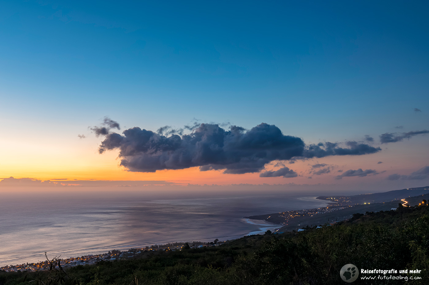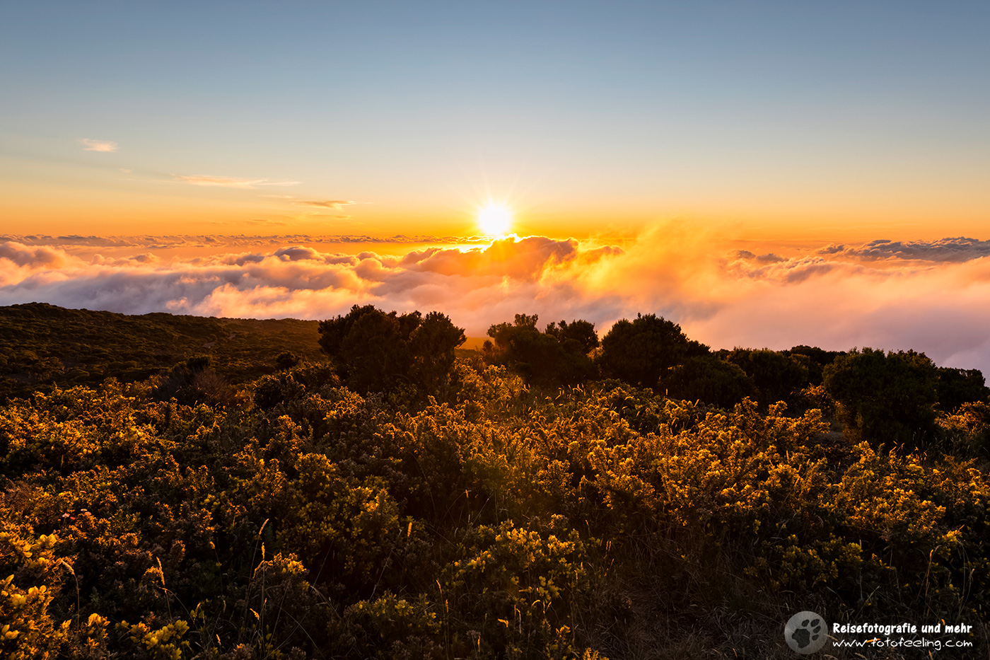 Wieder warf uns unser Wecker um 3.30 Uhr raus, denn wir wollten noch einmal den Sonnenaufgang am Vulkan erleben. So machten wir uns mit Kaffee bewaffnet auf den Weg. Doch die Erkältung hatte mich fest im Griff und so verschlief ich die Autobahnfahrt bis La Tampon. Als dann die Kurven begannen, war ich wach und trank meinen heißen Kaffee.