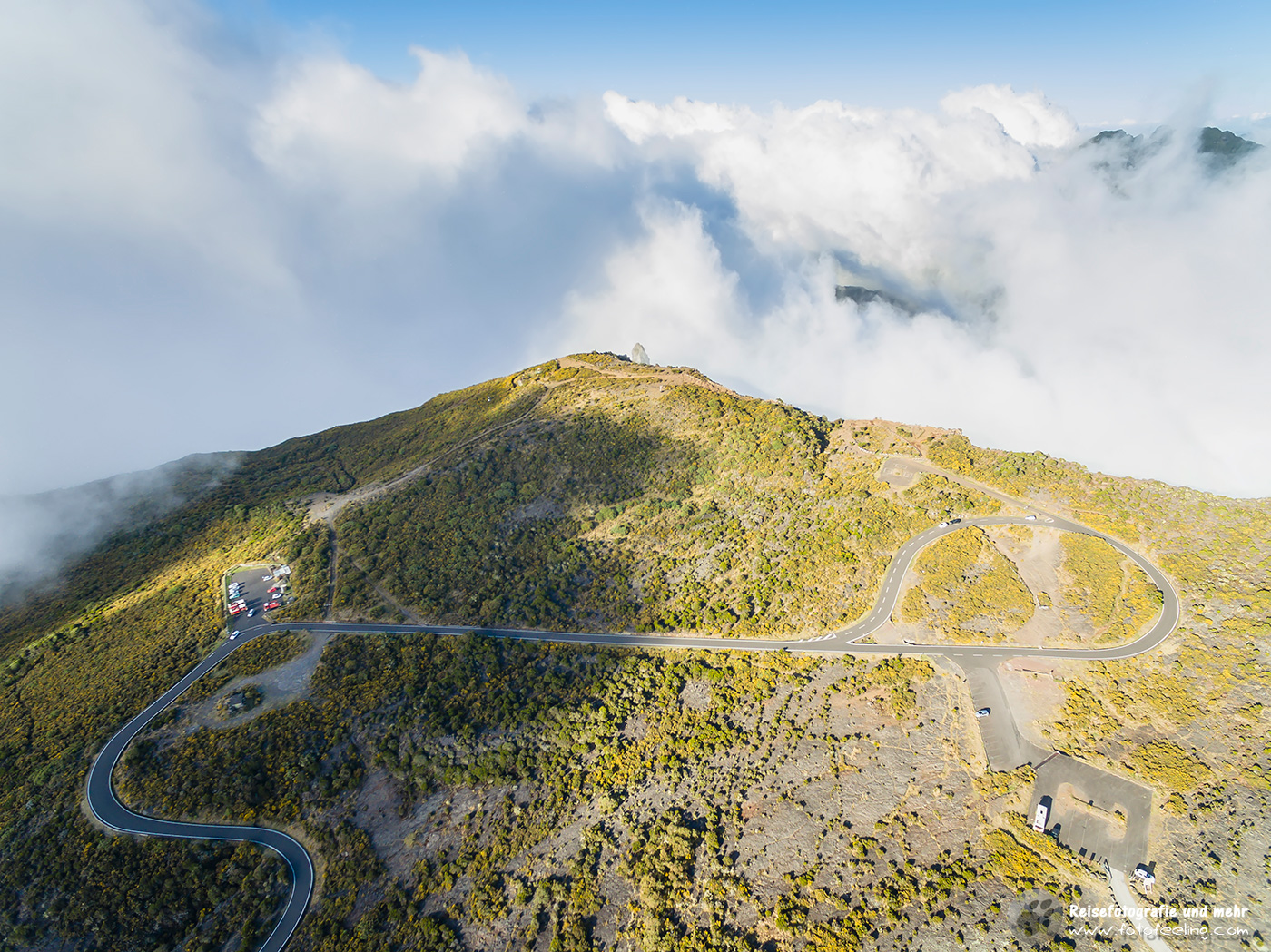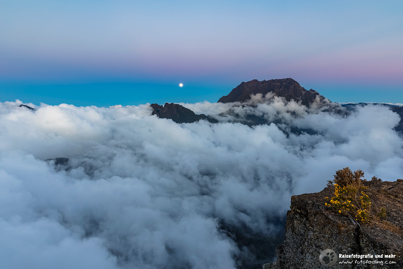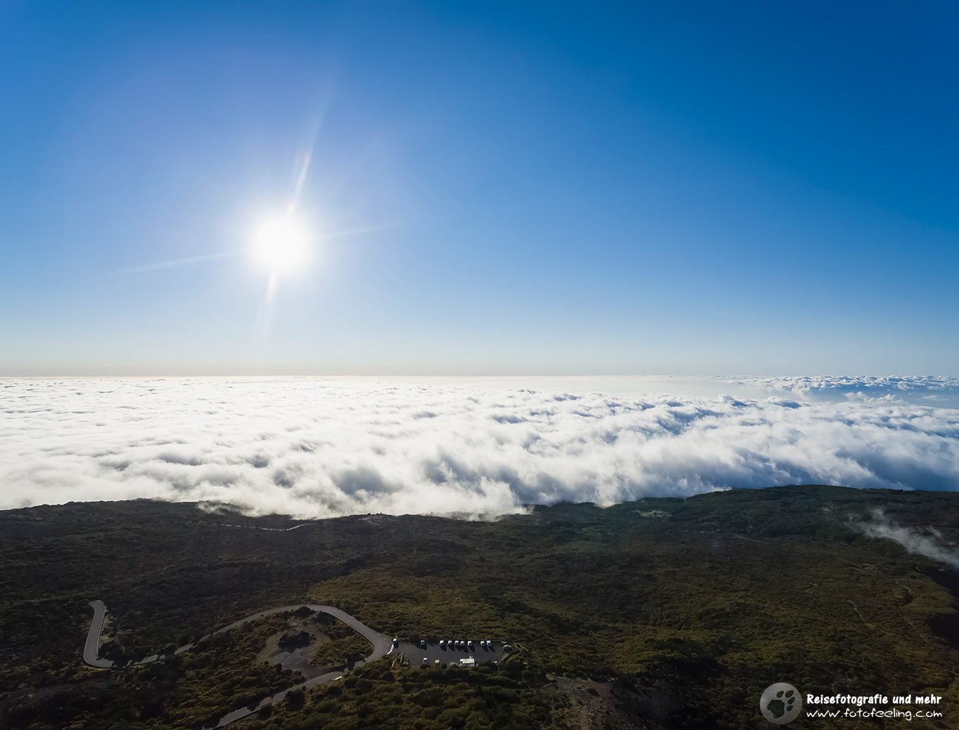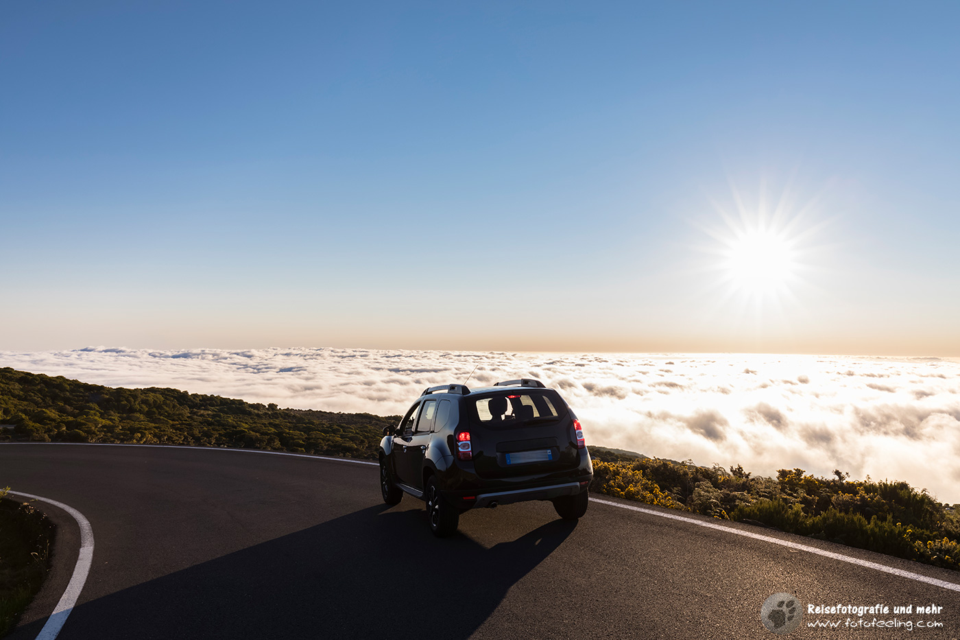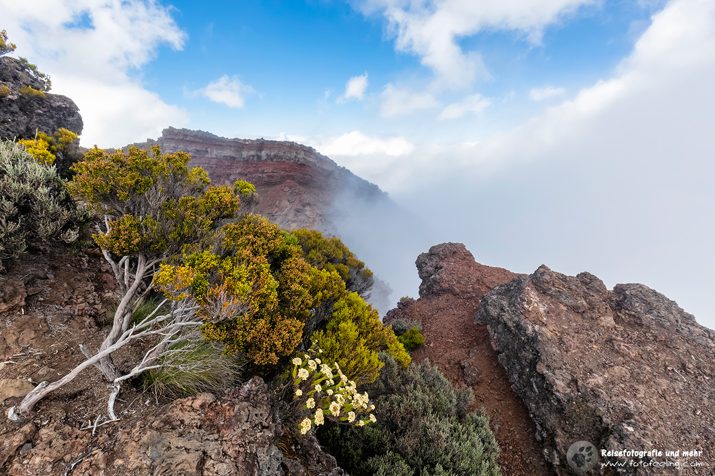 Als wir über die Ebene zum Paso de Sables fuhren, sahen wir dahinter eine Wand aus Wolken. Auch rings um uns herum war alles dicht. Nur hier oben über 2000 m Höhe schien noch die Sonne. Das sah echt cool aus. Den ganzen Weg hinab bis nach La Tampon fuhren wir in dichten Wolken. Erst am Meer wurde es wieder besser.