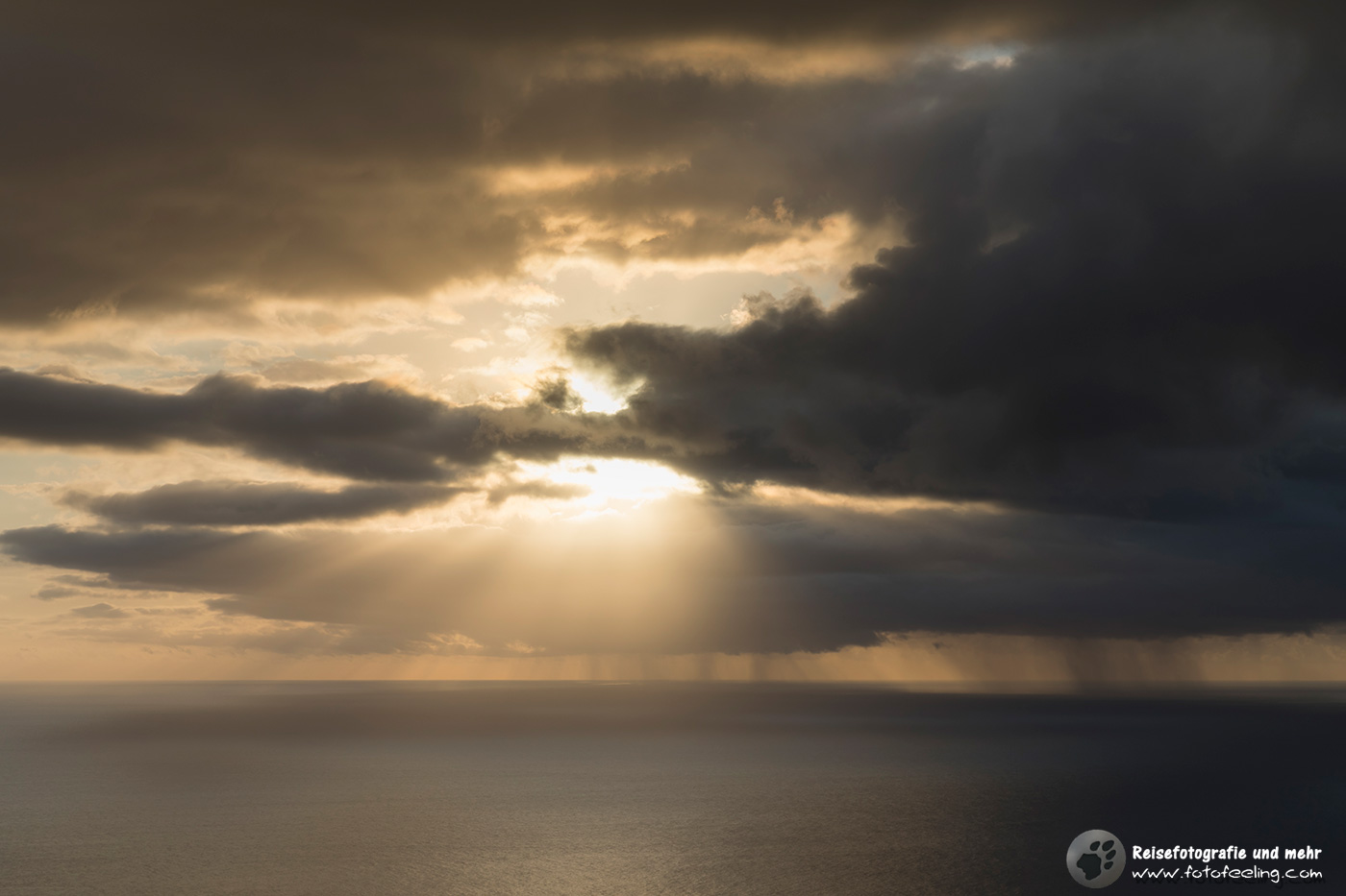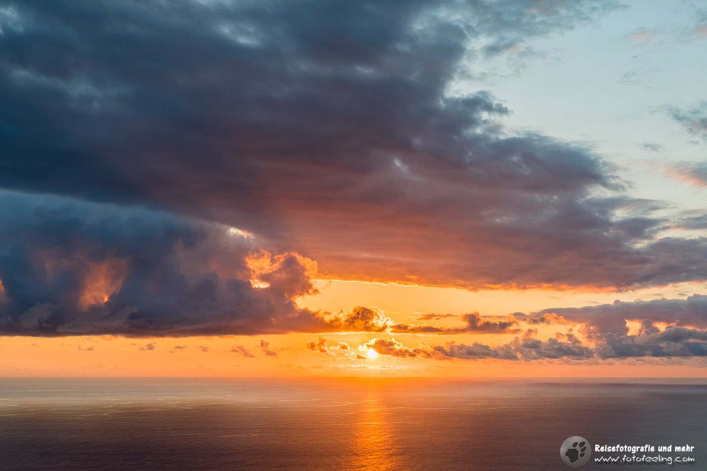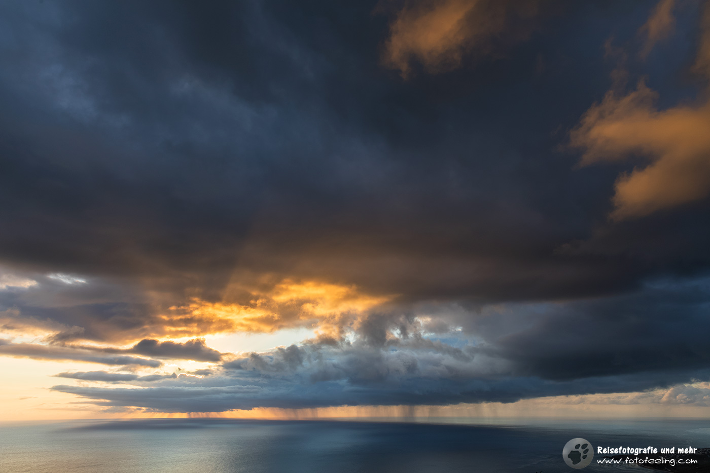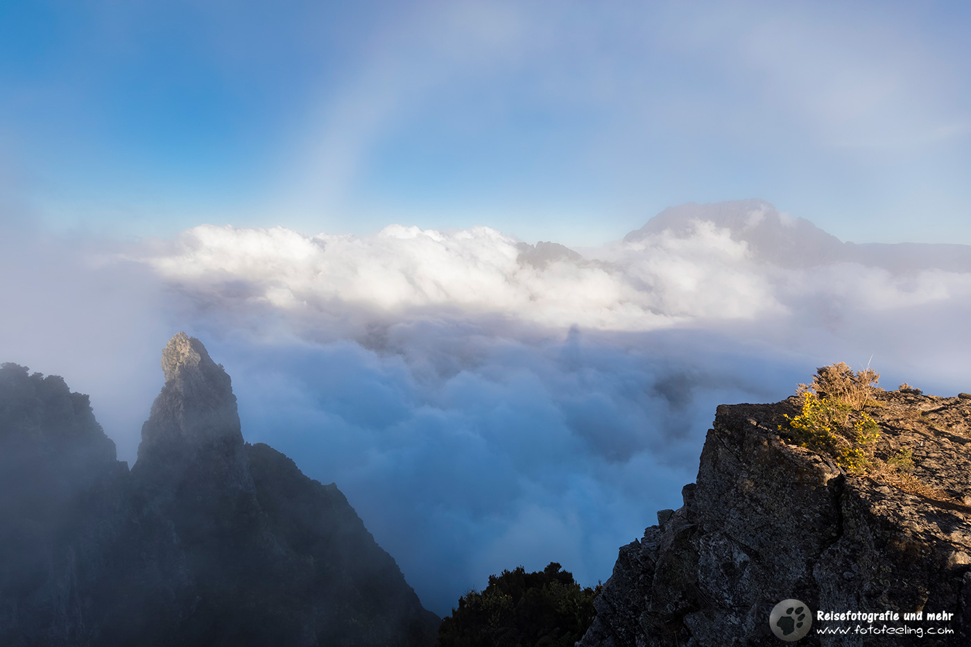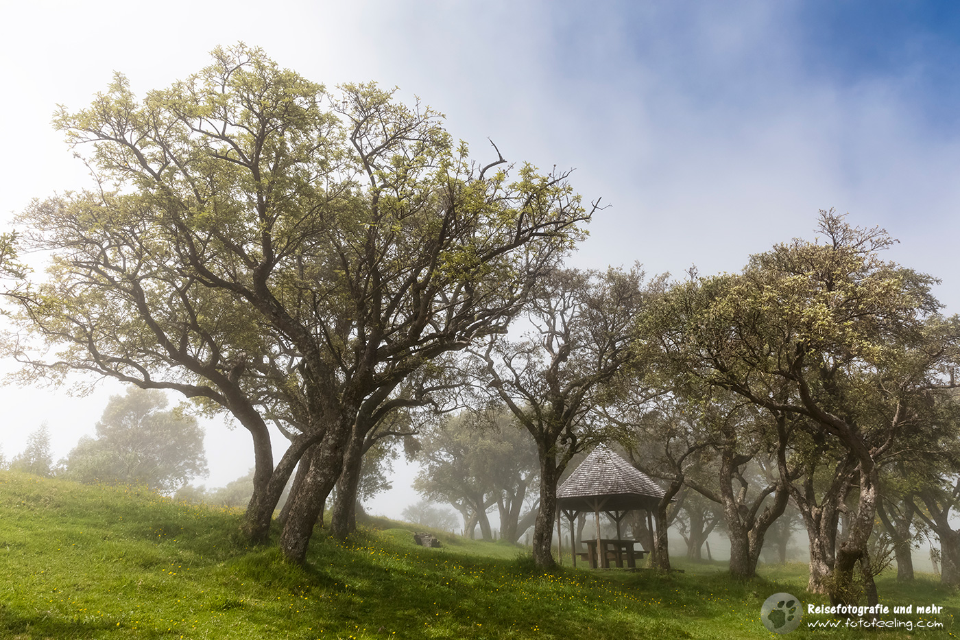 Als wir über die Ebene zum Paso de Sables fuhren, sahen wir dahinter eine Wand aus Wolken. Auch rings um uns herum war alles dicht. Nur hier oben über 2000 m Höhe schien noch die Sonne. Das sah echt cool aus. Den ganzen Weg hinab bis nach La Tampon fuhren wir in dichten Wolken. Erst am Meer wurde es wieder besser.