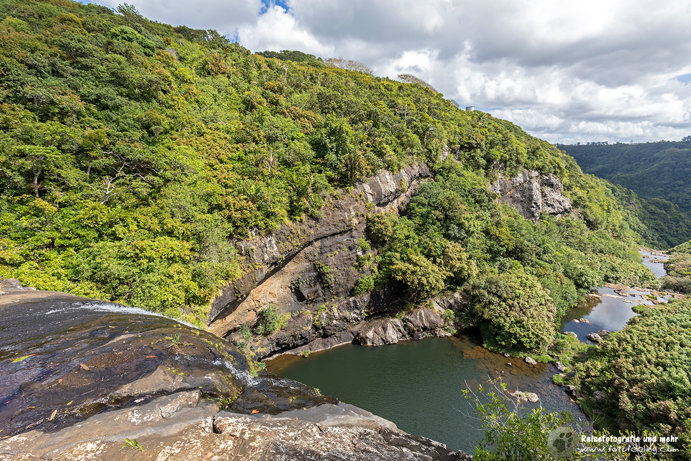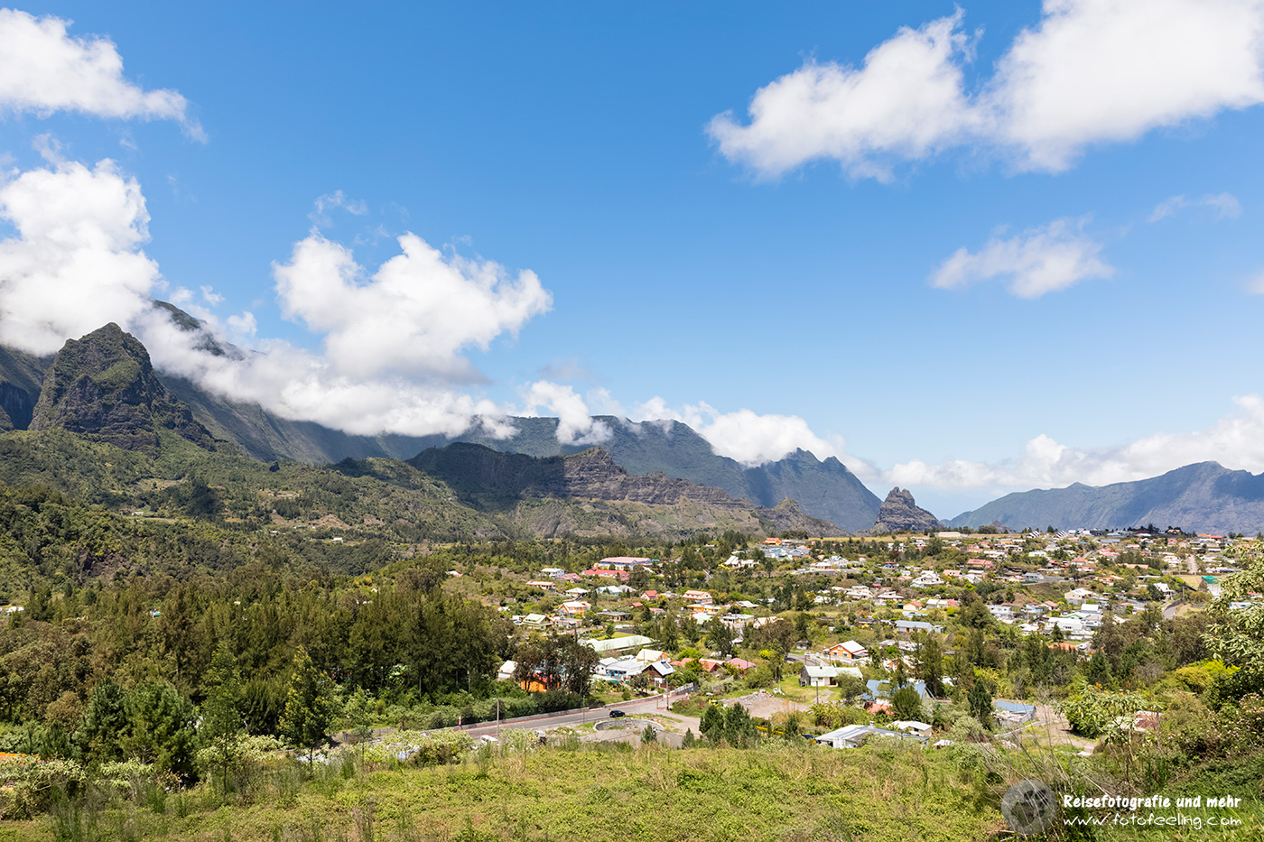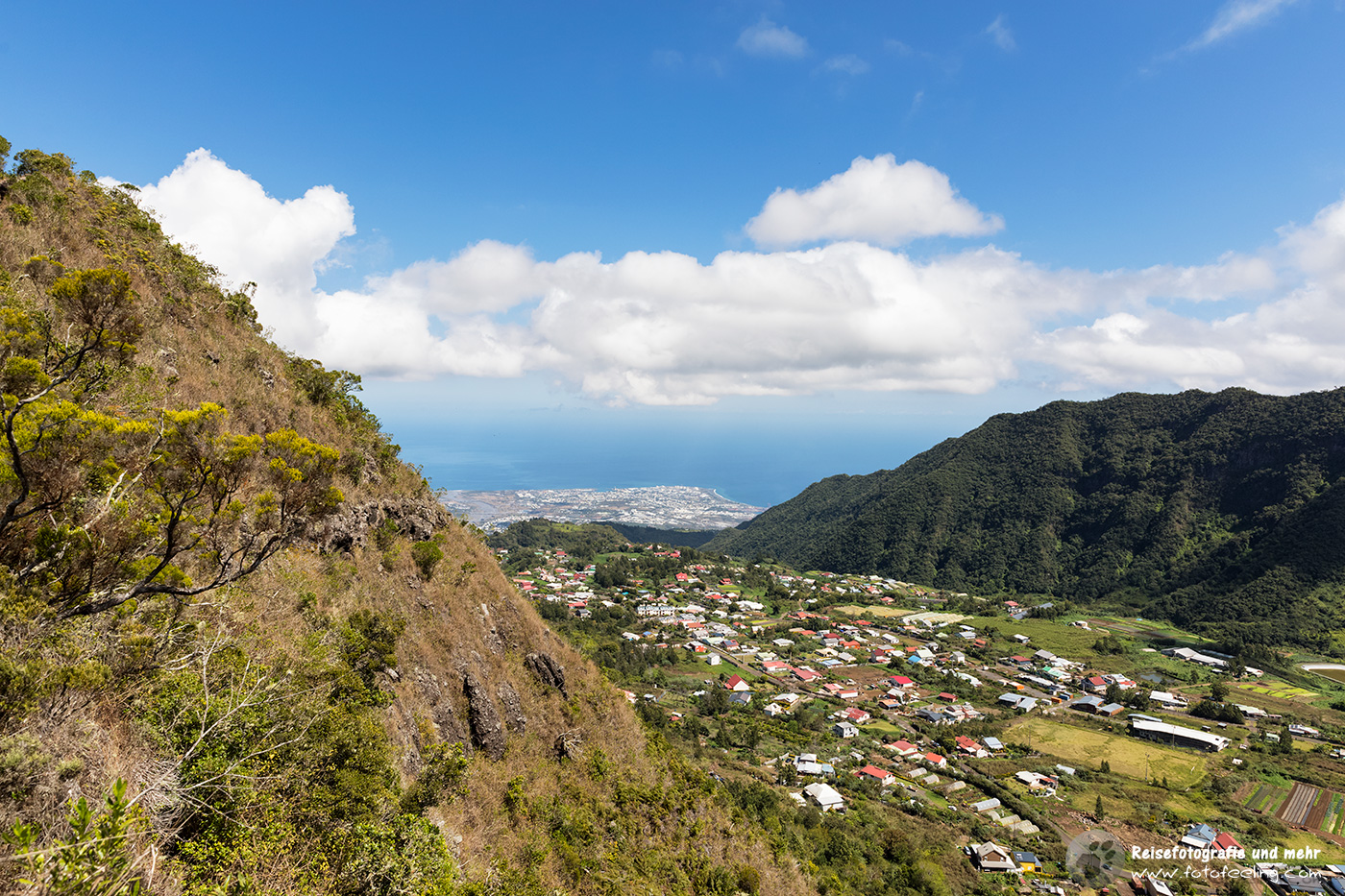 Wir fuhren zur D242, auf der wir gerade noch ein Stück gewandert waren und schauten uns die traumhaften Ausblicke entlang der Straße an. Von hier aus hatten wir immer wieder eine tolle Sicht auf Cilaos, das auf einem Bergplateau liegt und von Bergen umgeben ist. Alles war so grün und Wasserfälle flossen die Hänge hinab.