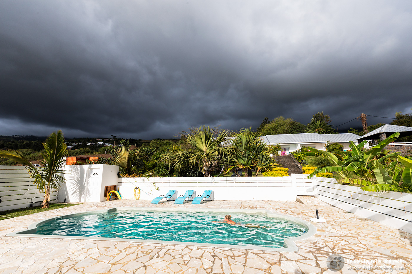 Am Nachmittag klarte es etwas auf und wir badeten im Pool und lasen weiter – ein richtig fauler Tag, aber so was braucht man ab und zu im Urlaub.